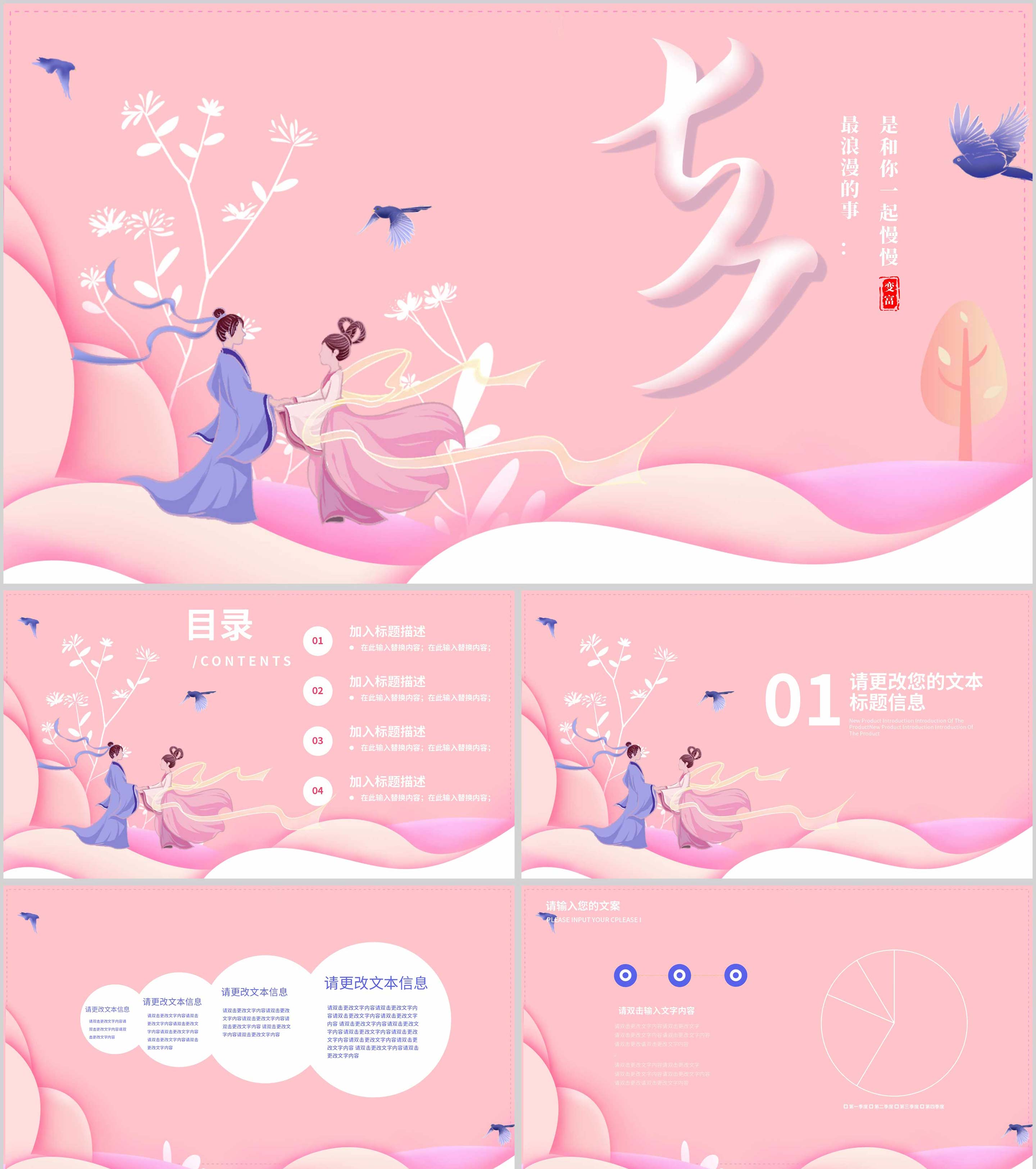 粉色插画风浪漫七夕电商营销活动方案PPT模板
