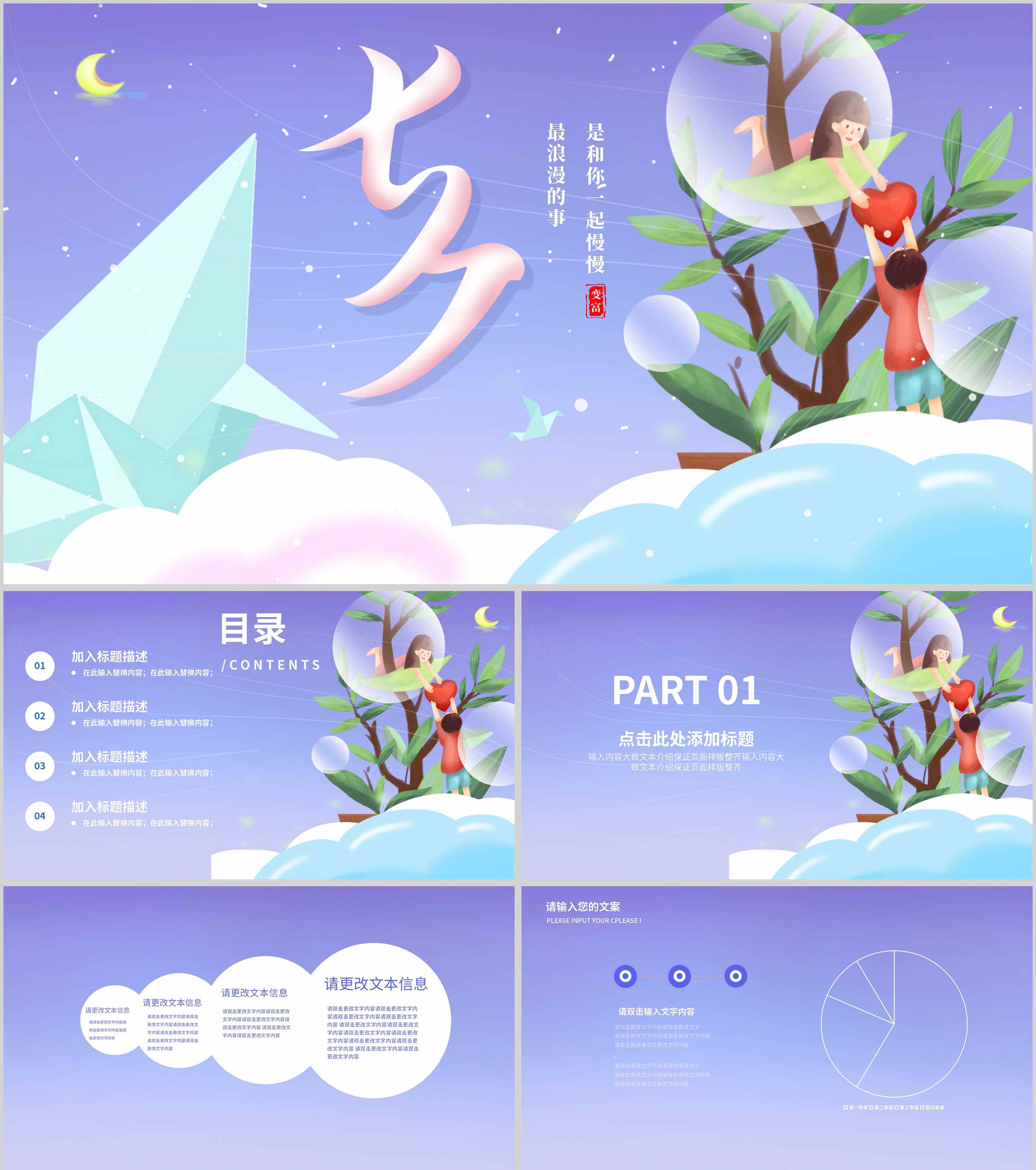 紫色插画风浪漫七夕营销策划活动PPT模板