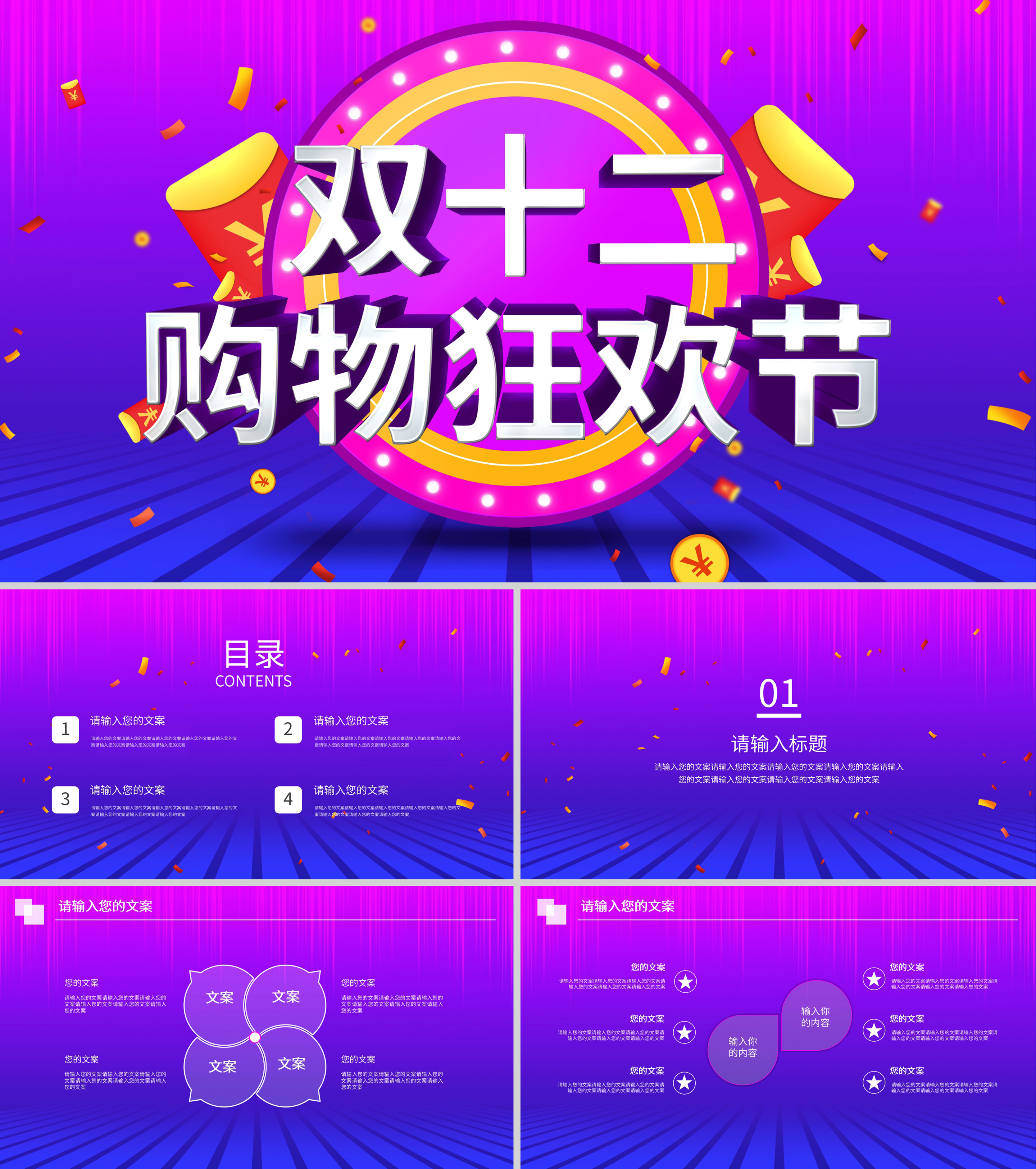 紫色扁平风电商购物活动营销策划方案PPT模板