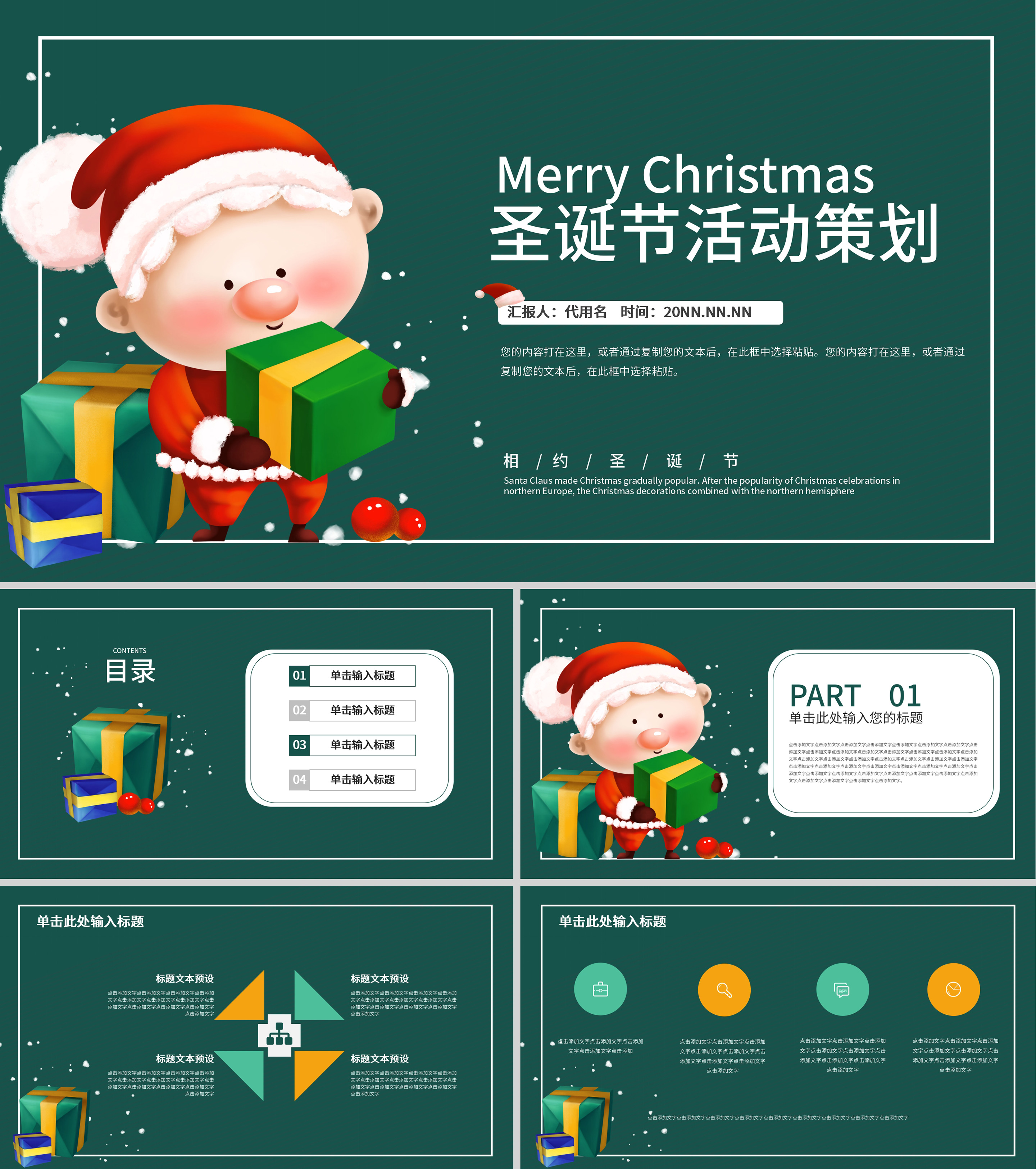 绿色卡通风圣诞节节日活动策划方案PPT模板