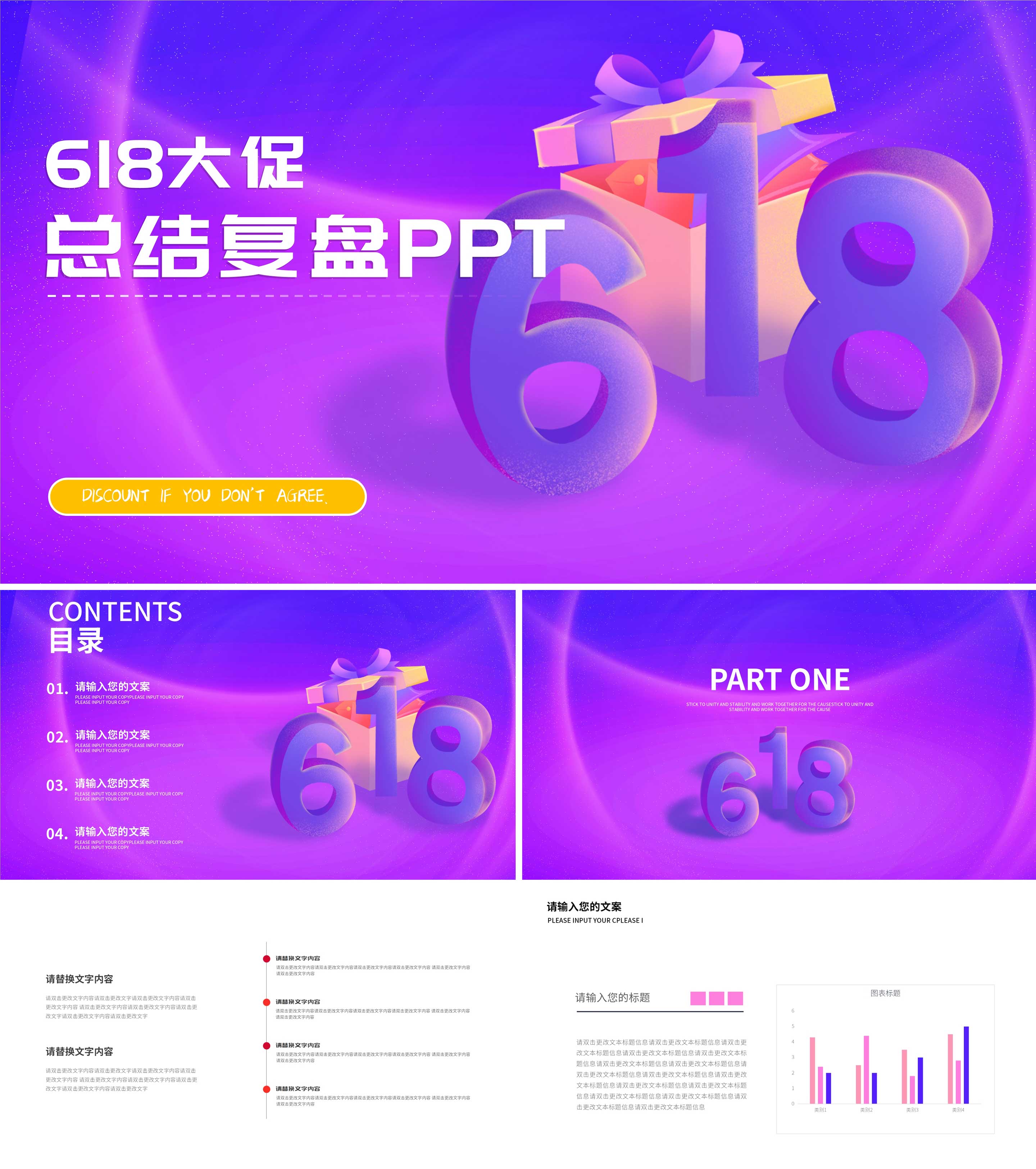 小清新渐变风炫彩618营销策划PPT模板