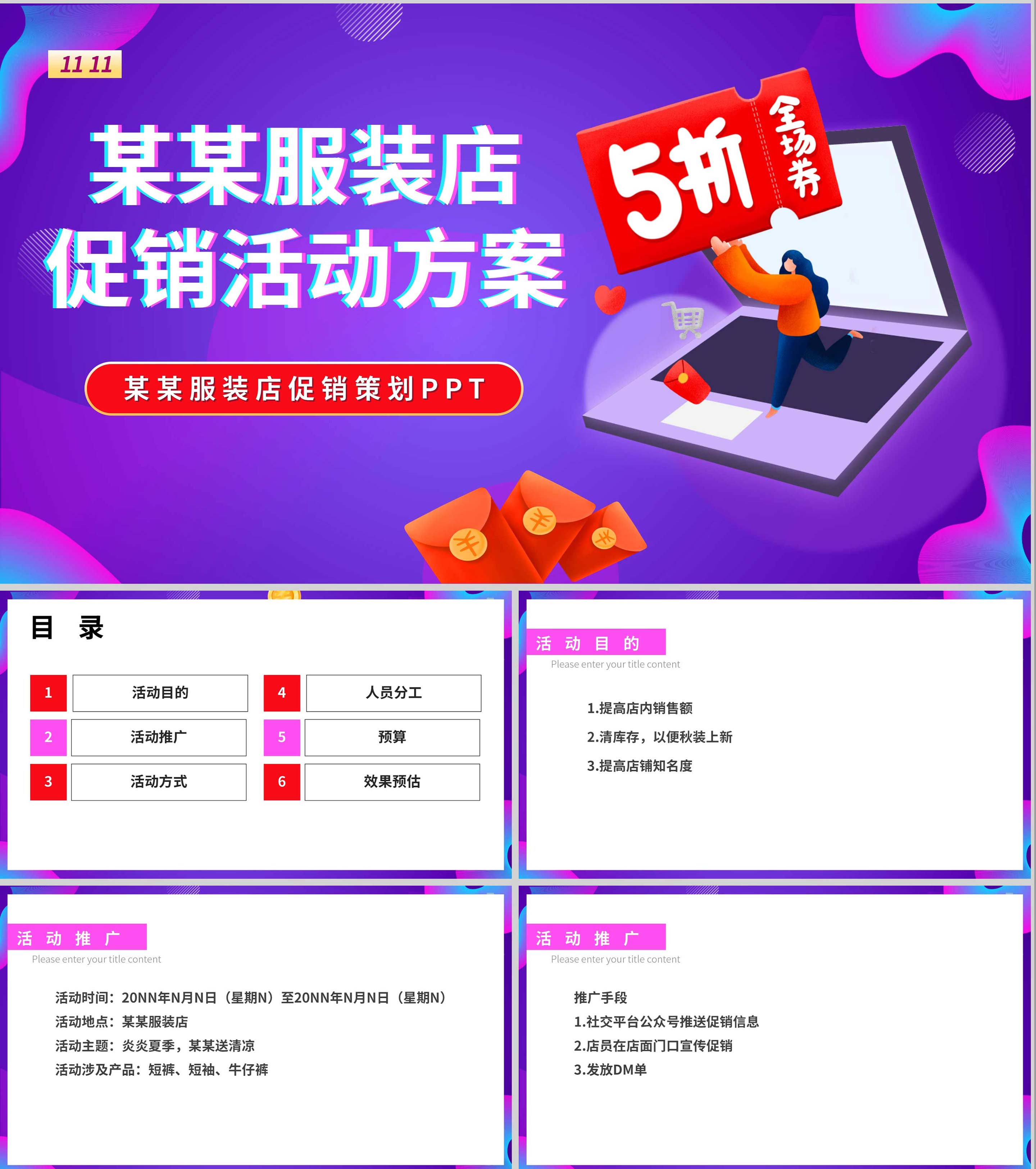 紫色扁平风服装店营销促销活动销售策划方案PPT模板