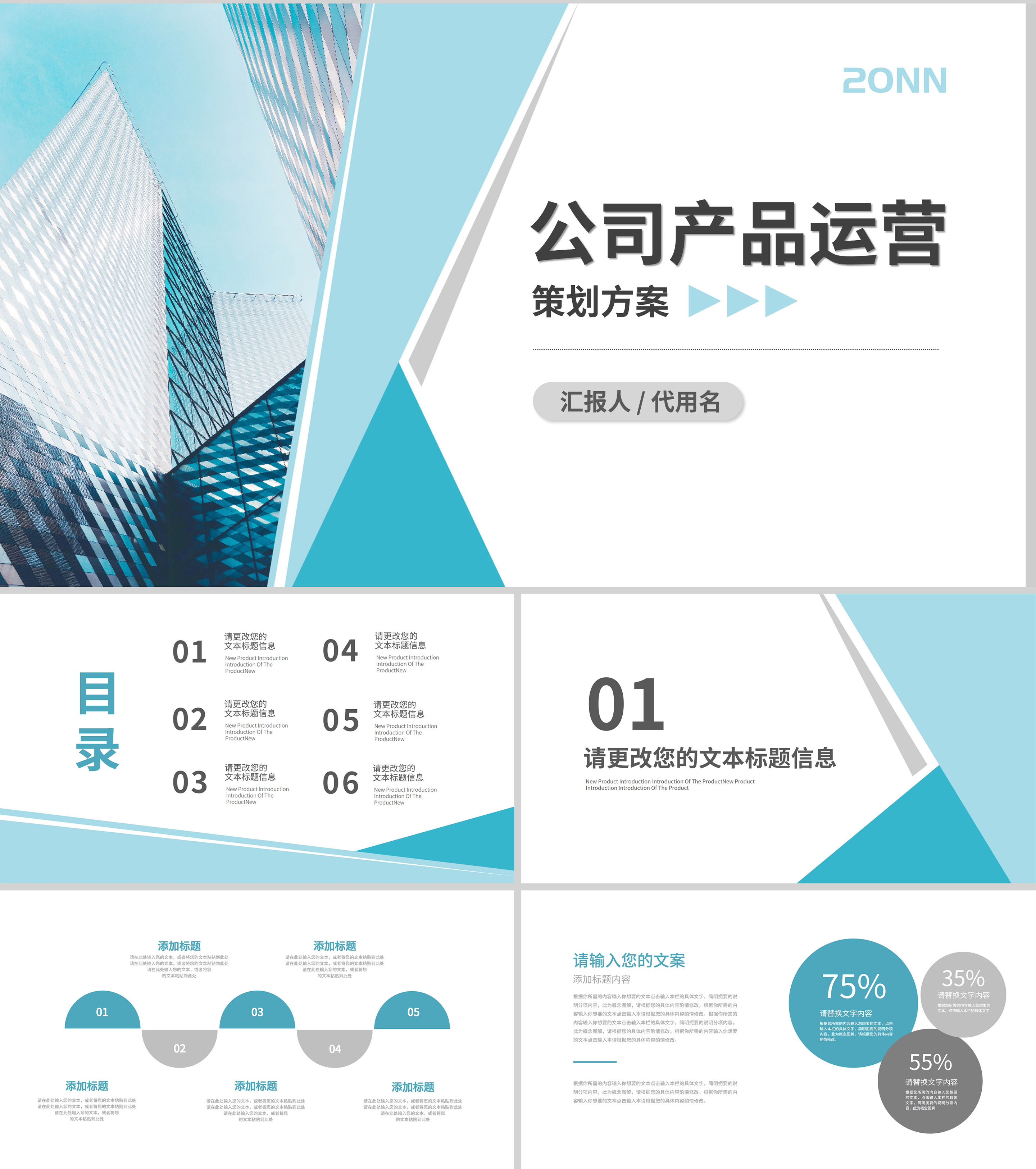 蓝色几何风公司产品营销策划方案PT模板