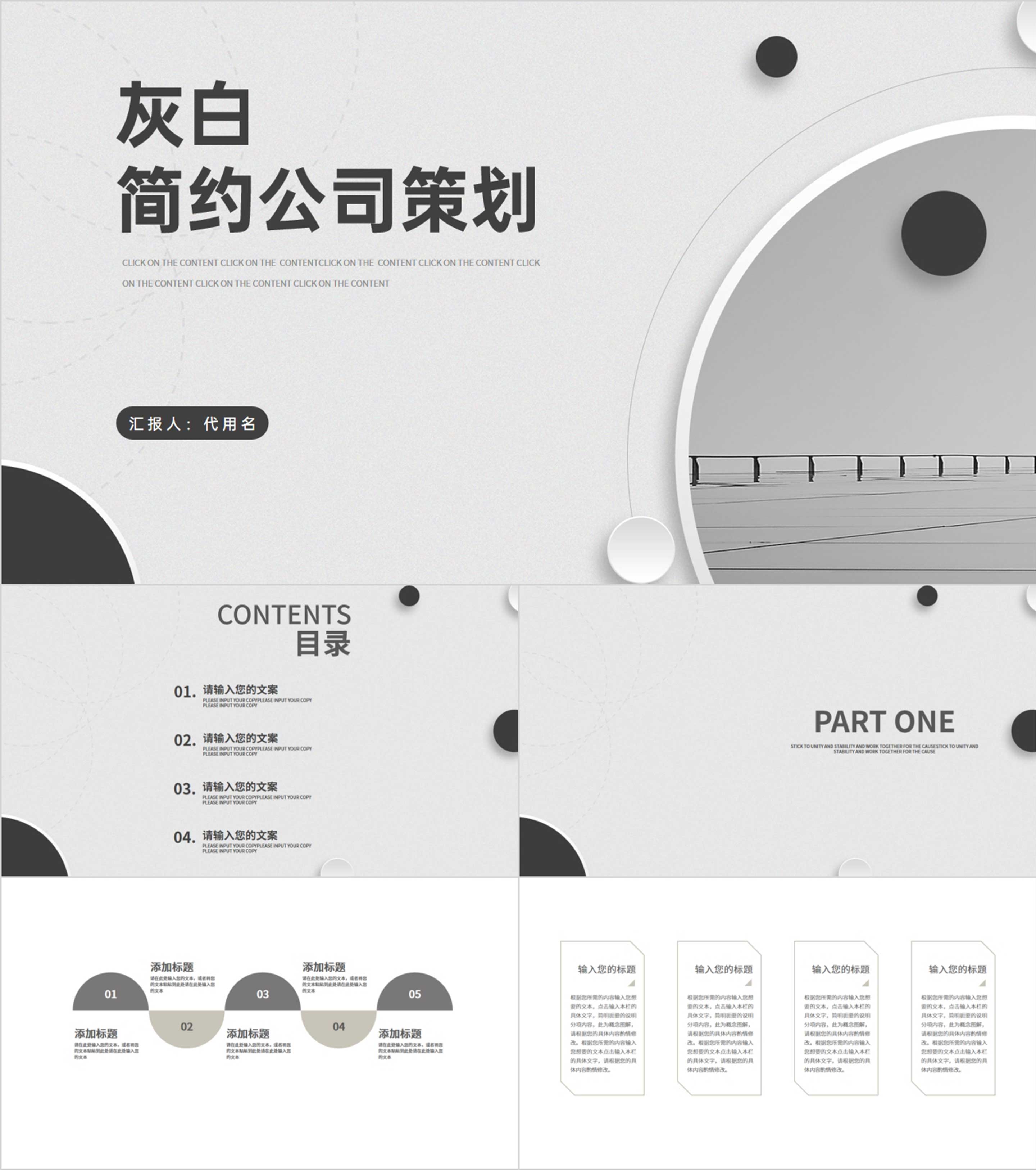 灰色扁平风简约公司营销策划方案PPT模板