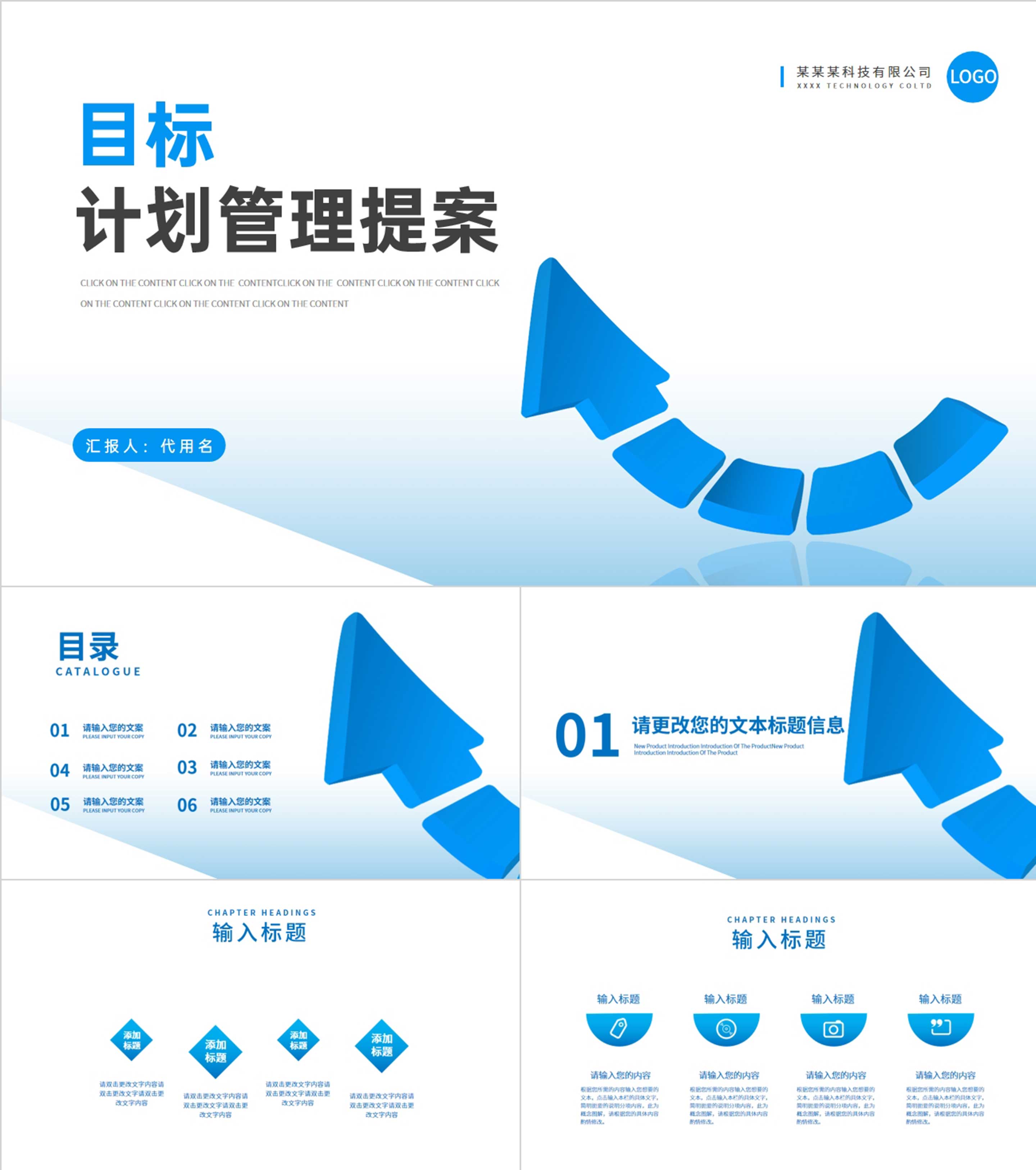 蓝色扁平风销售目标计划管理方案策划PPT模板