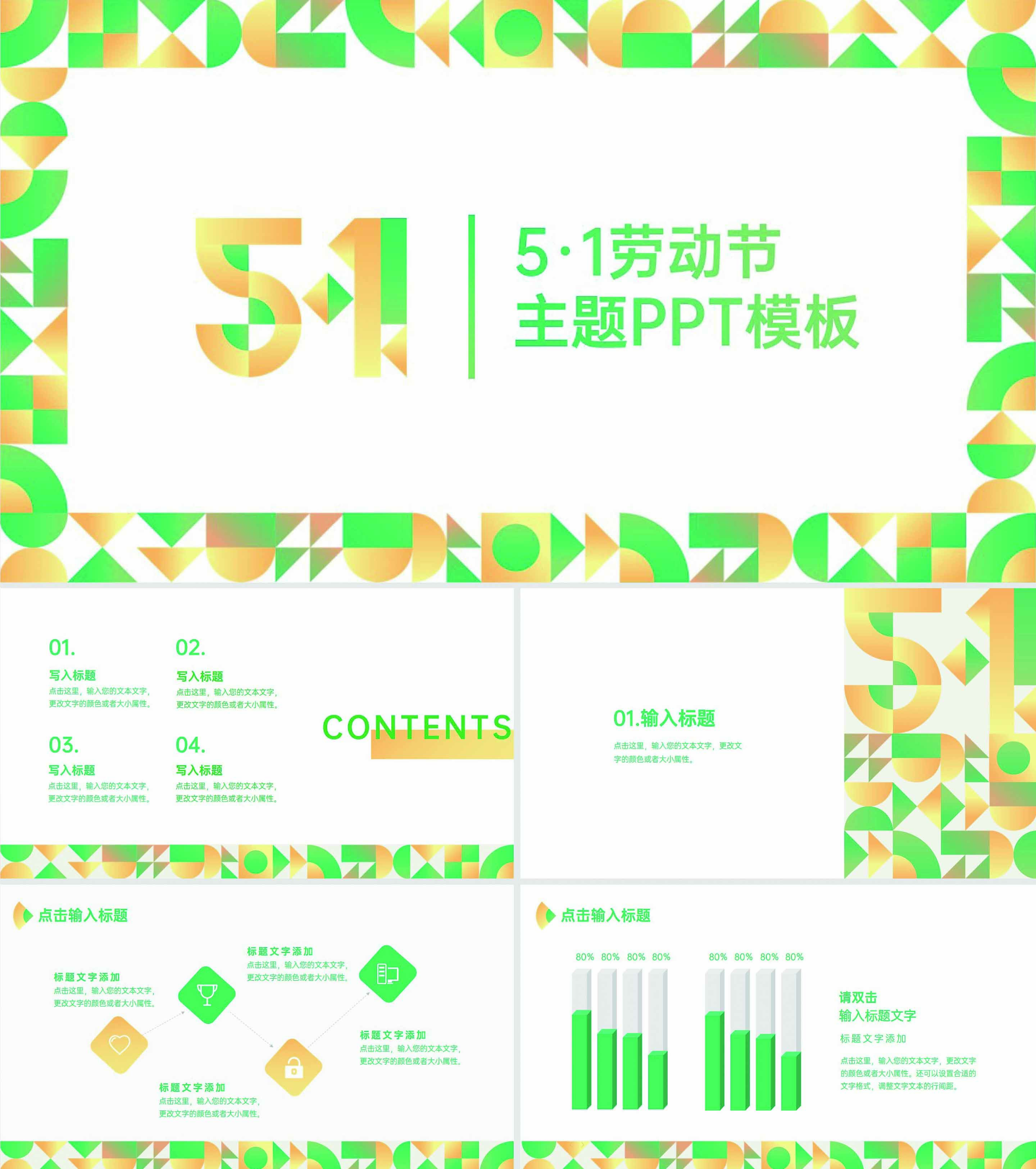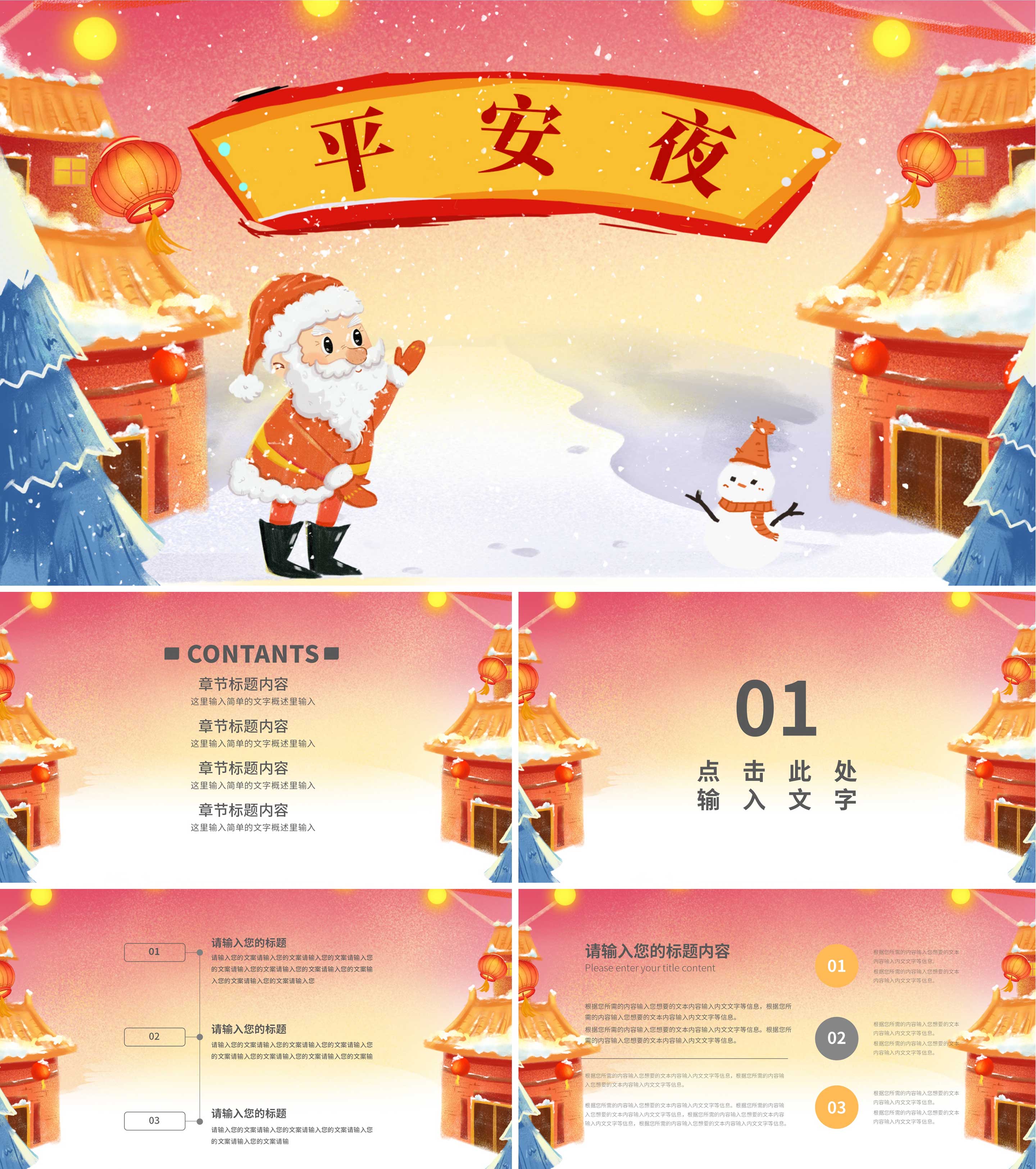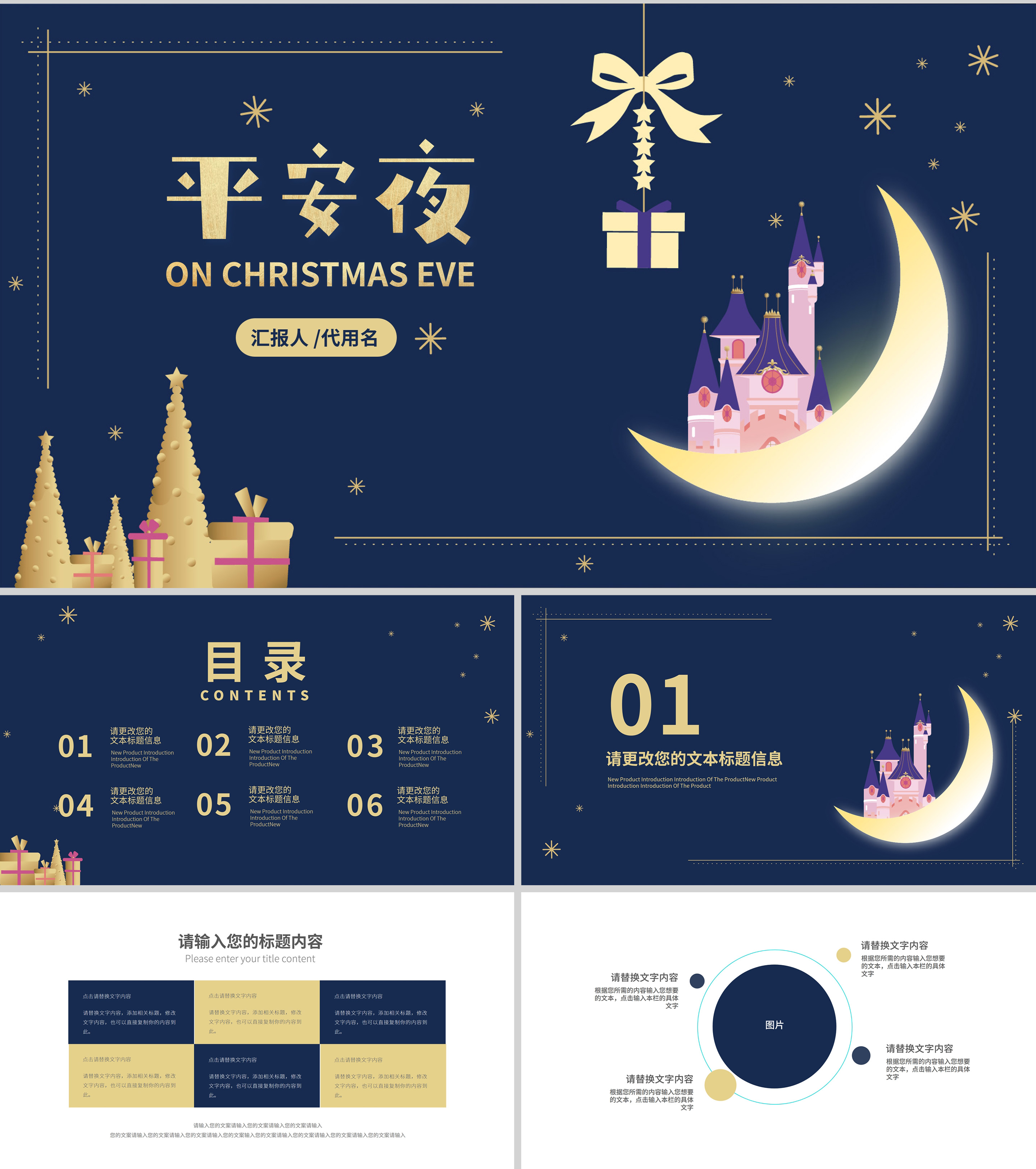 绿色插画风麋鹿唯美圣诞节节日PPT模板
