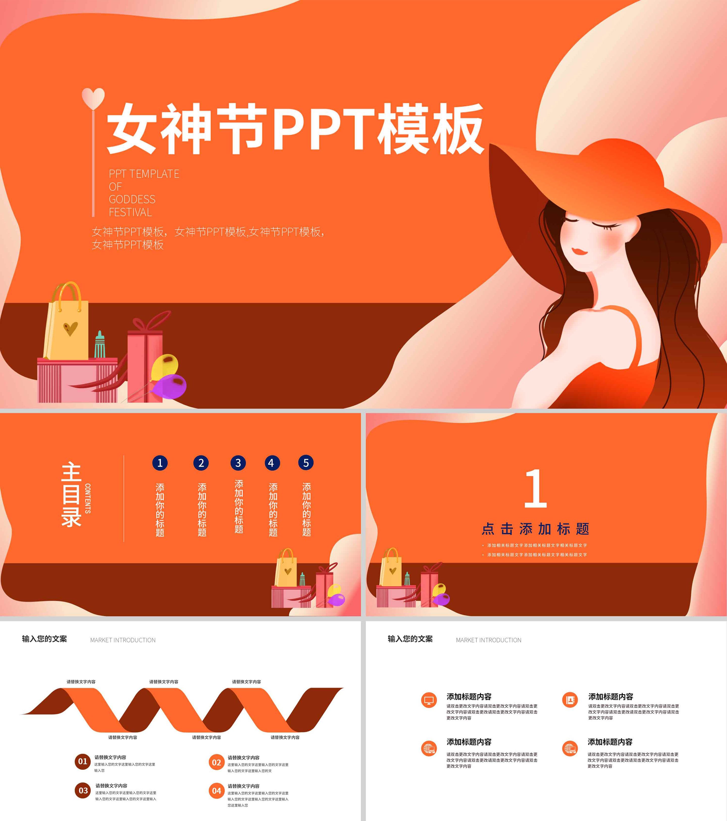 橙色卡通风女神节节日PPT模板
