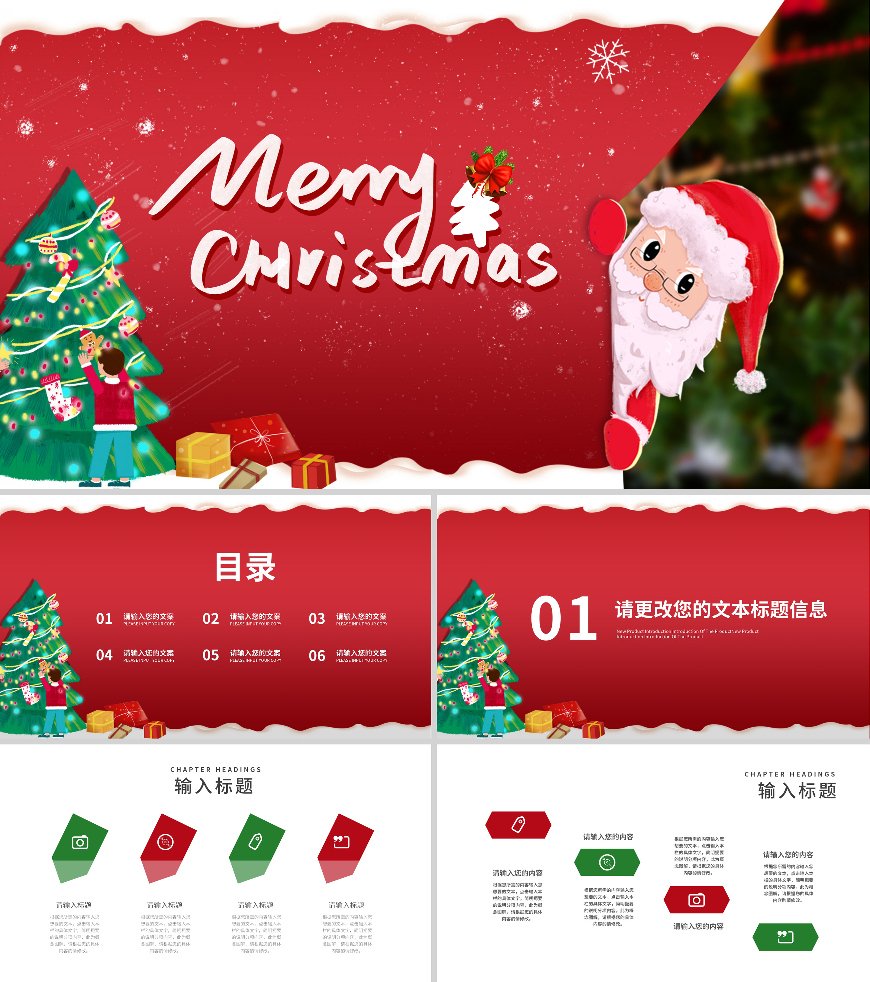 红色插画风卡通贺卡圣诞节PPT模板