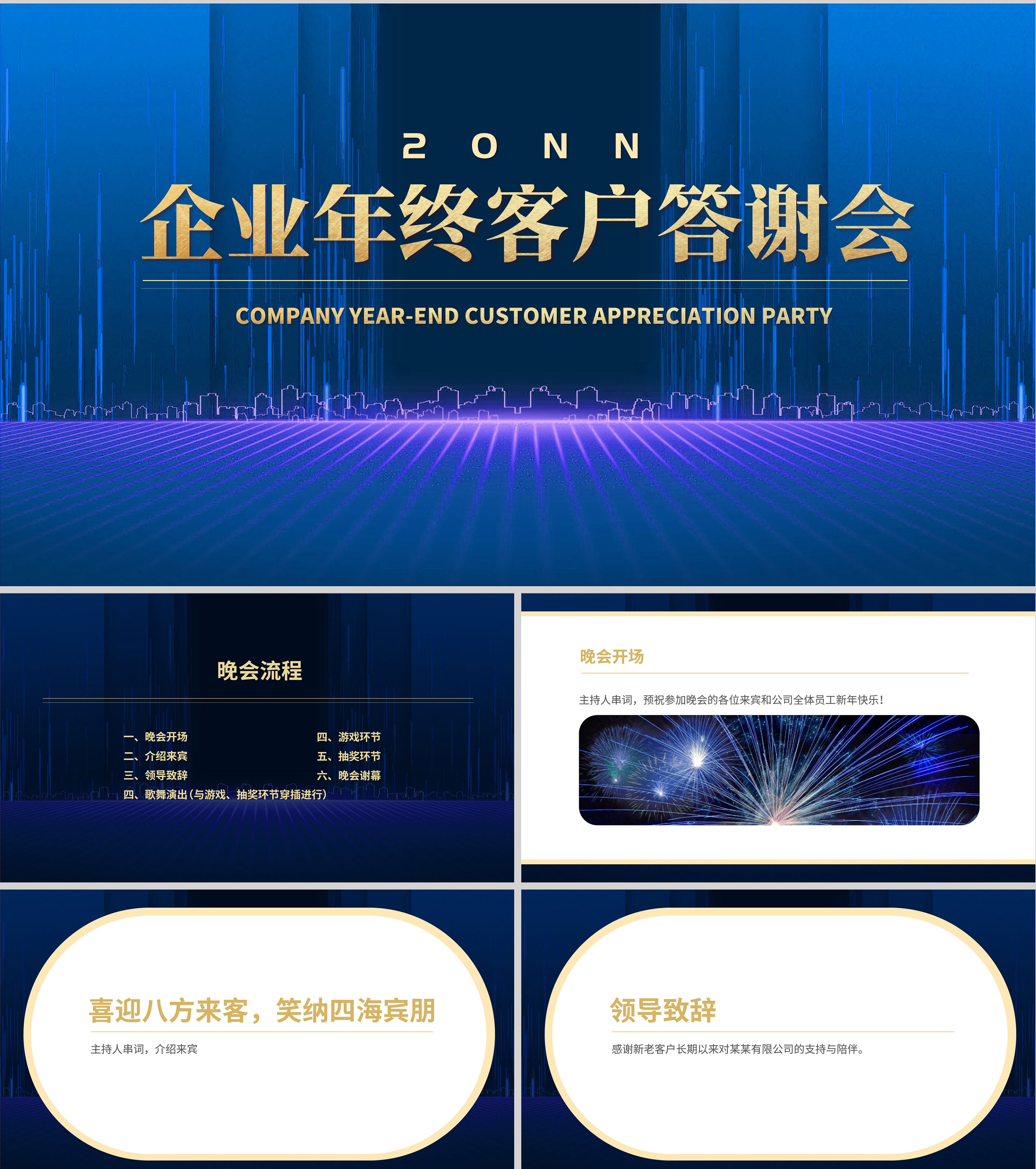 蓝色简约风商务年终客户答谢会表演流程PPT庆典