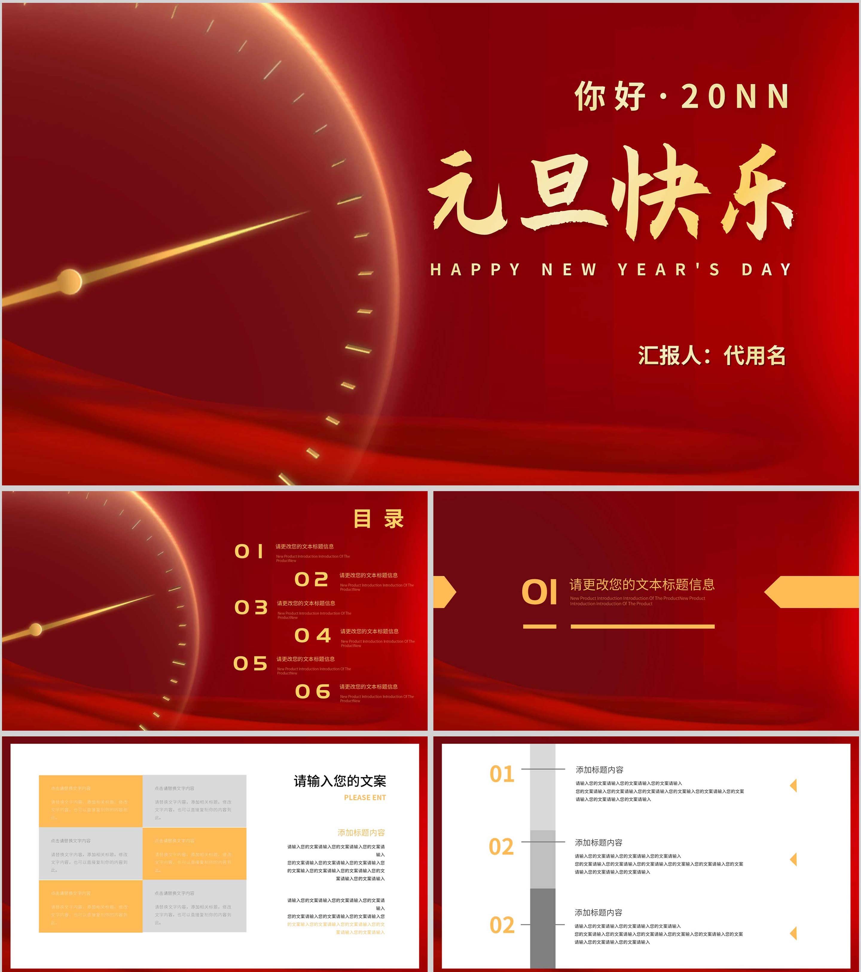 红色简约风时钟元旦节日庆典PPT模板