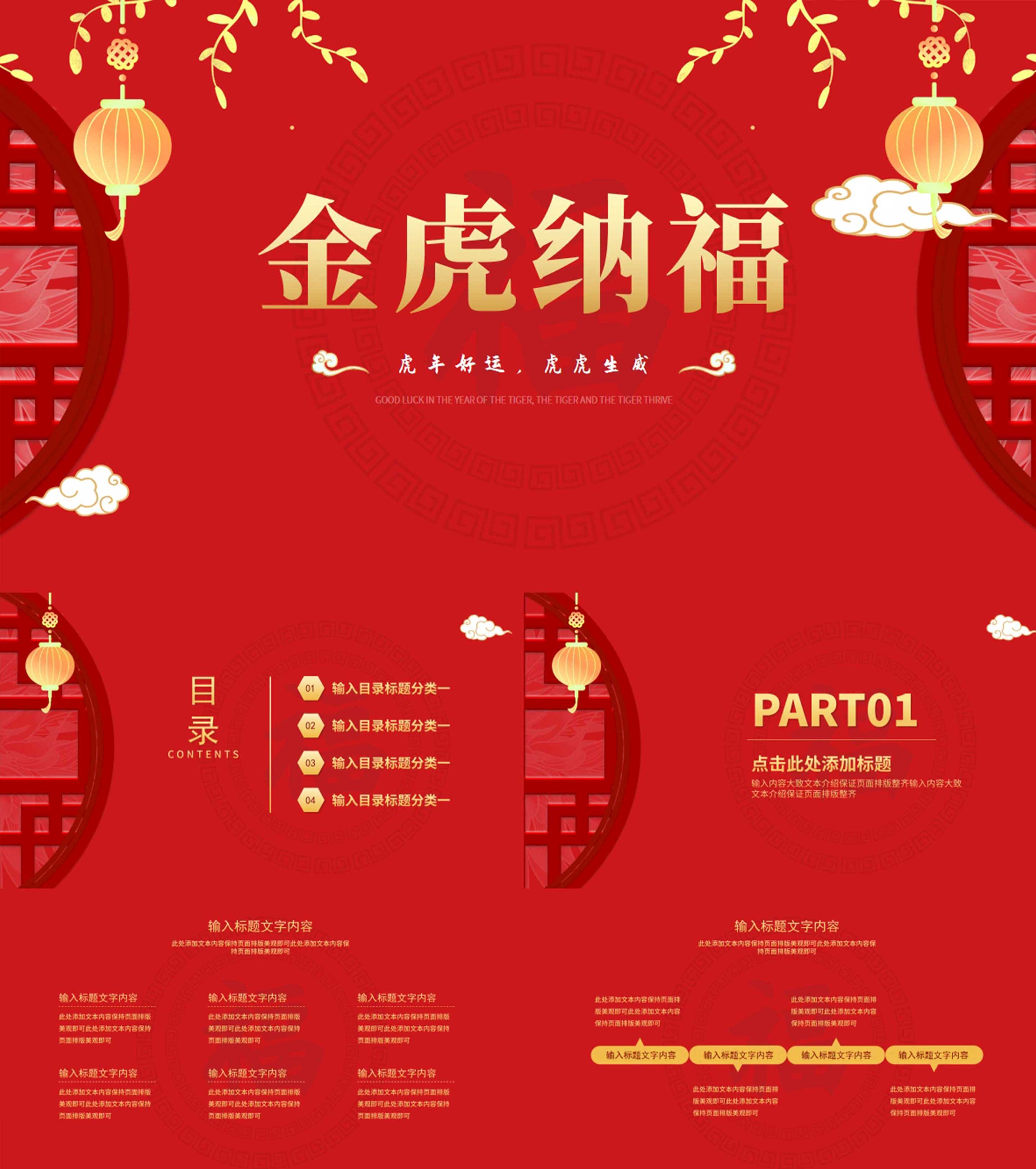 红色中国风金虎纳福虎年传统节日PPT模板