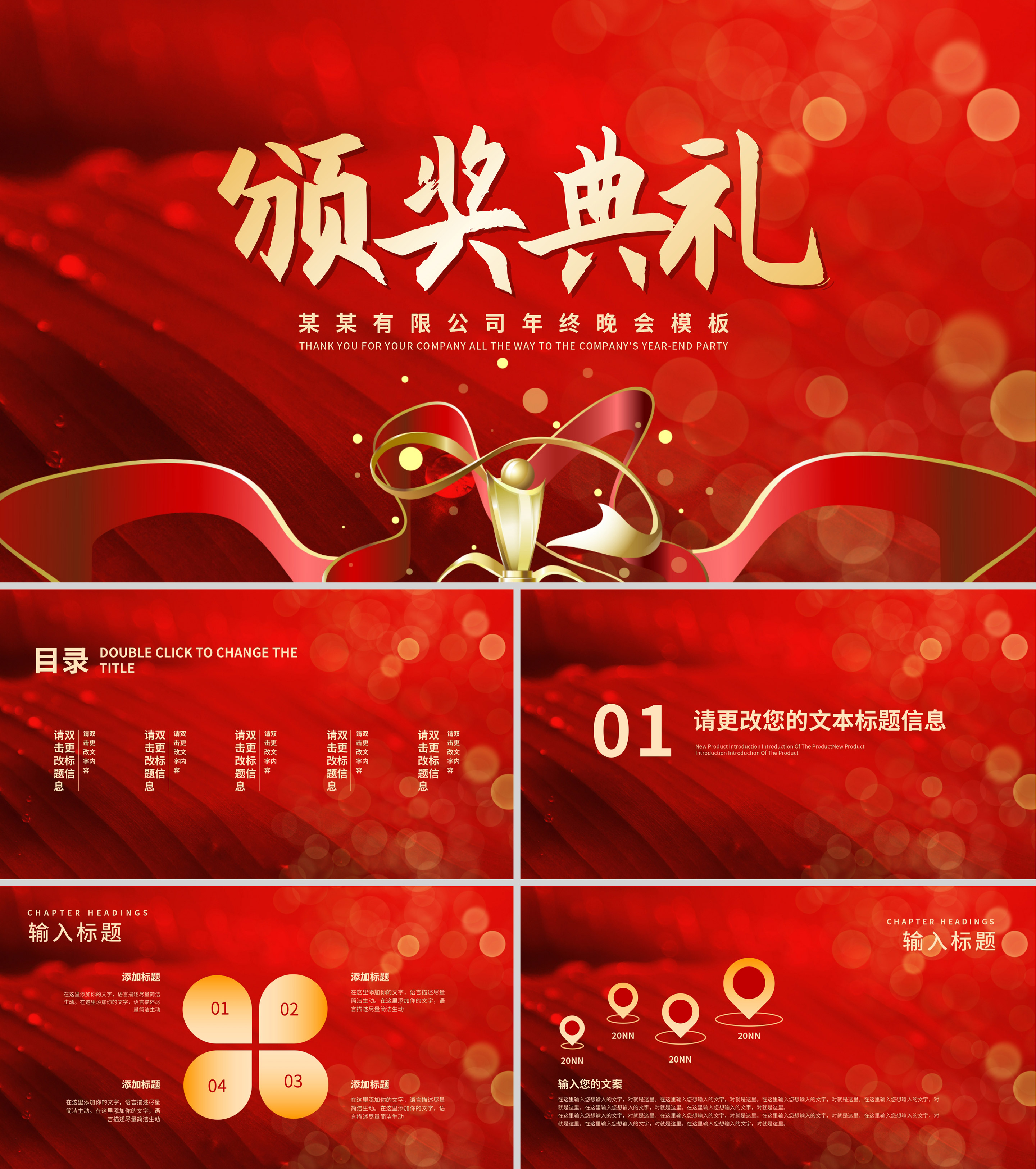 红色商务风公司年终晚会颁奖典礼PPT模板