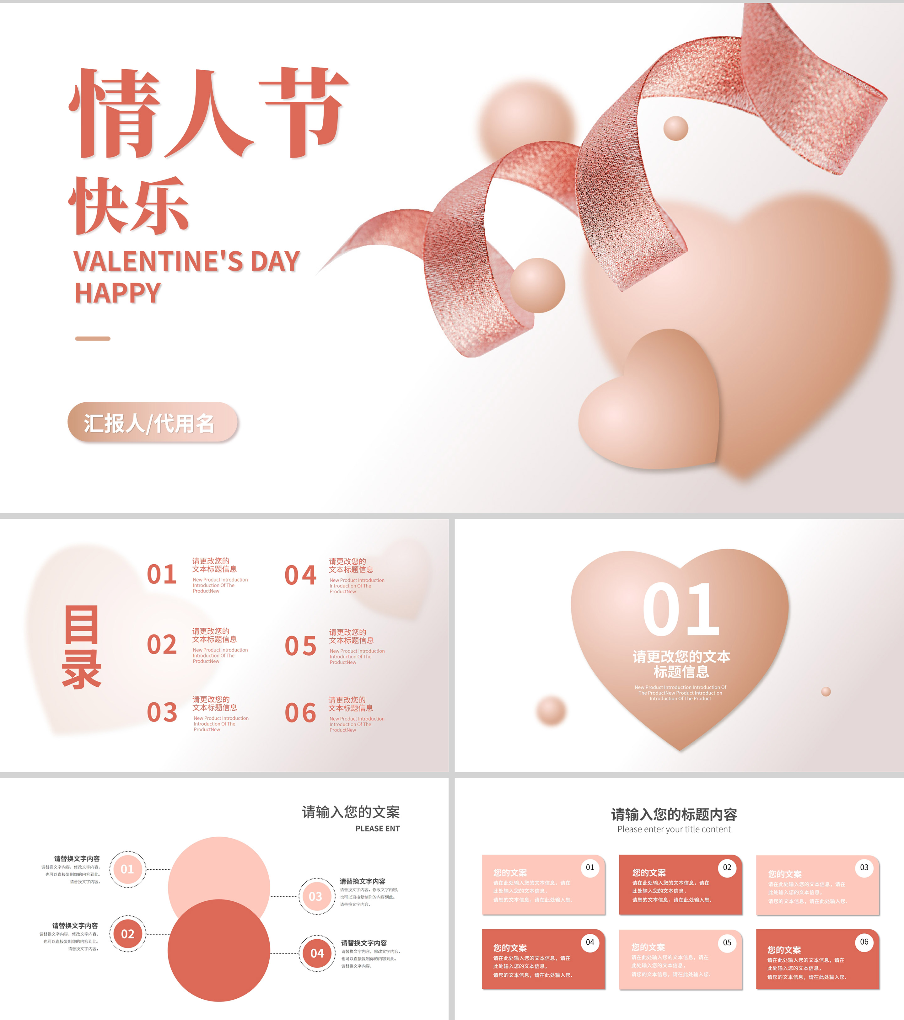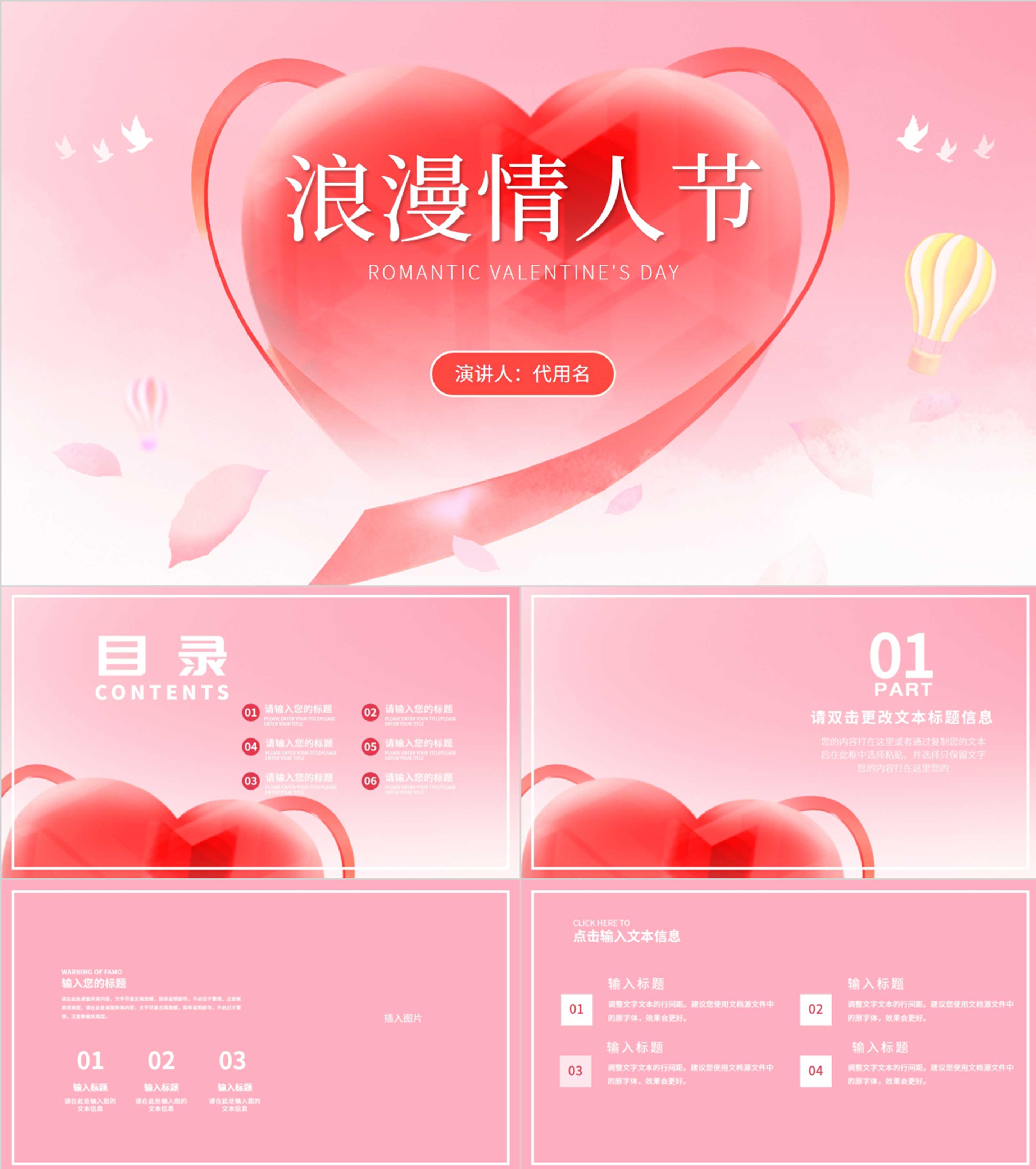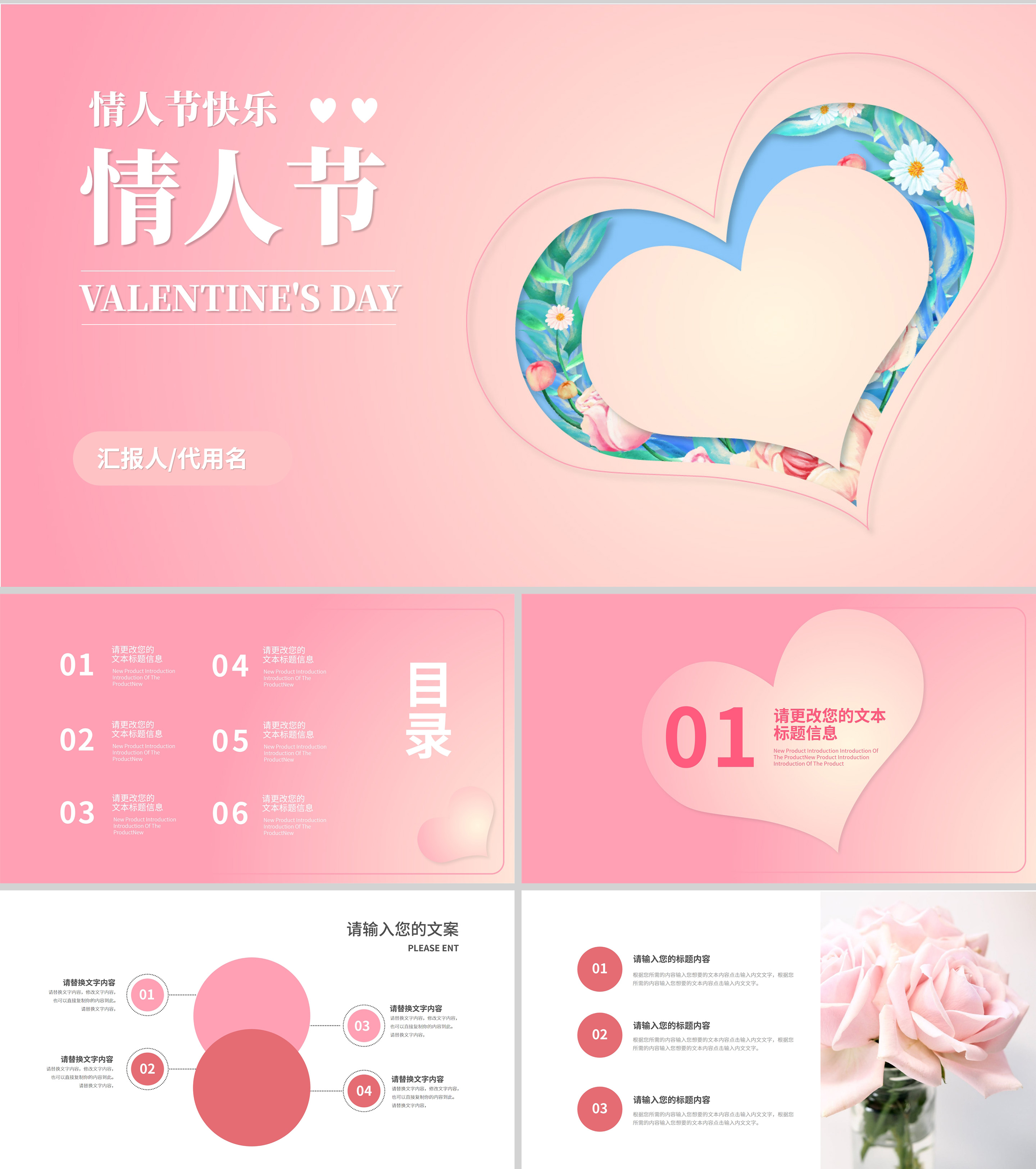 粉色小清新浪漫情人节节日PPT模板