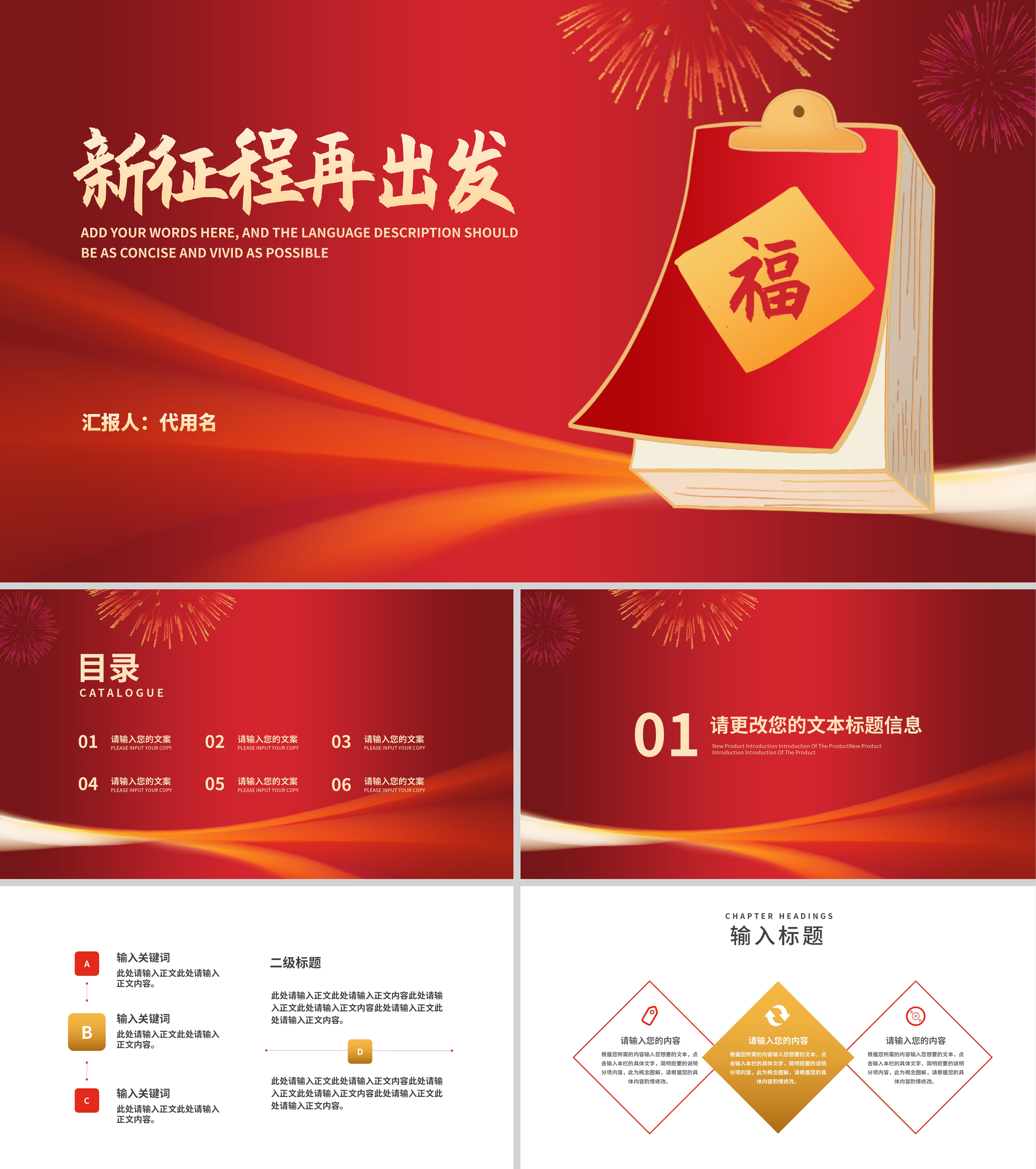 红色中国风虎年好运新年节日PPT模板