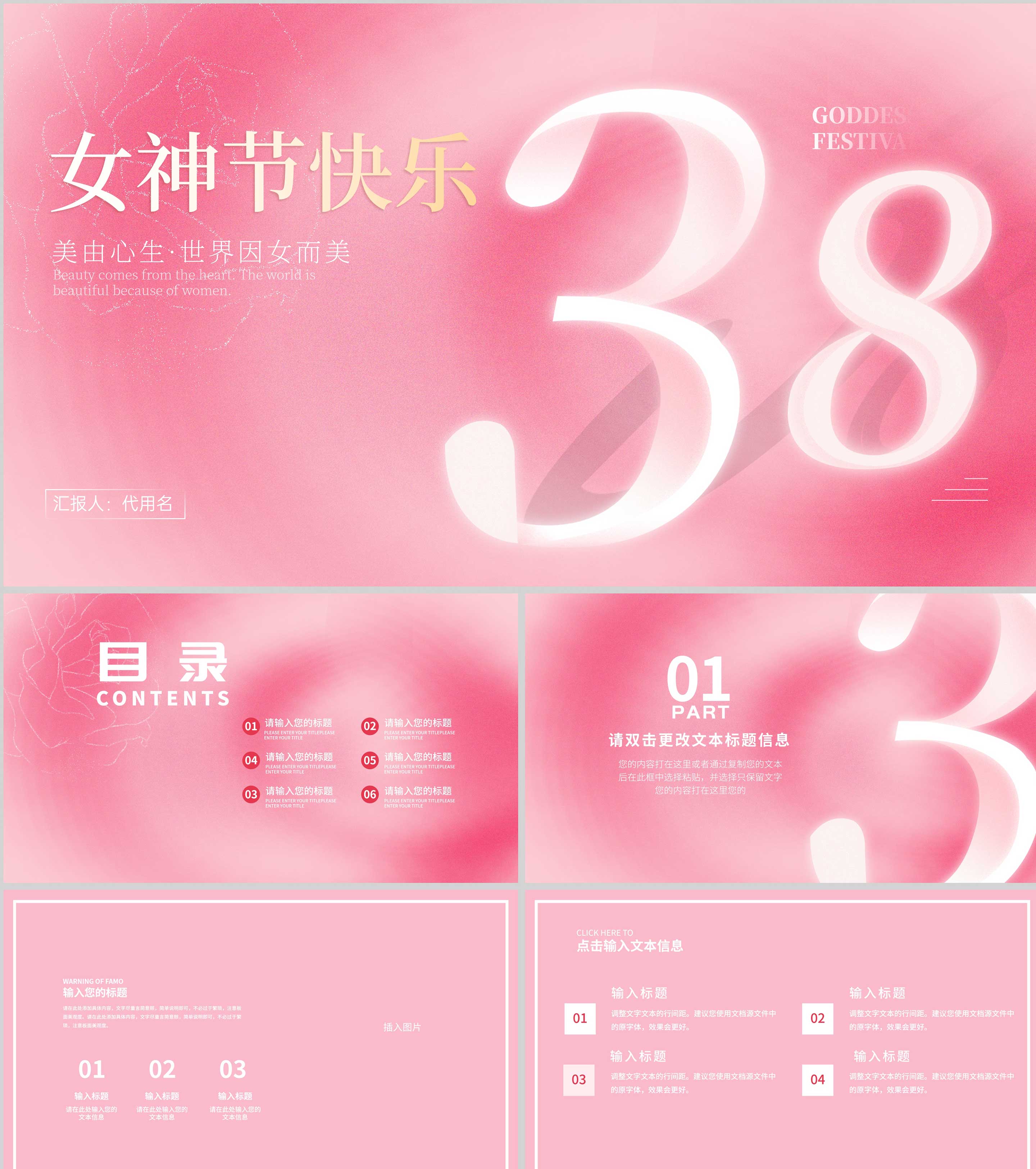 小清新粉色纹理女神节促销活动汇报演讲PPT模板