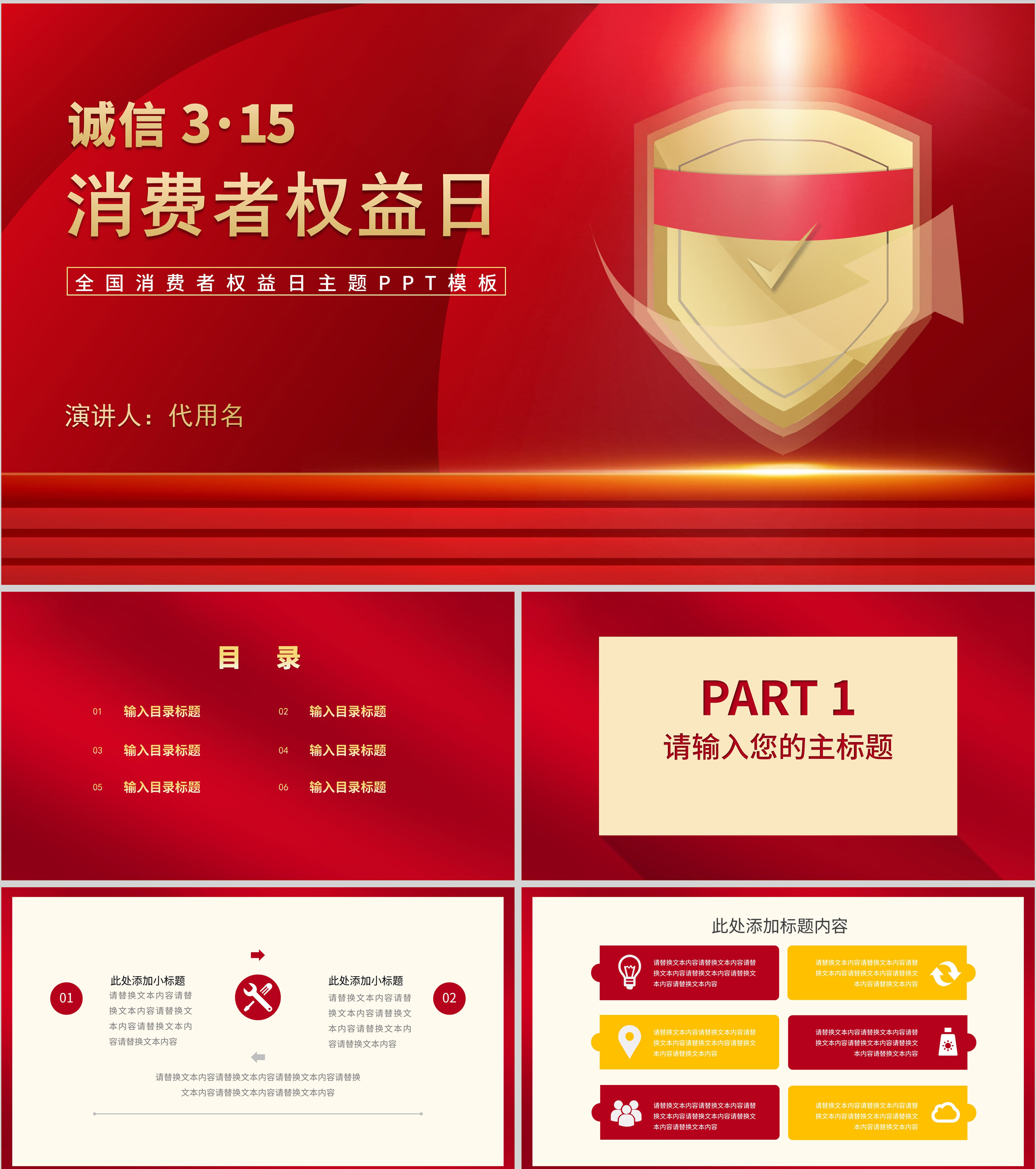 红色简约风大气全国消费者权益日主题演讲PPT模板