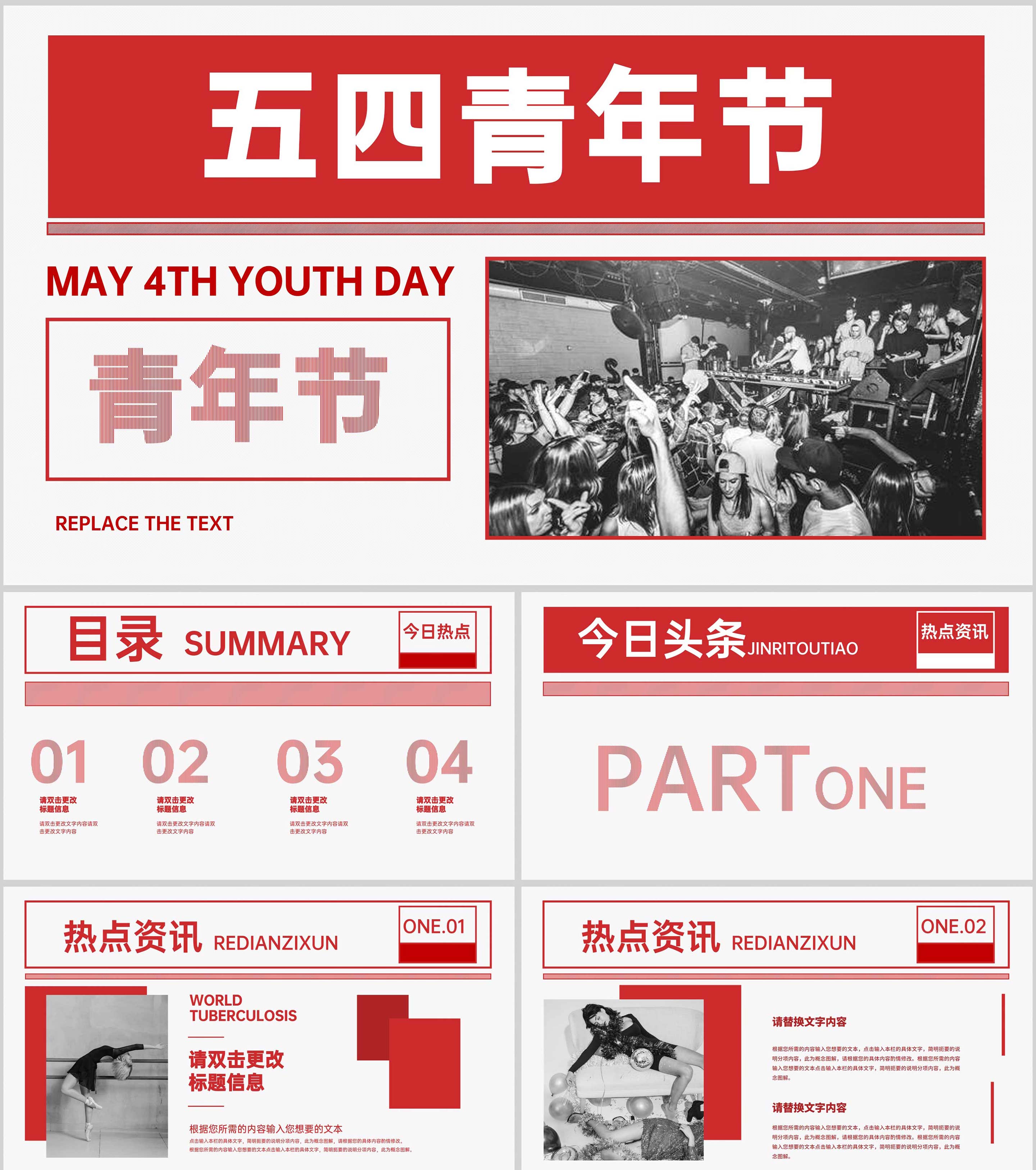 红色简约风五四青年节主题PPT模板