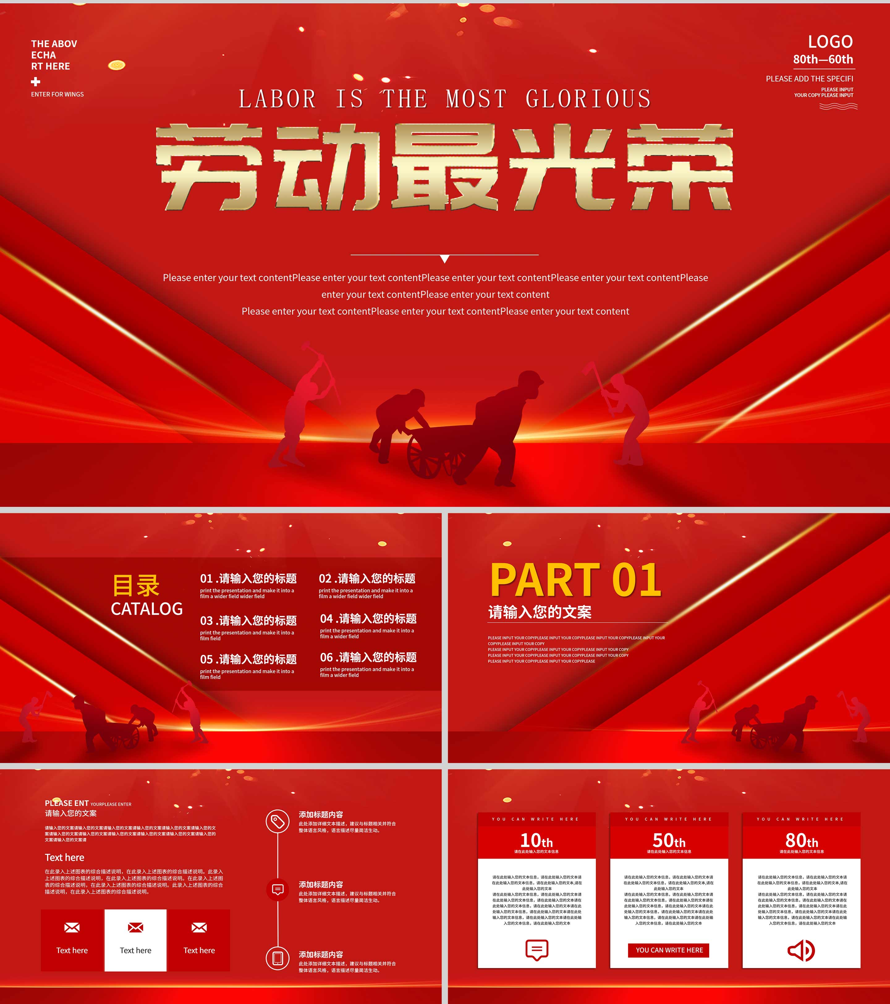 红色党政风五一劳动节PPT模板