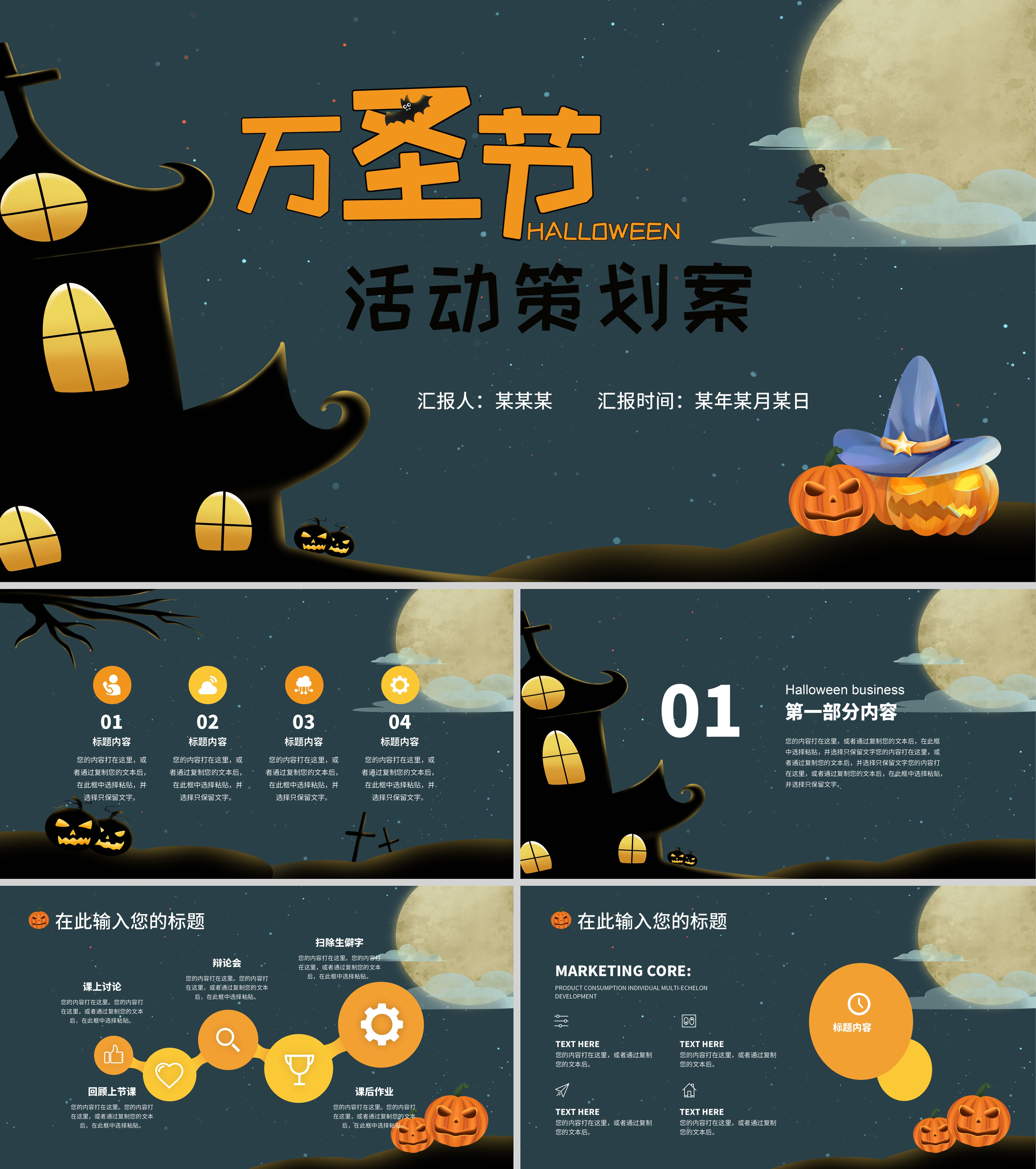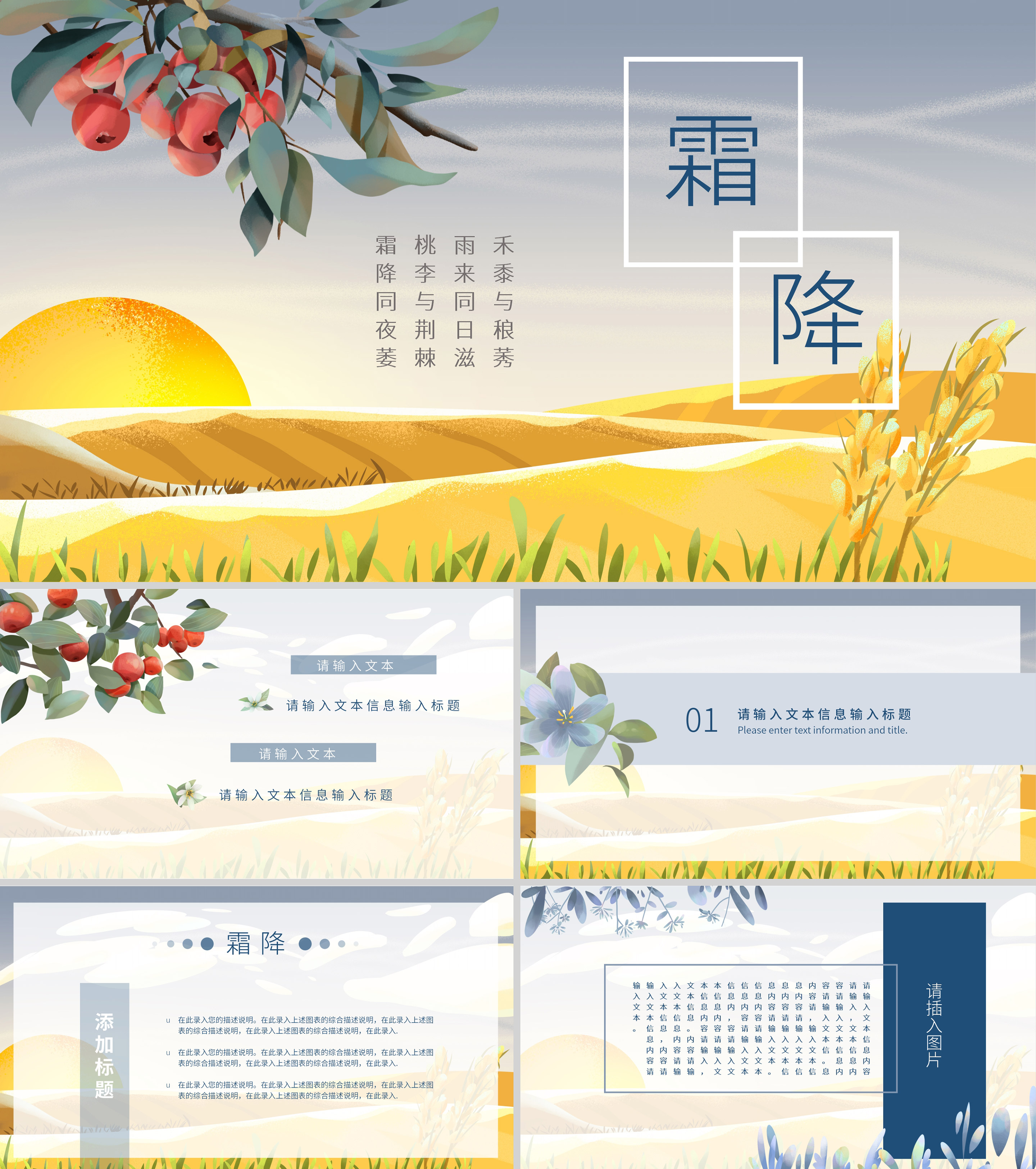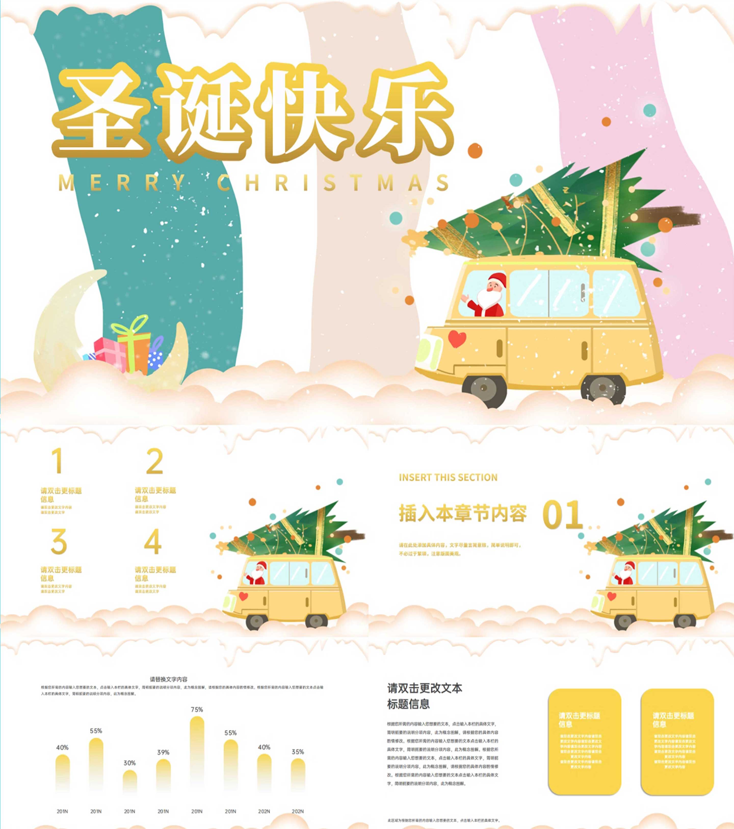 黄色卡通风开小黄车的圣诞老人PPT模板