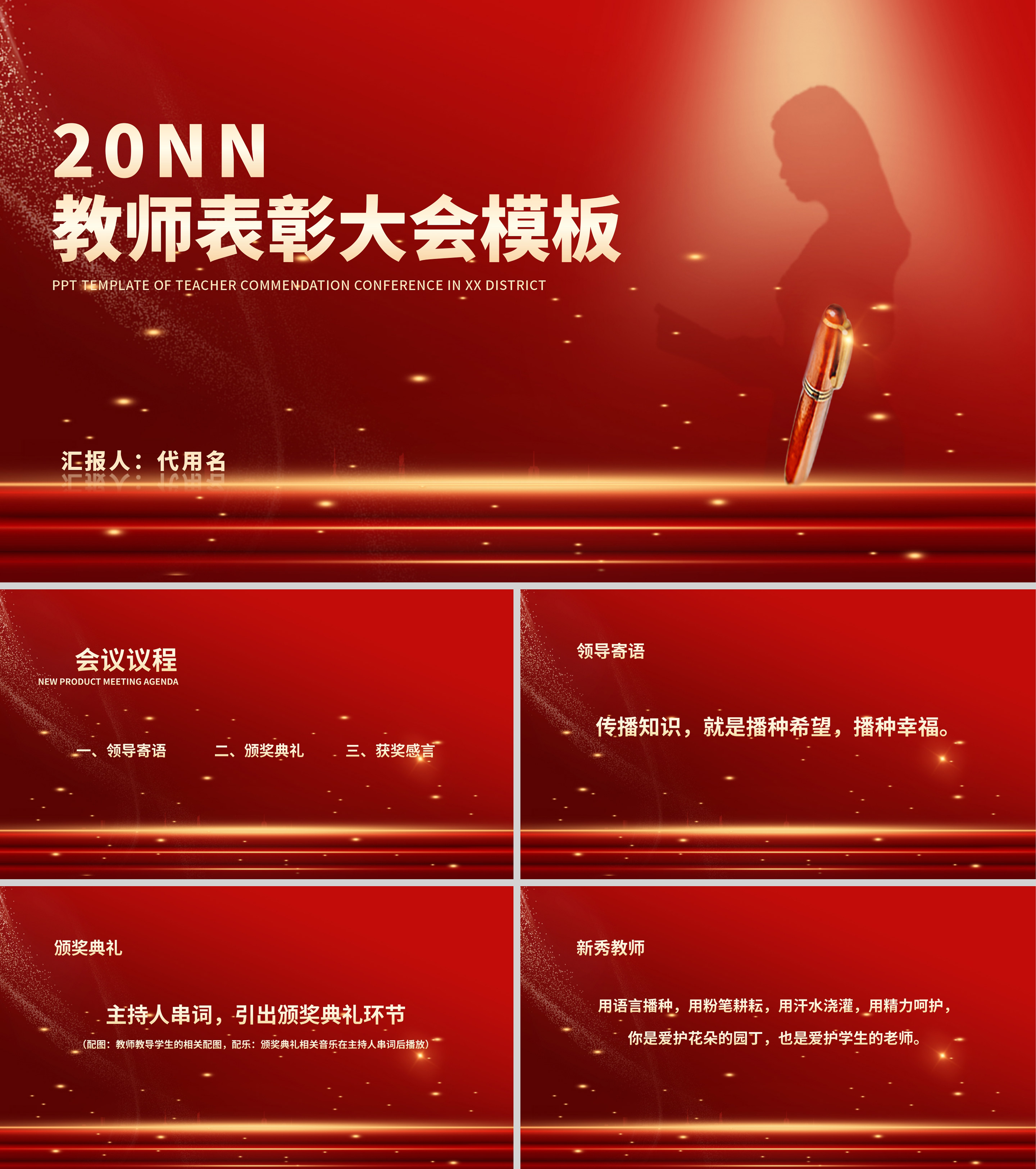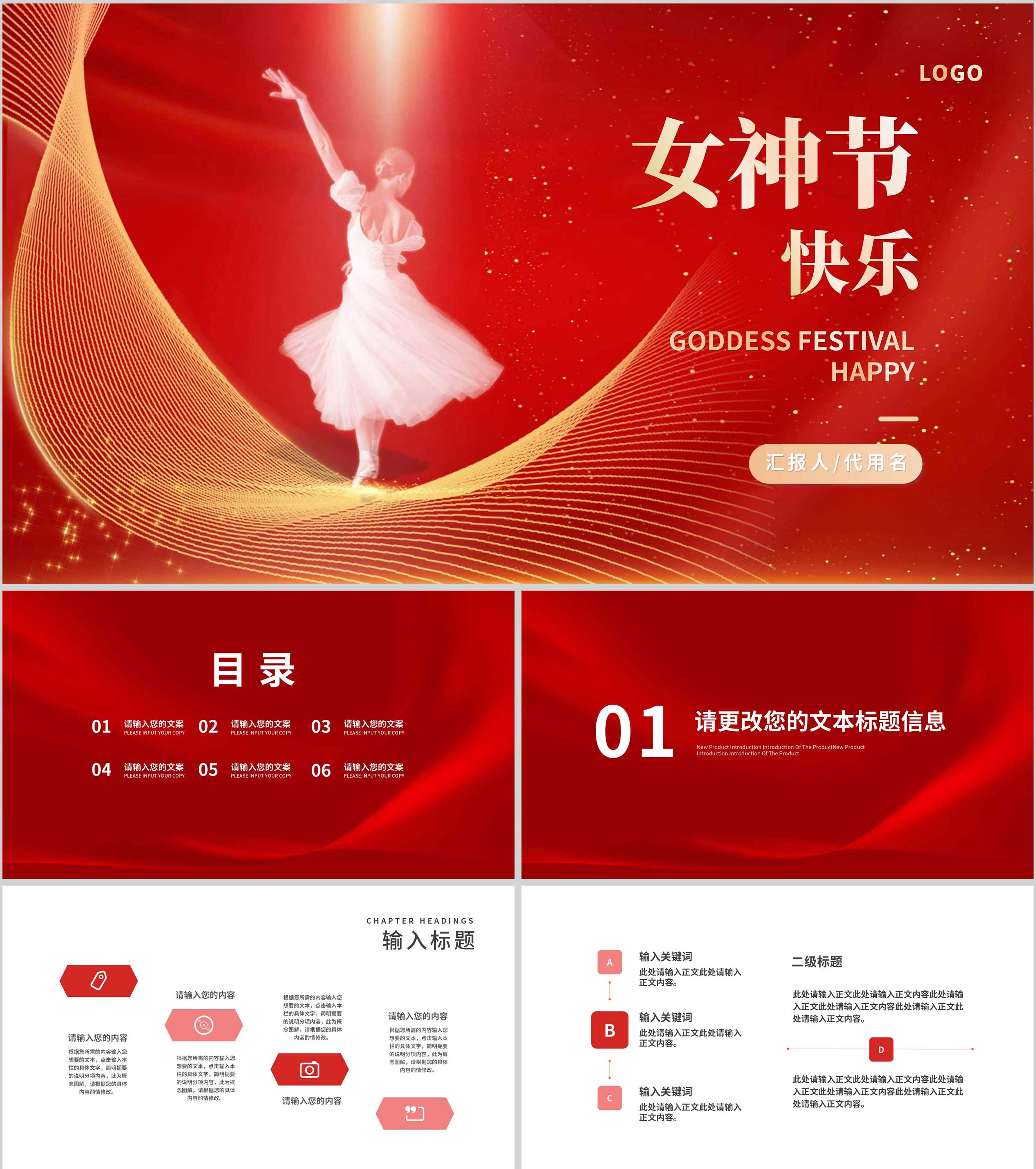 红色奢华鎏金舞者女神节快乐节日汇报PPT模板