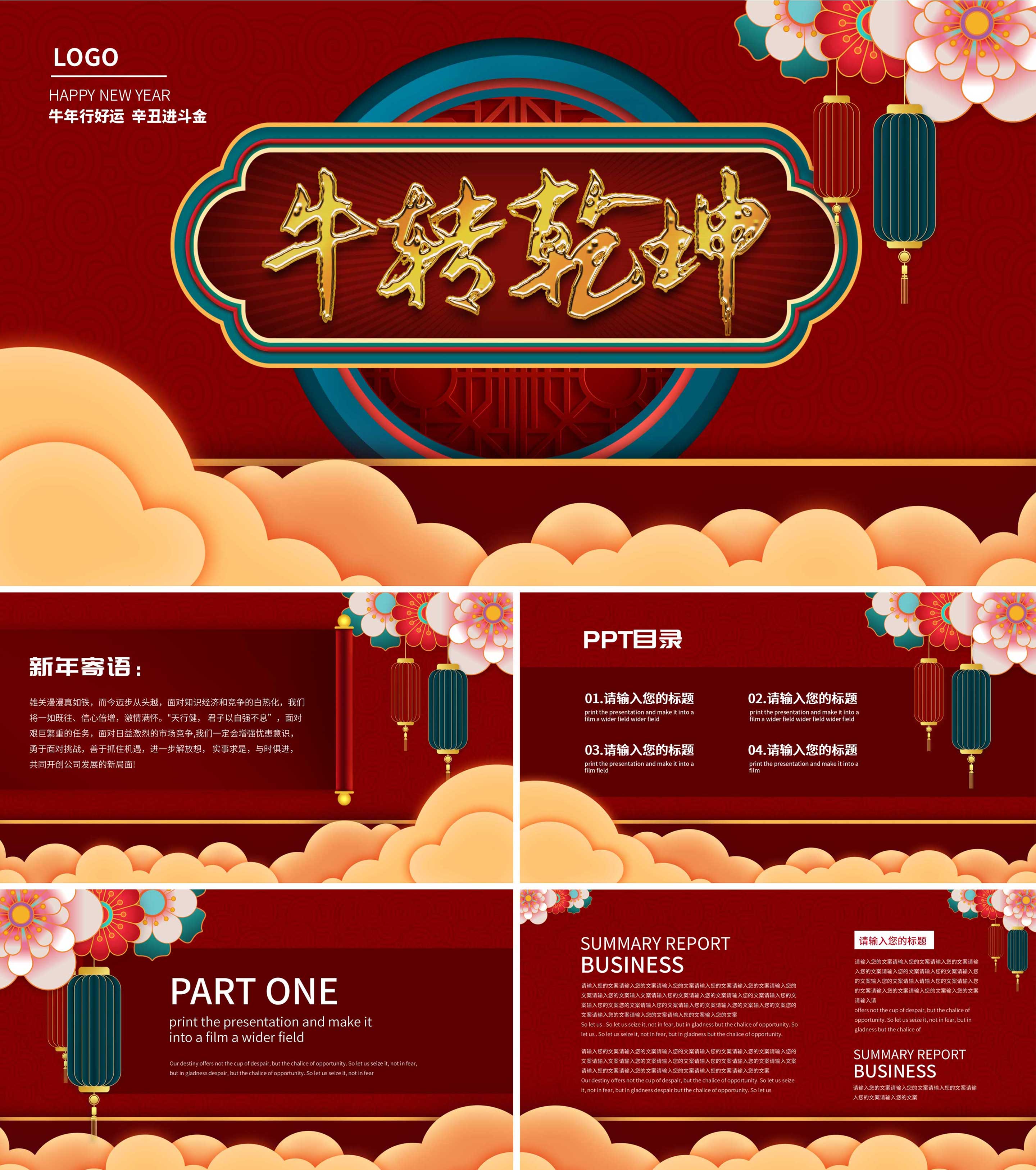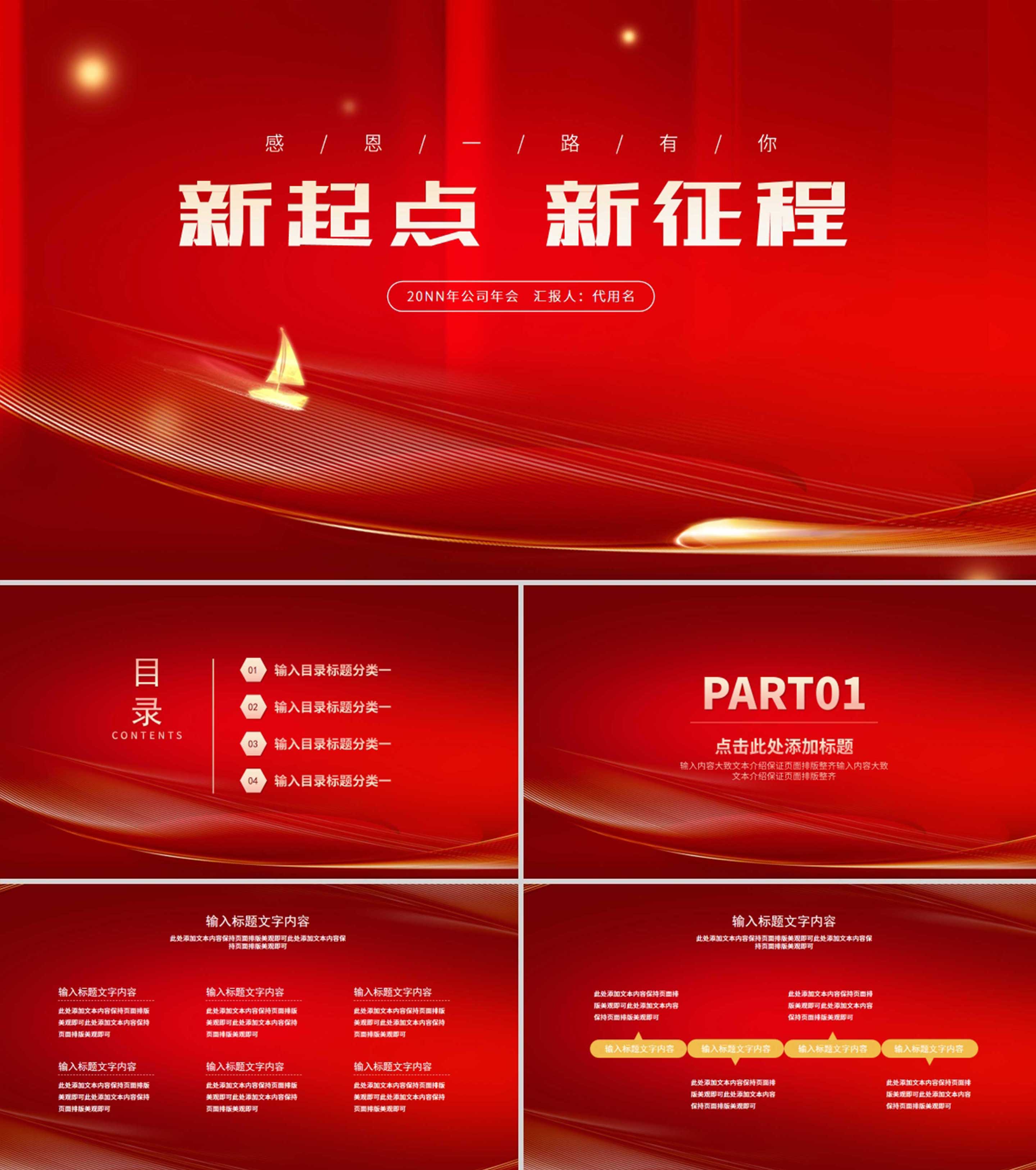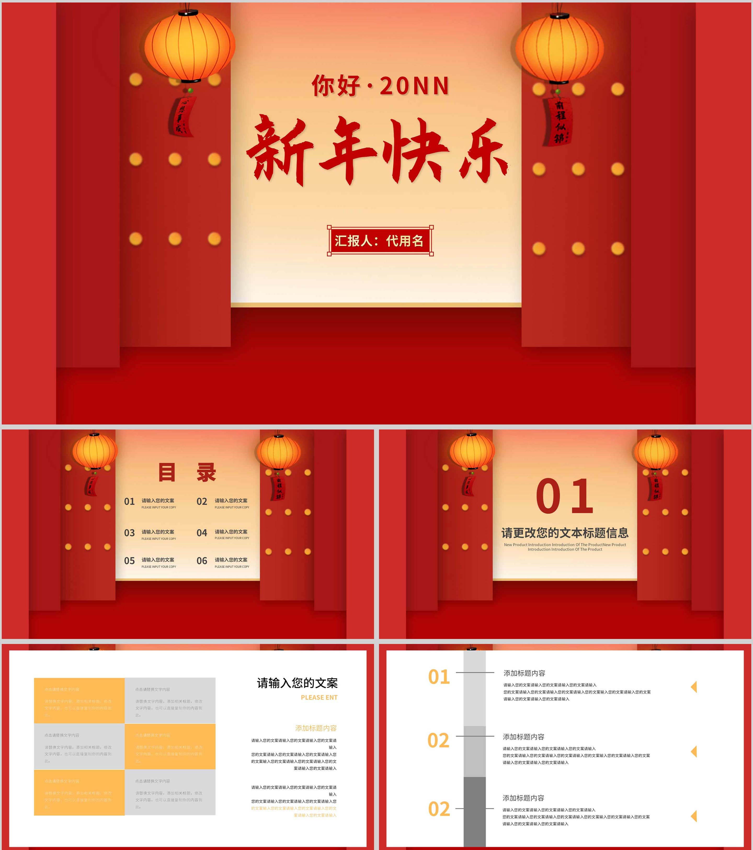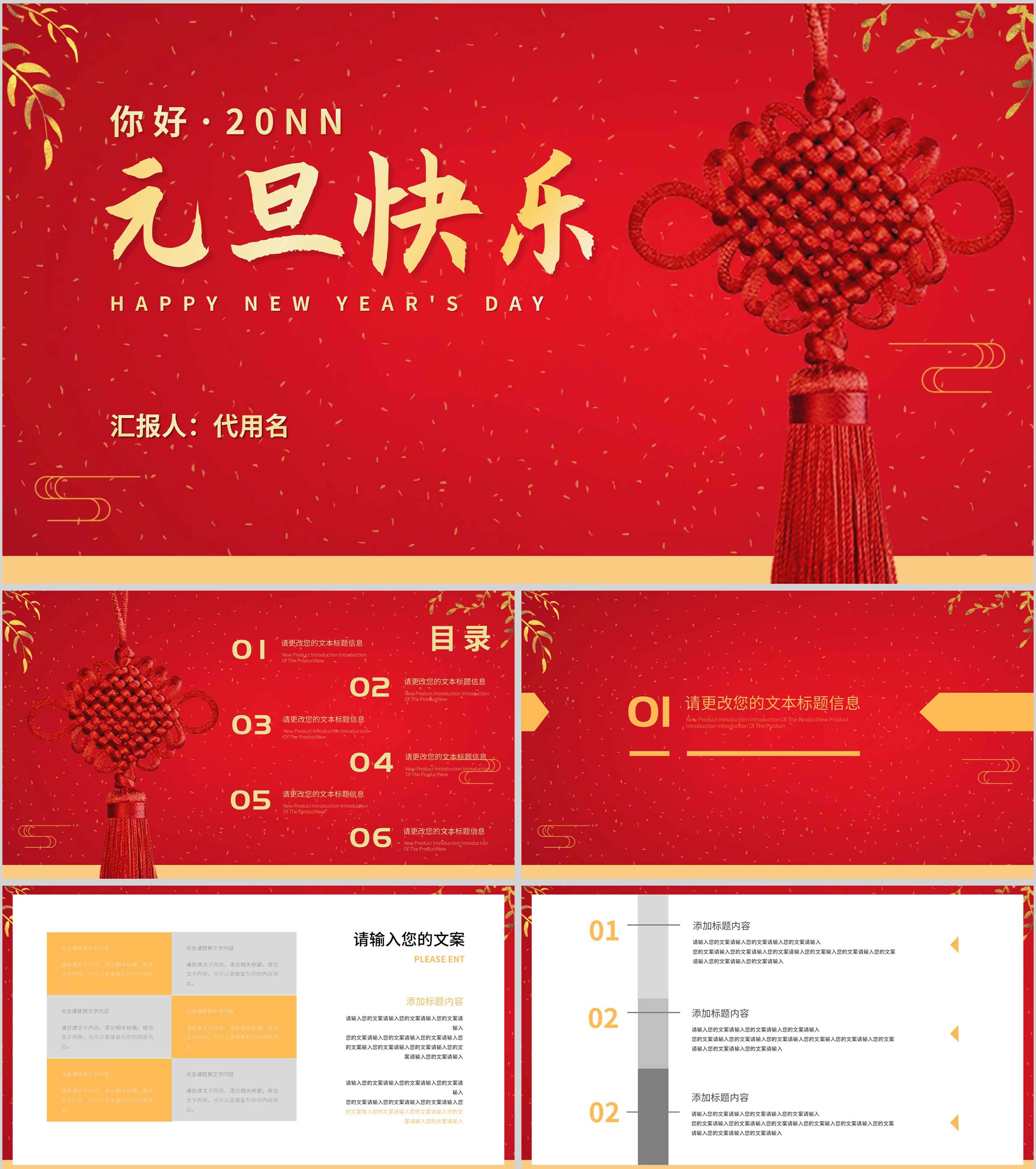 红色中国风鎏金中国结元旦节日庆典PPT模板