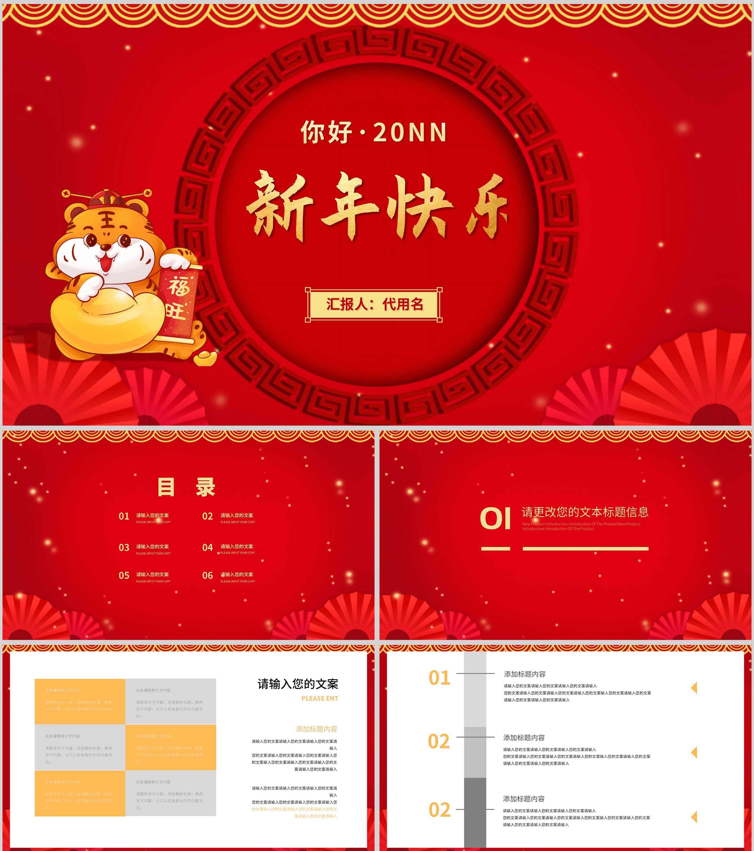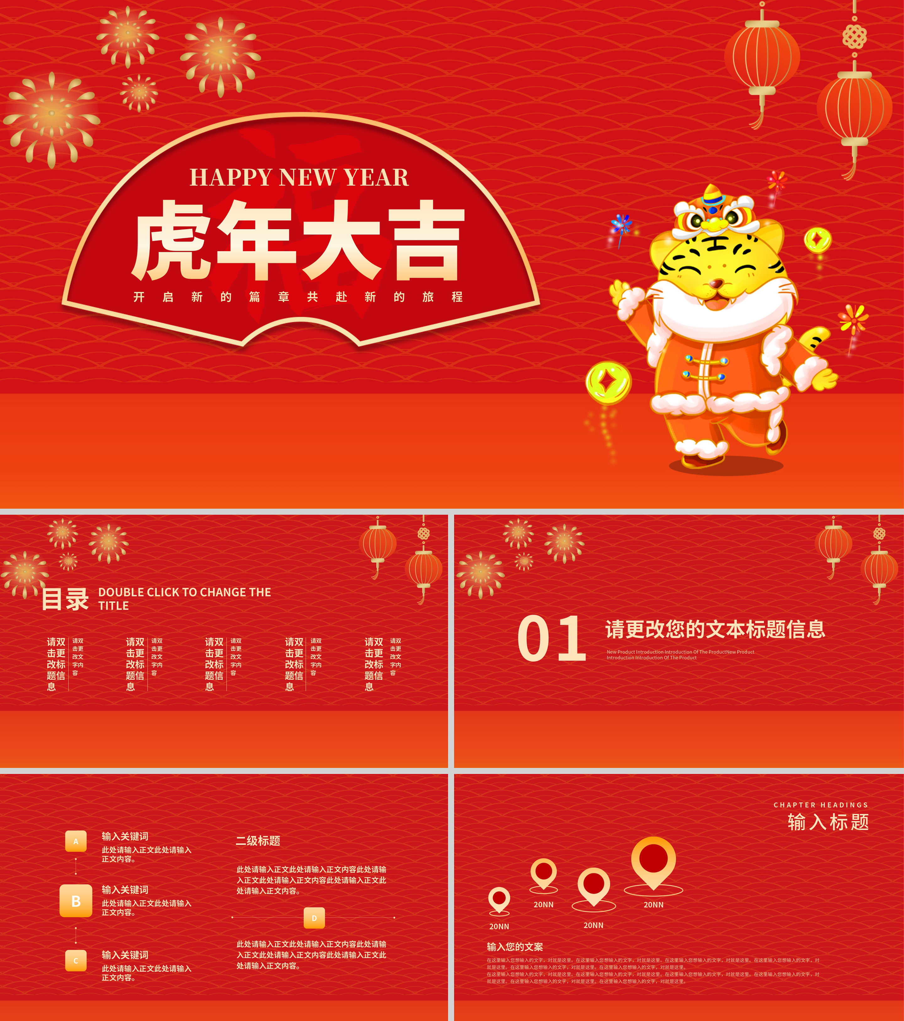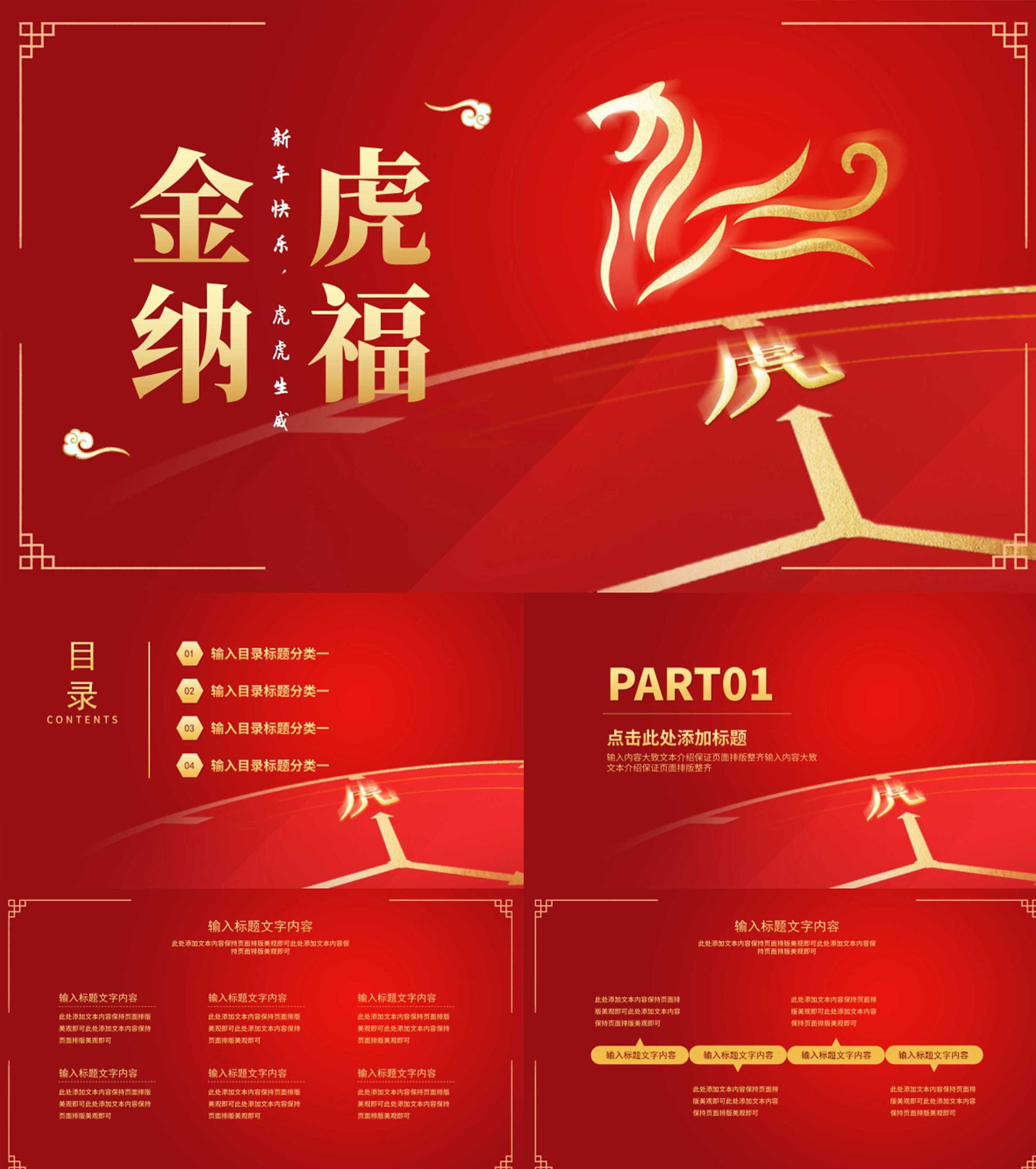 红色中国风虎符金虎纳福虎年节日PPT模板