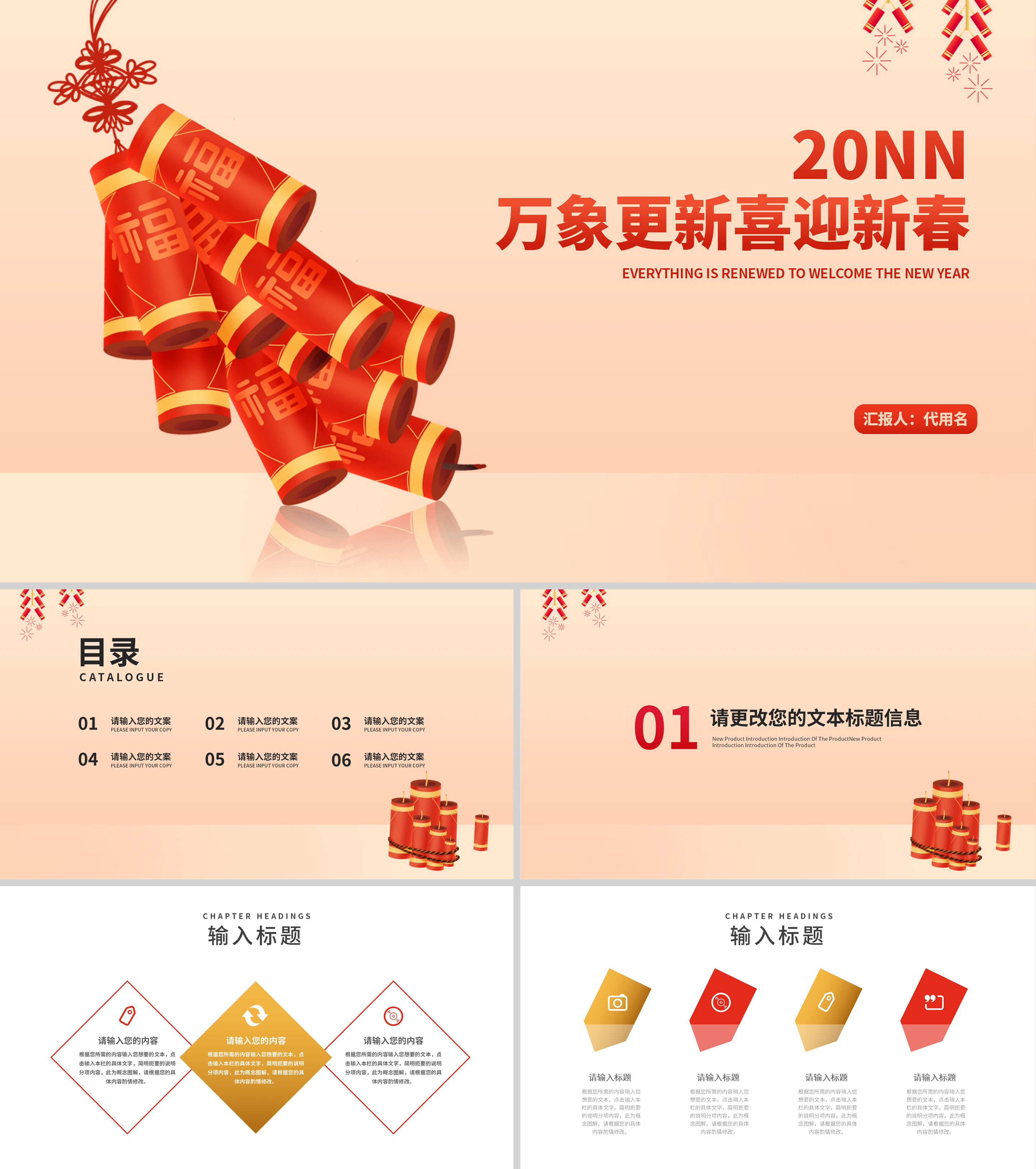 粉色中国风新年鞭炮春节喜庆节日PPT模板
