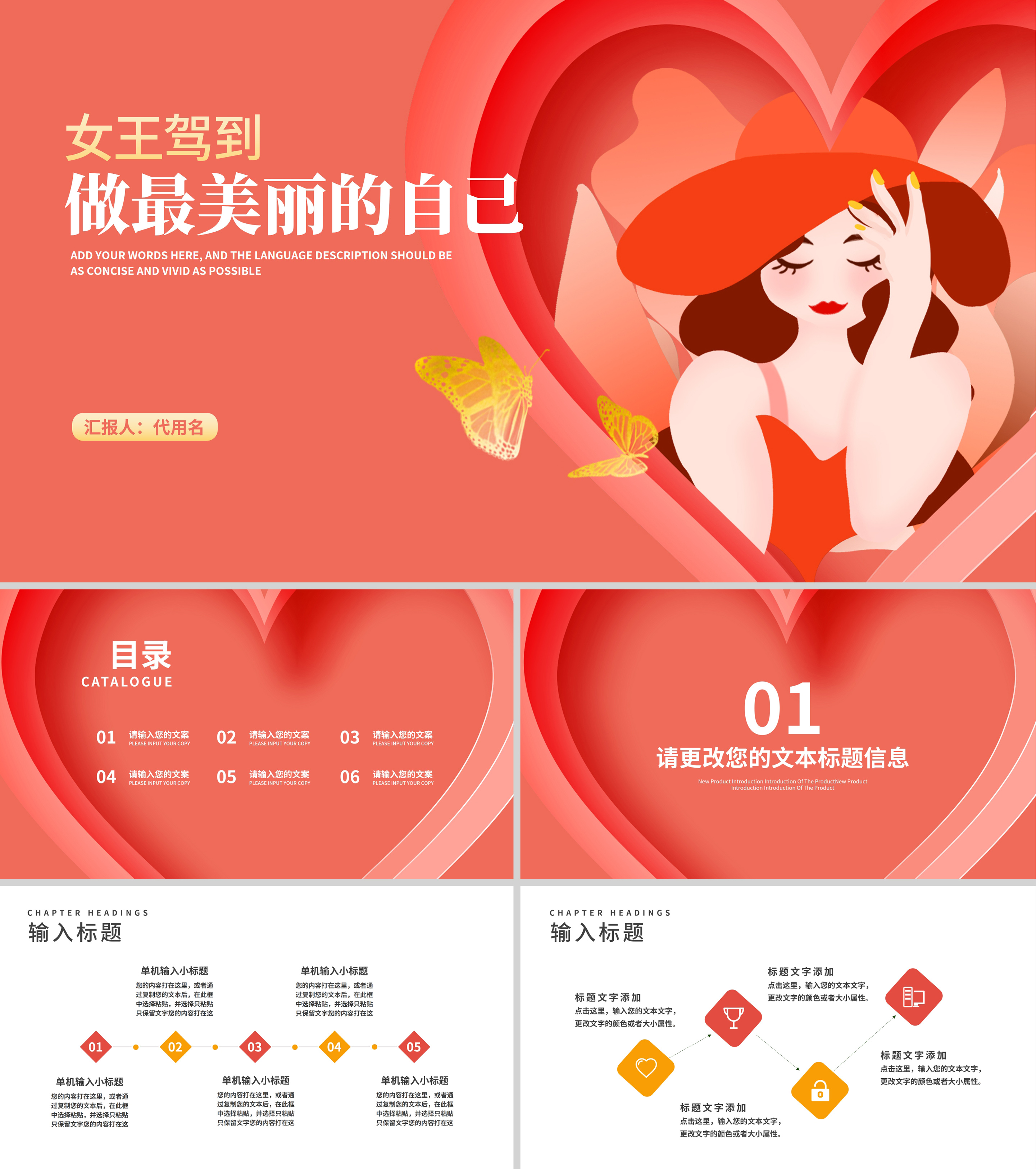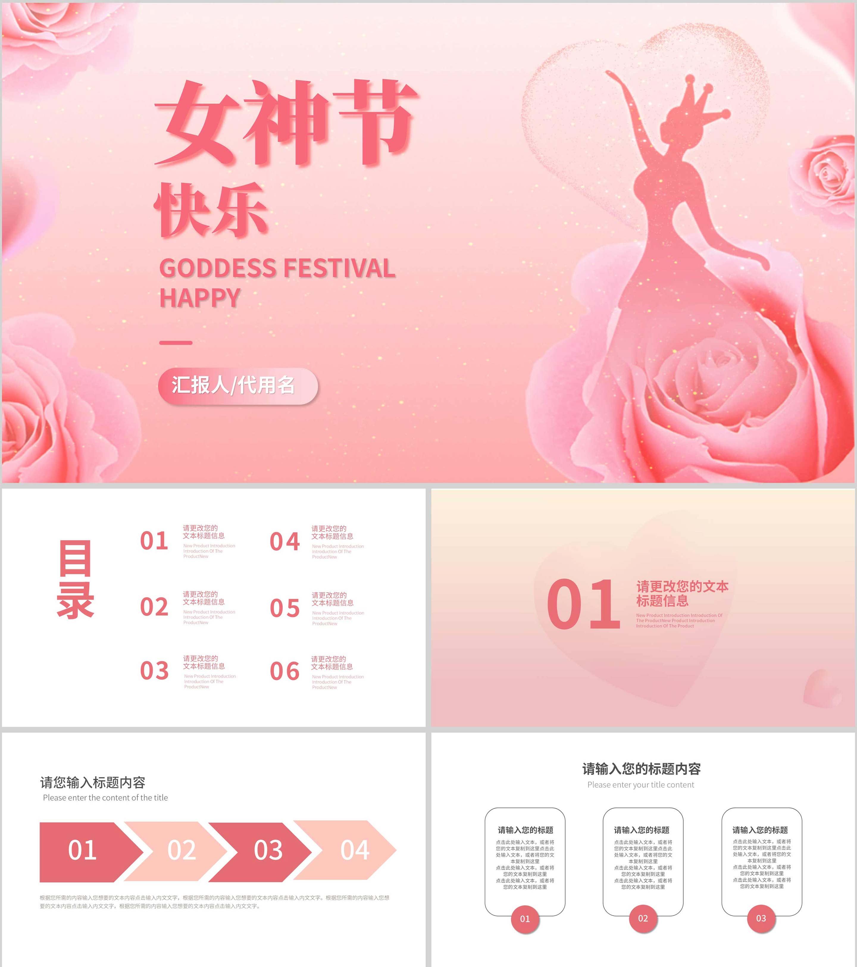 小清新粉色鎏金女王女神节节日汇报PPT模板