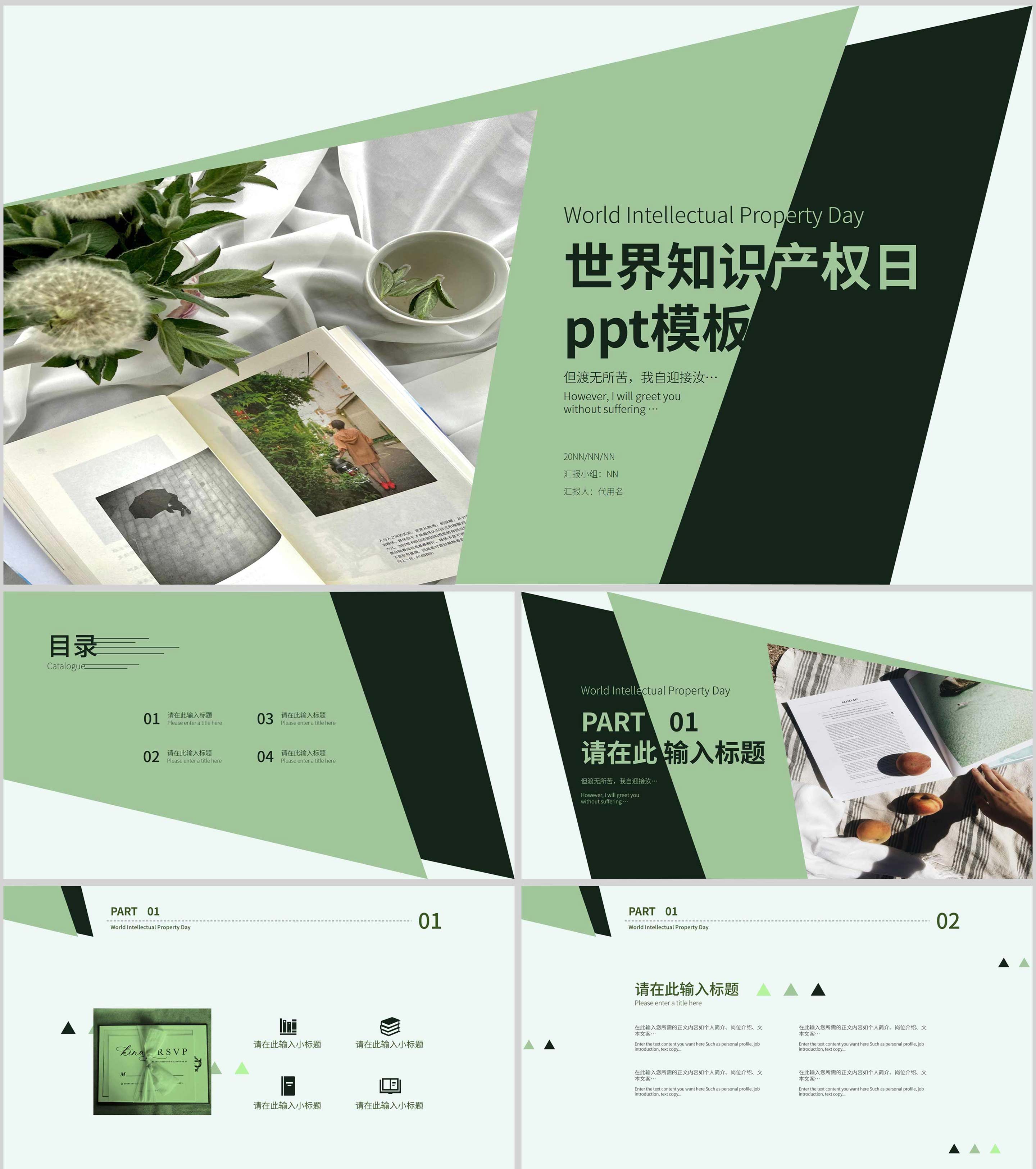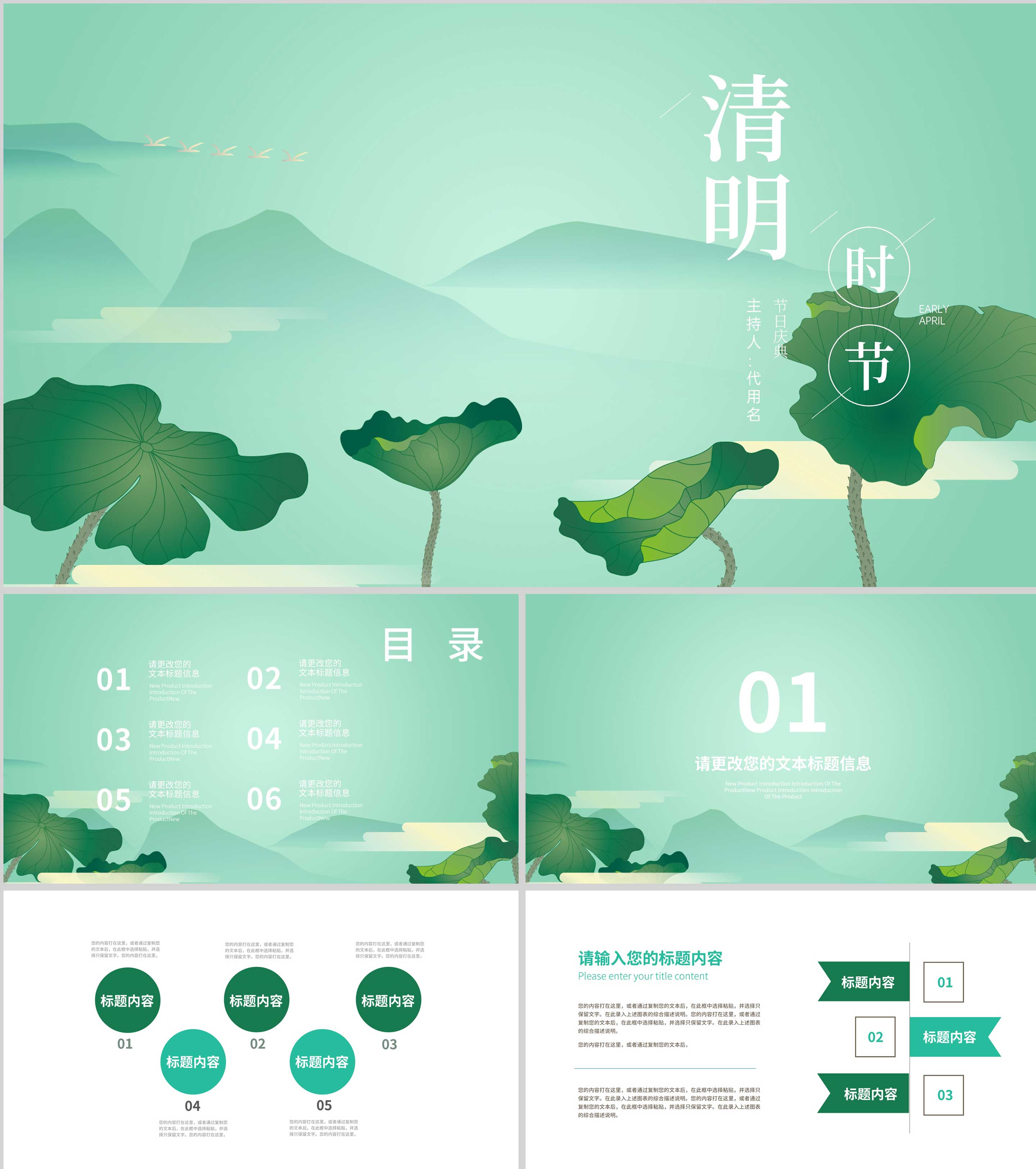 绿色小清新荷花清明节时节汇报主持PPT模板