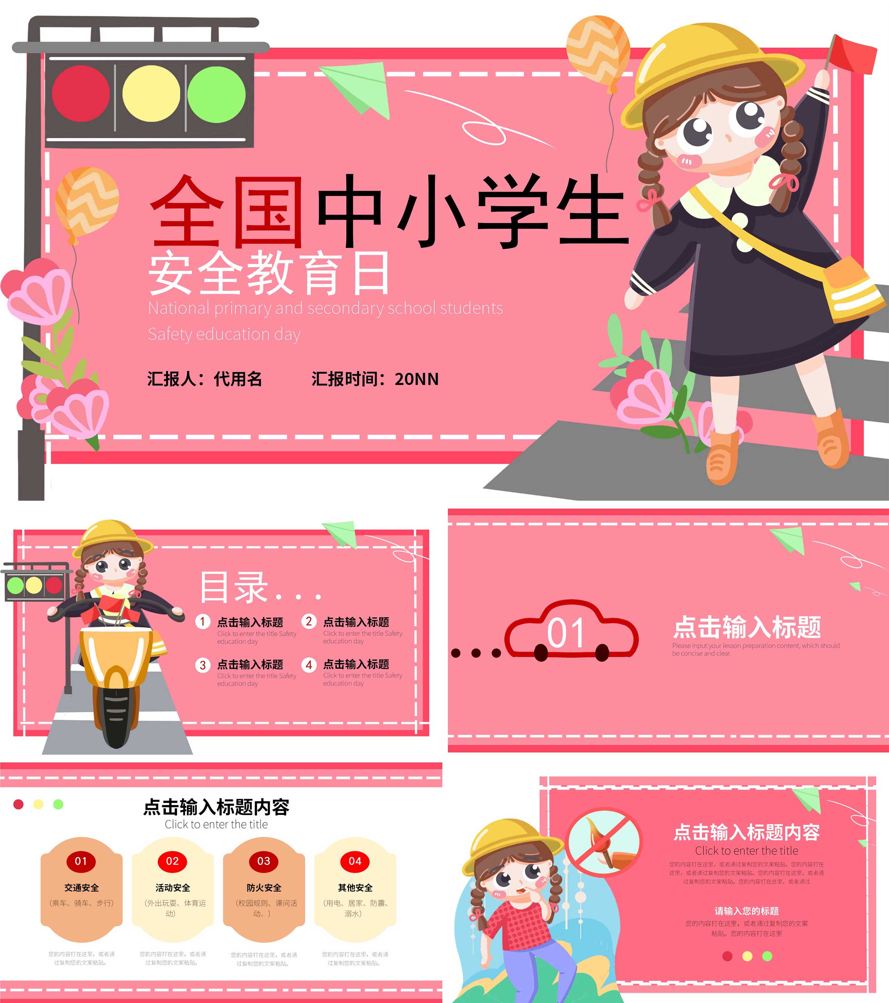 粉色卡通女孩全国中小学生安全教育日PPT模板