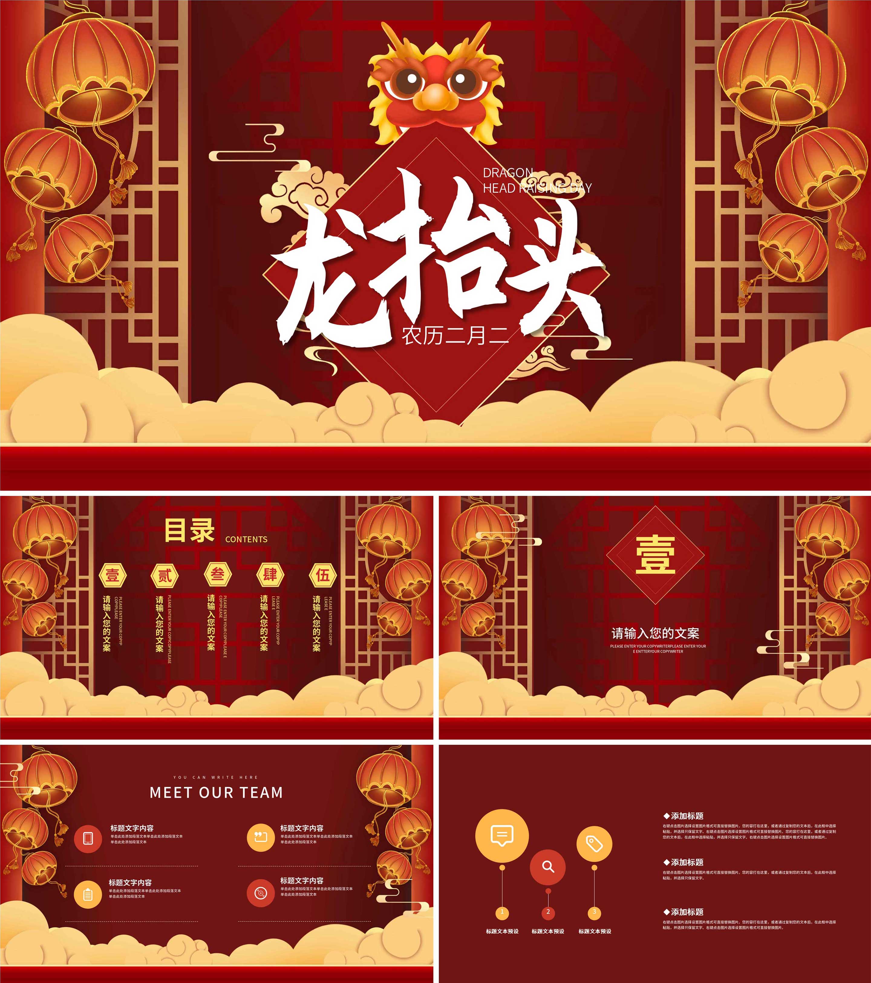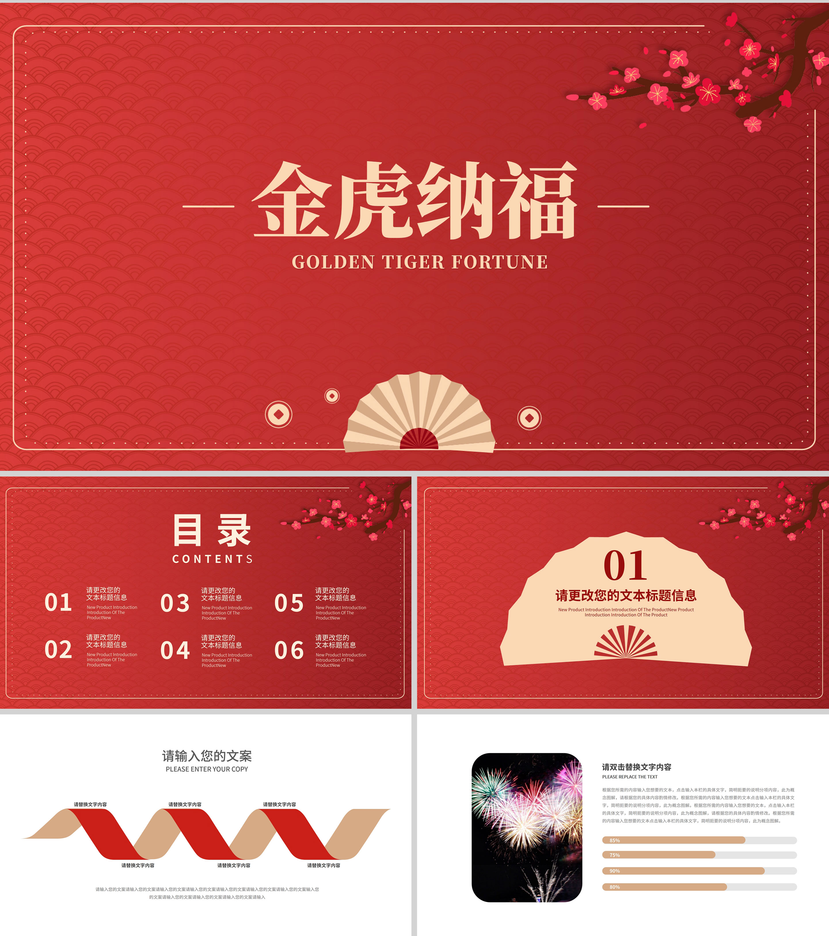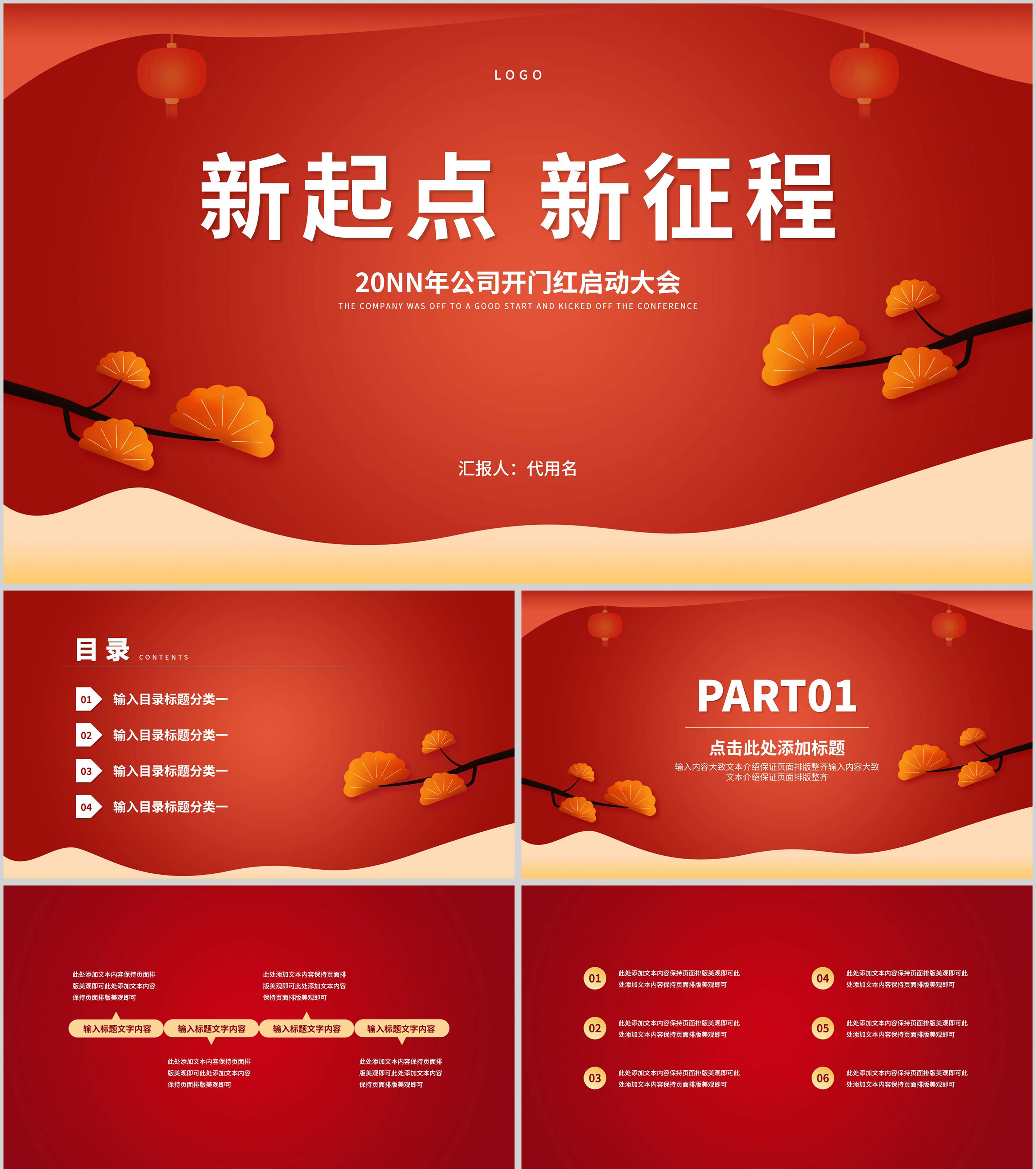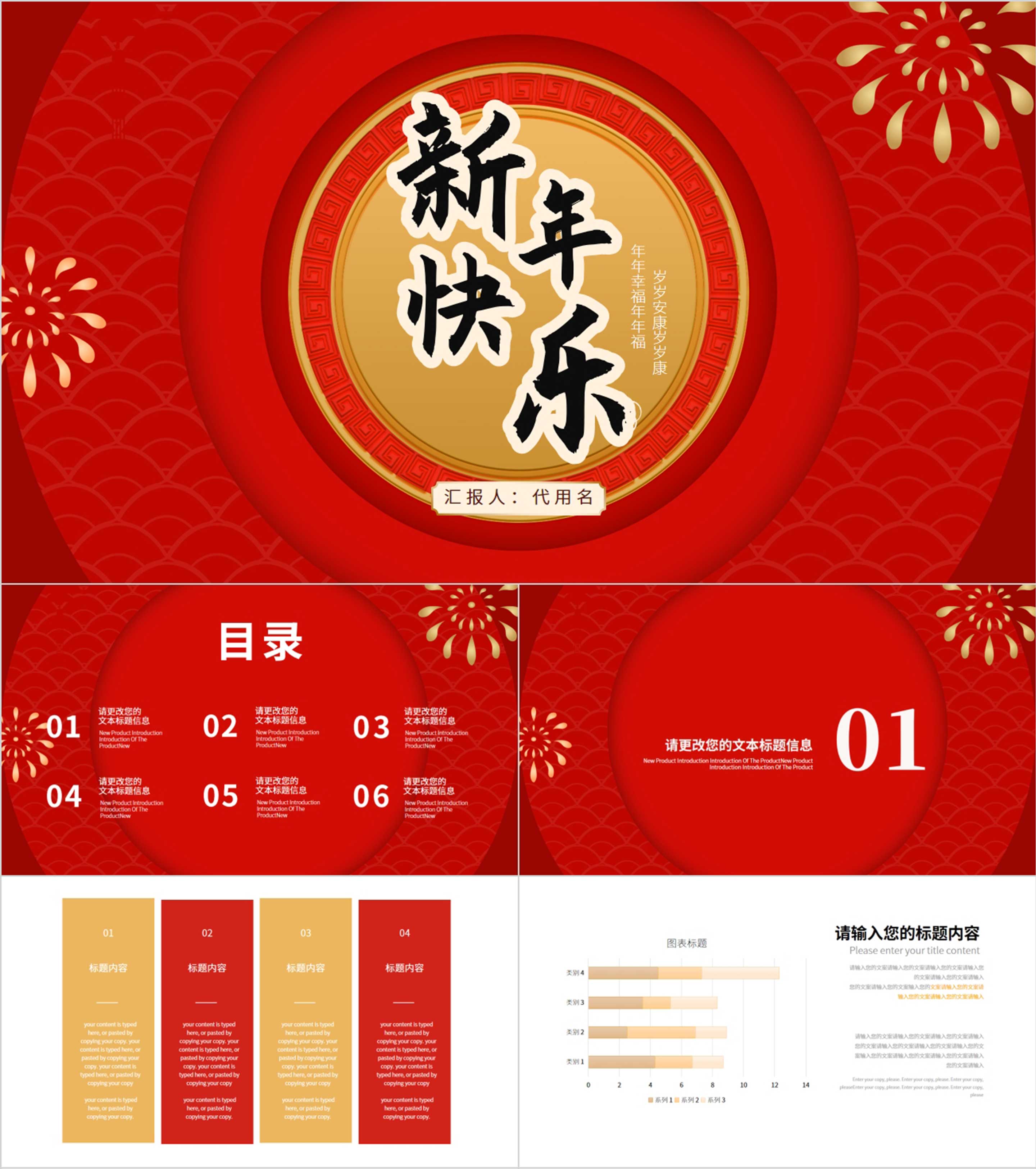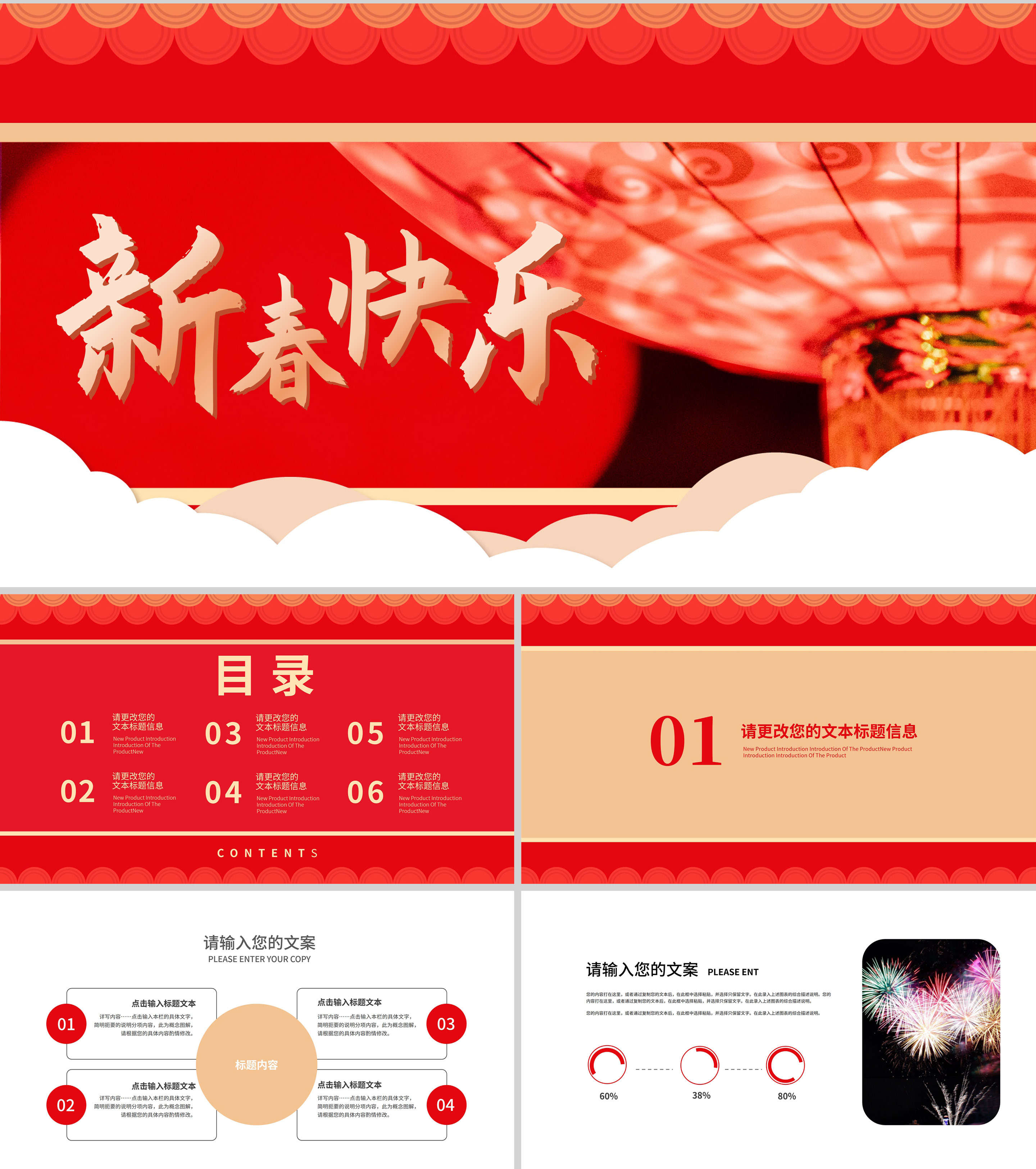 红色中国风灯笼喜庆新年快乐节日PPT模板