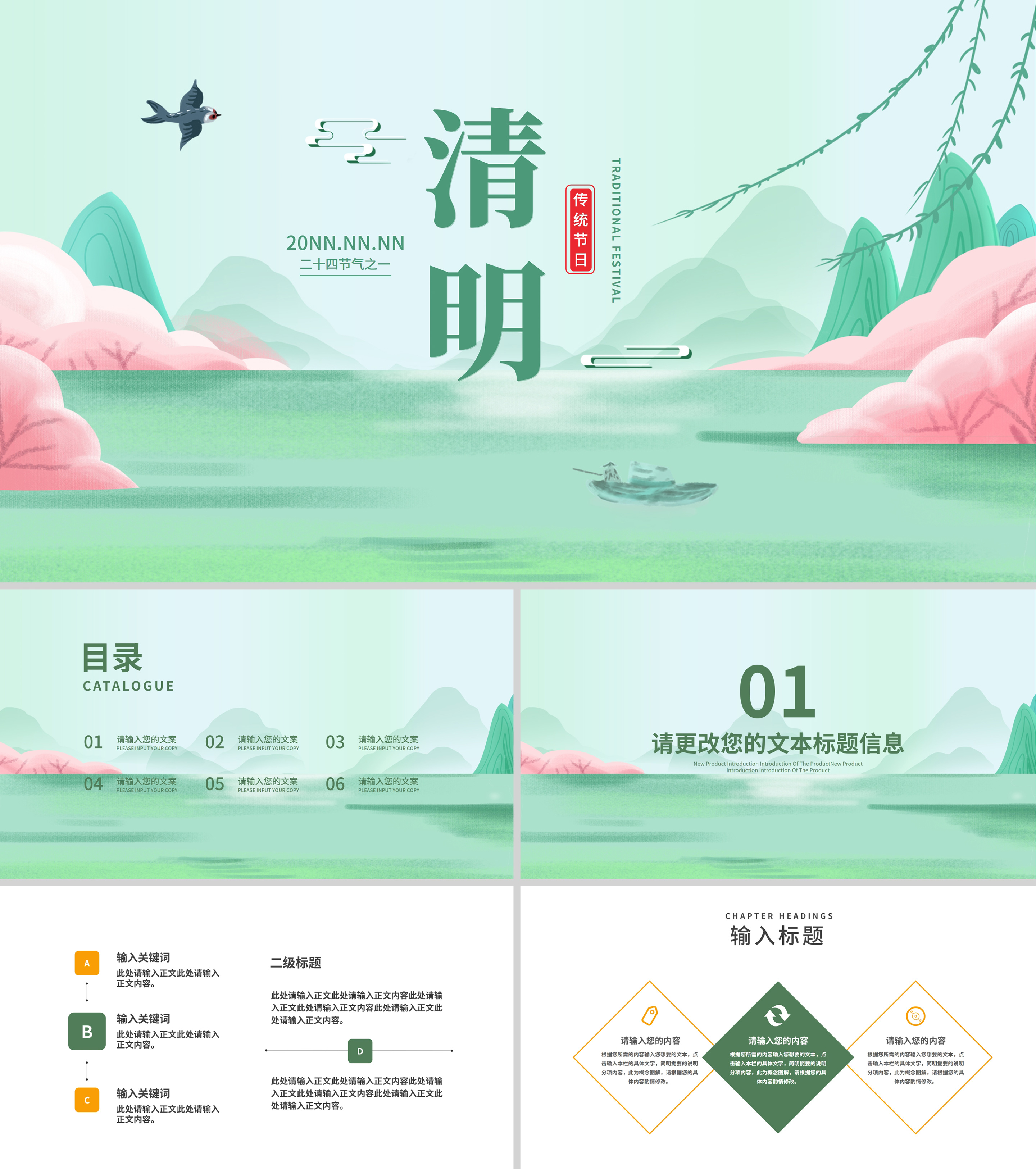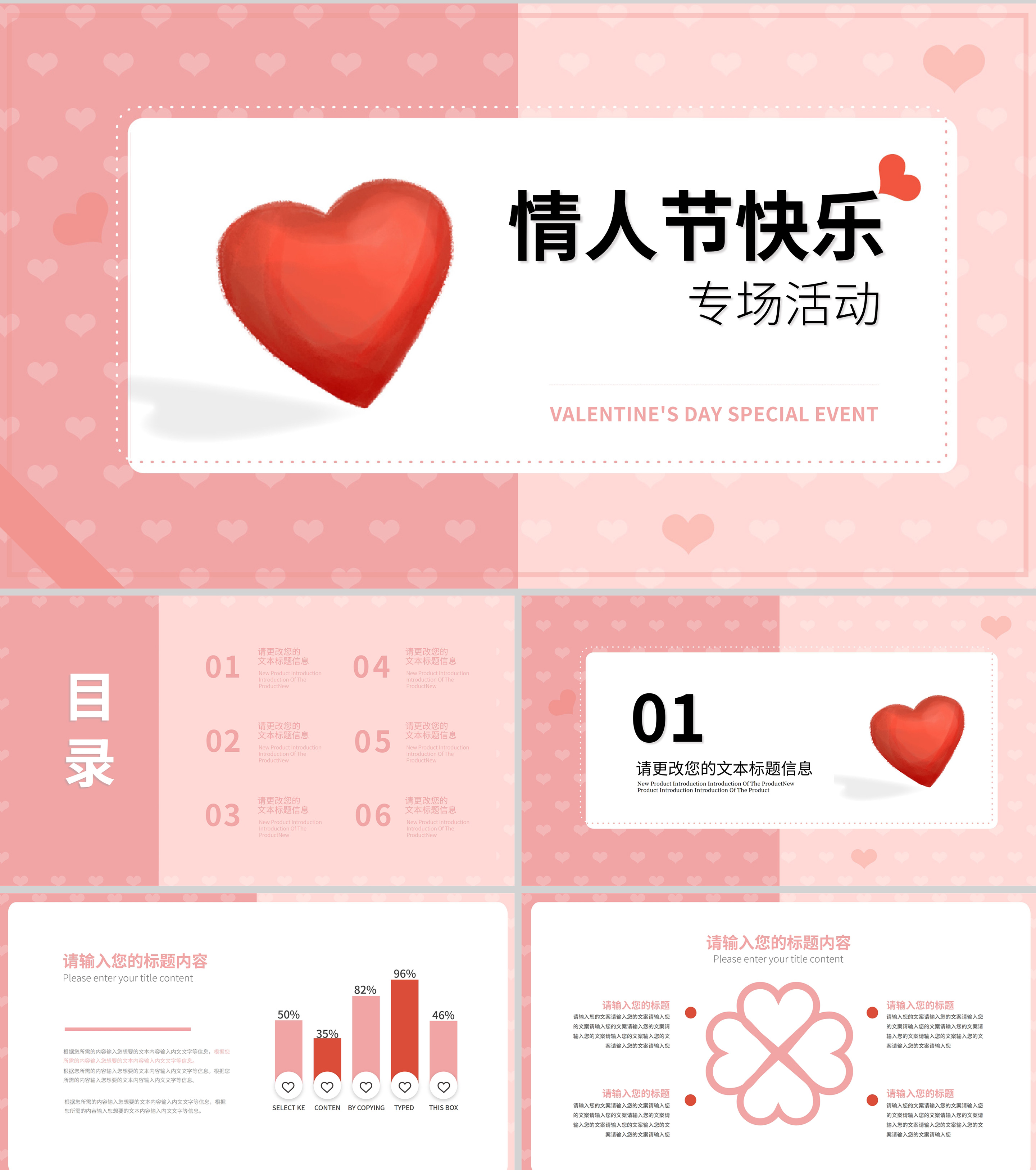 粉色水彩风爱心情人节快乐节日活动庆典PPT模板