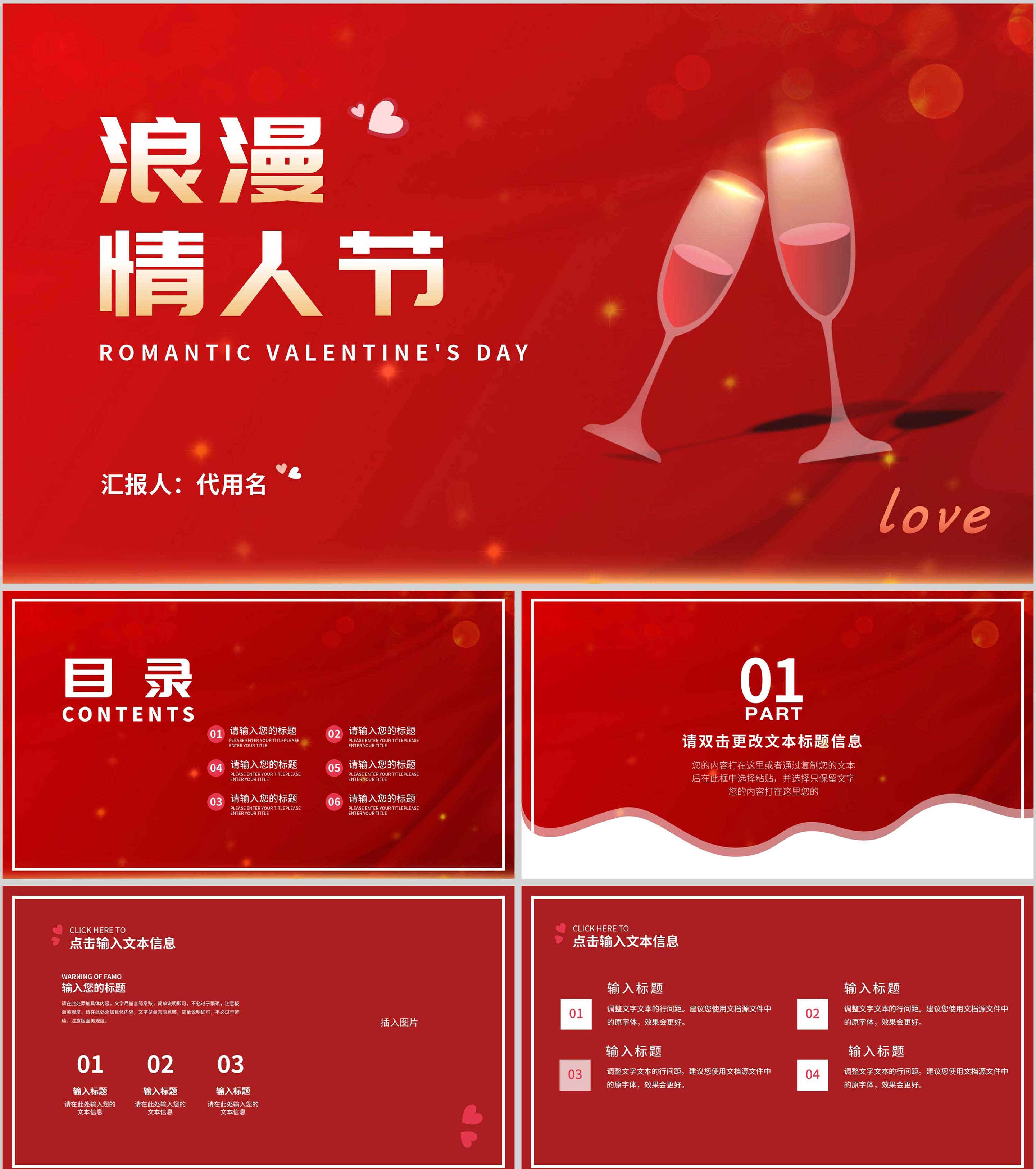 红色水彩风干杯庆祝浪漫情人节节日PPT模板