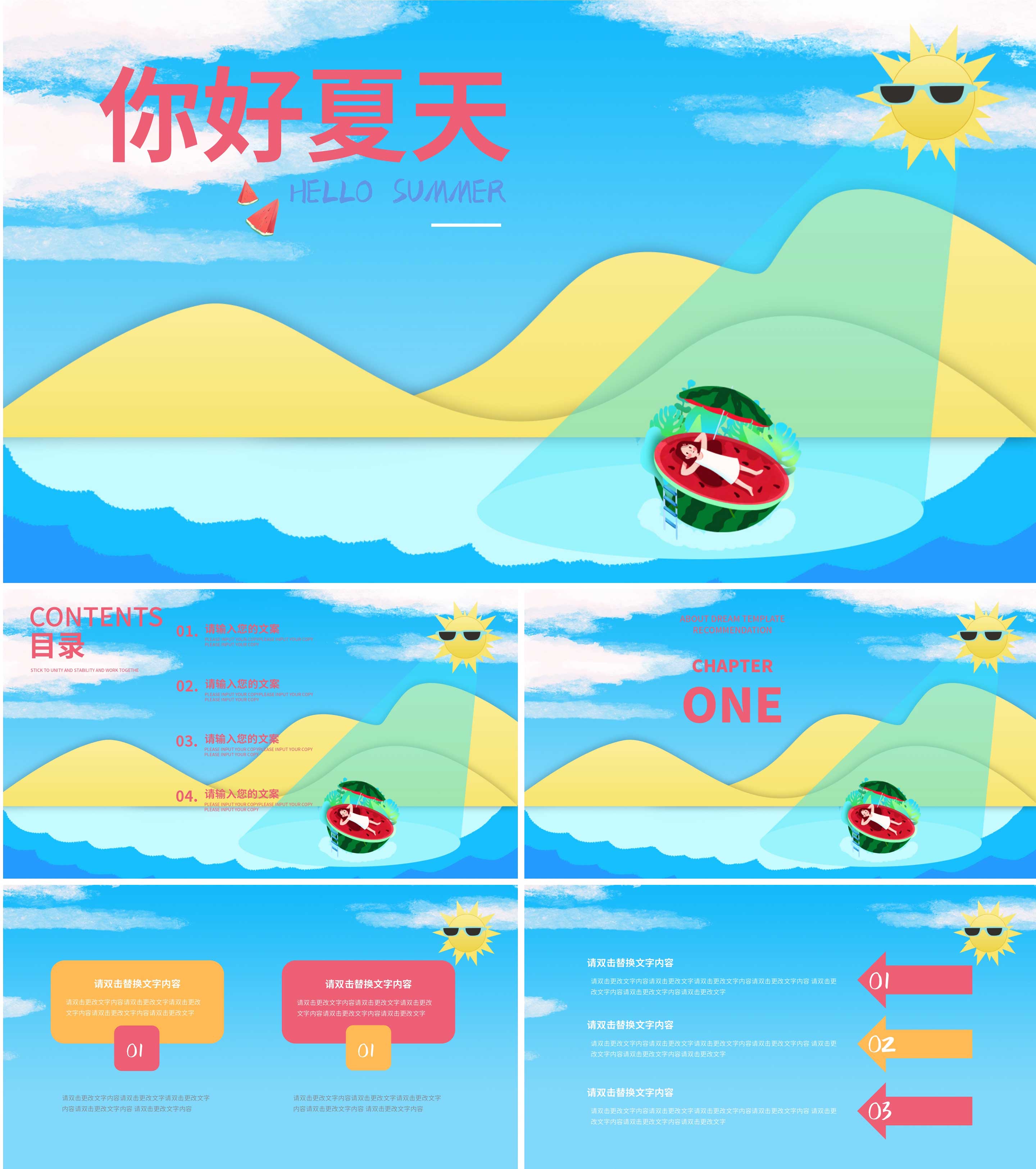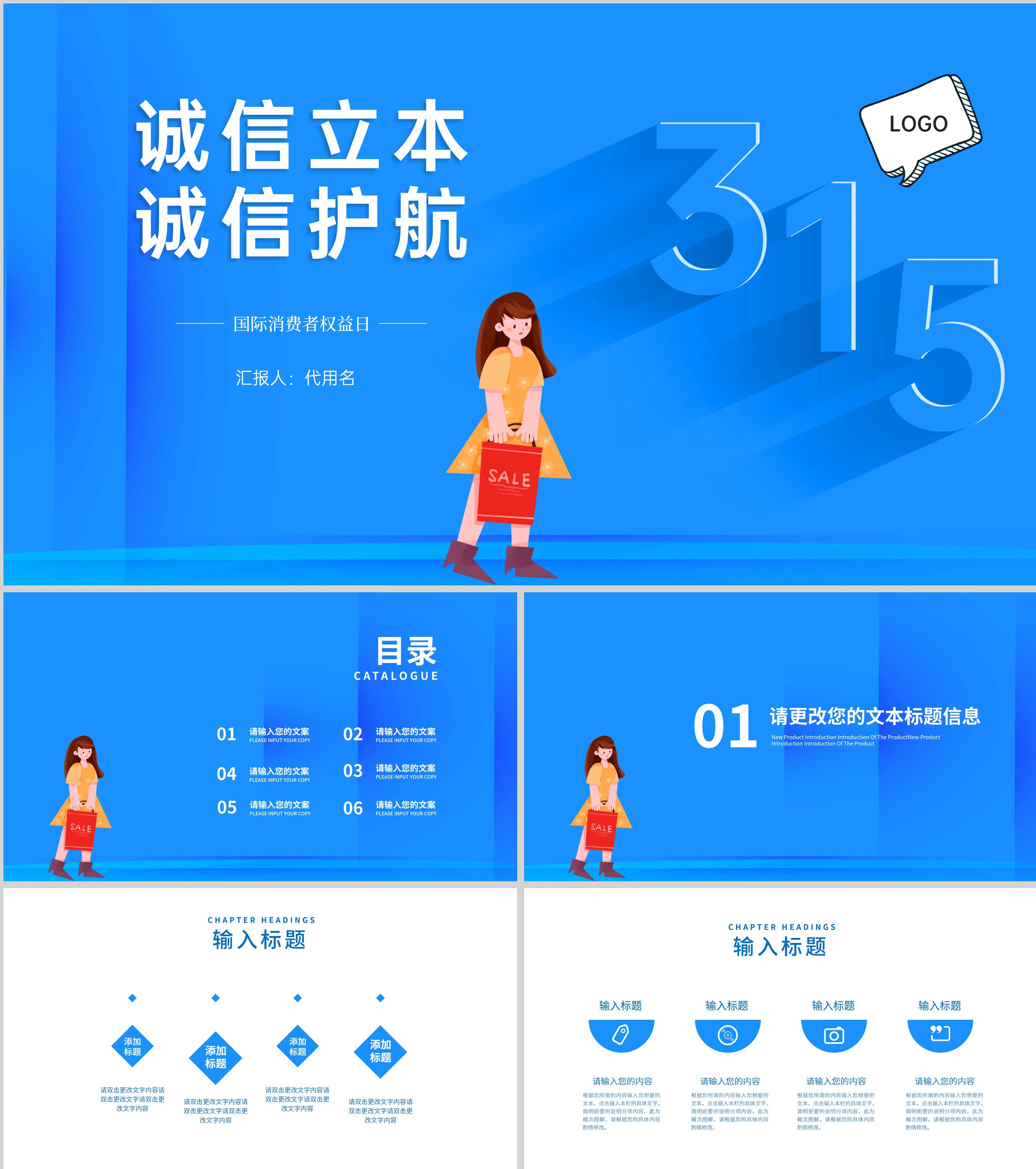 蓝色女孩购物国际消费者权益日汇报演讲PPT模板