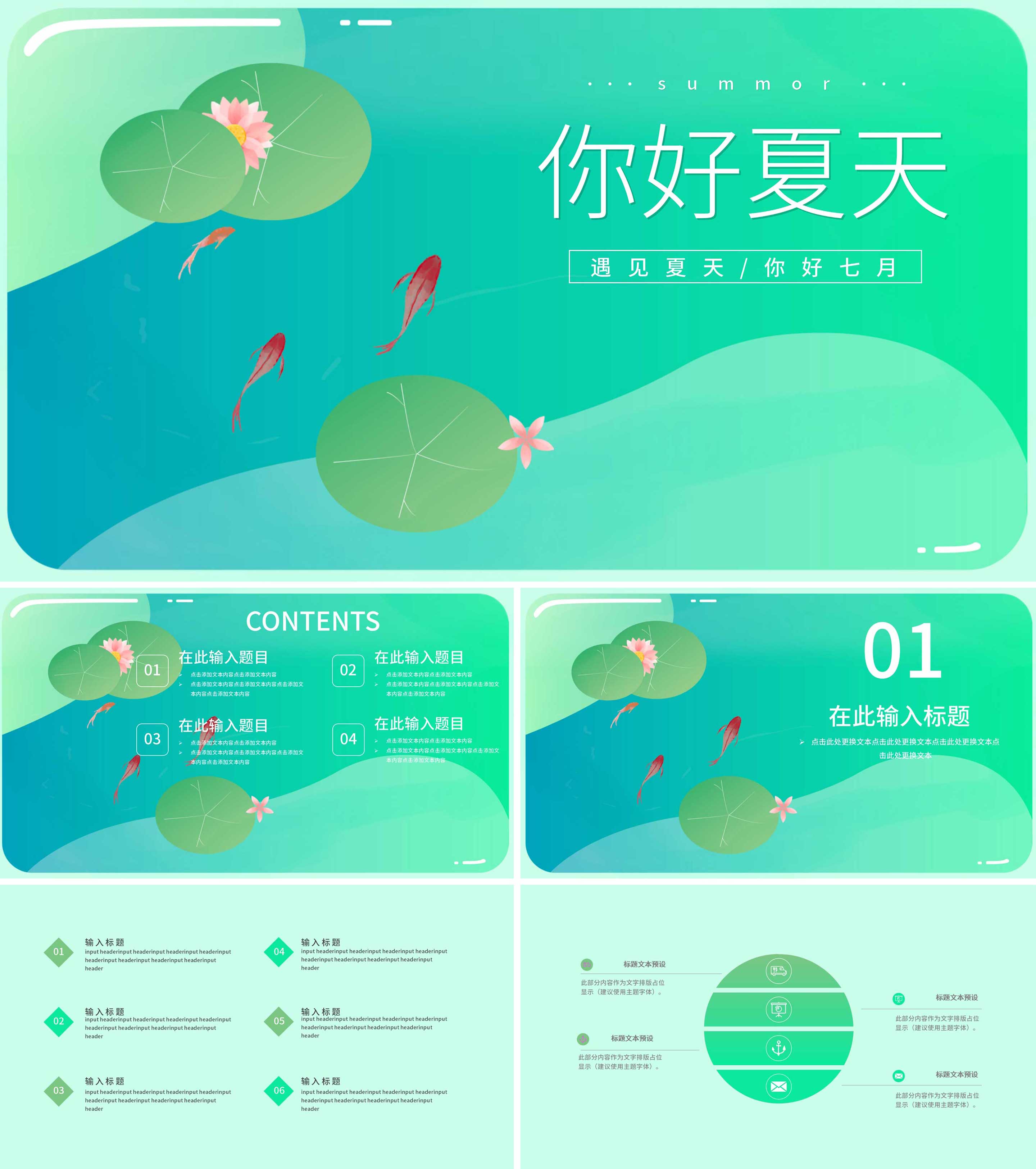 红色水彩风招财锦鲤新年春节节日PPT模板