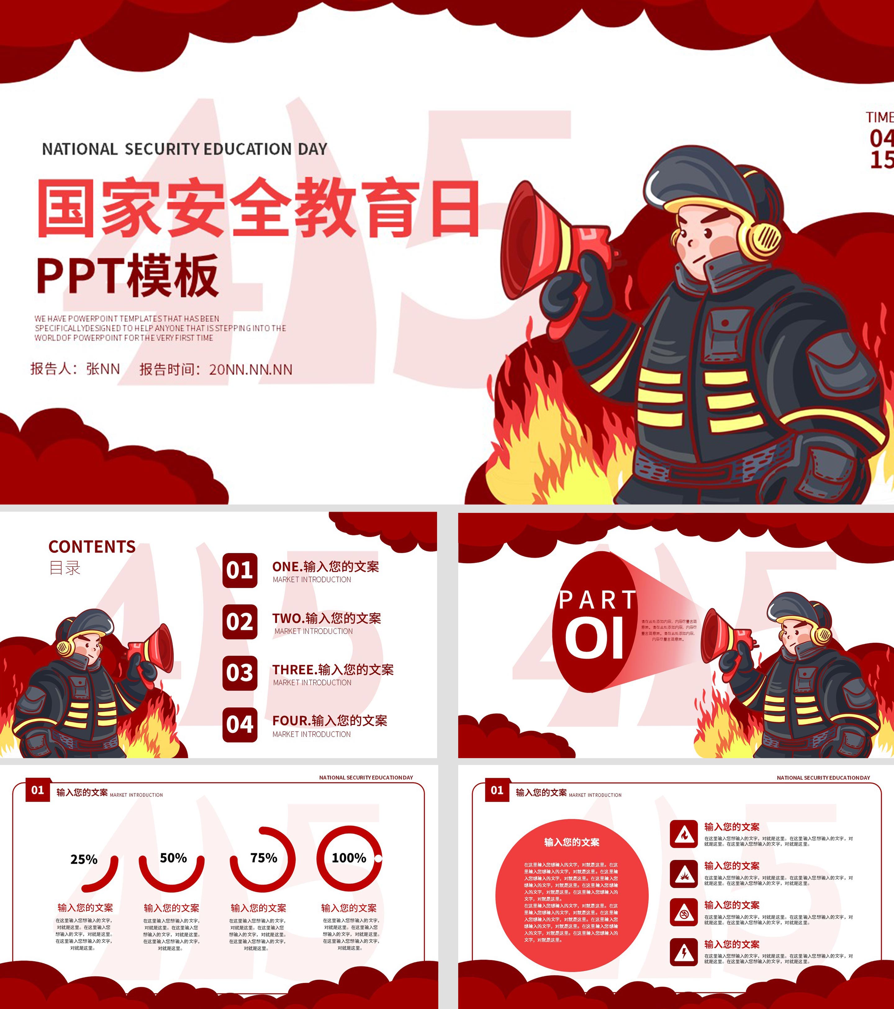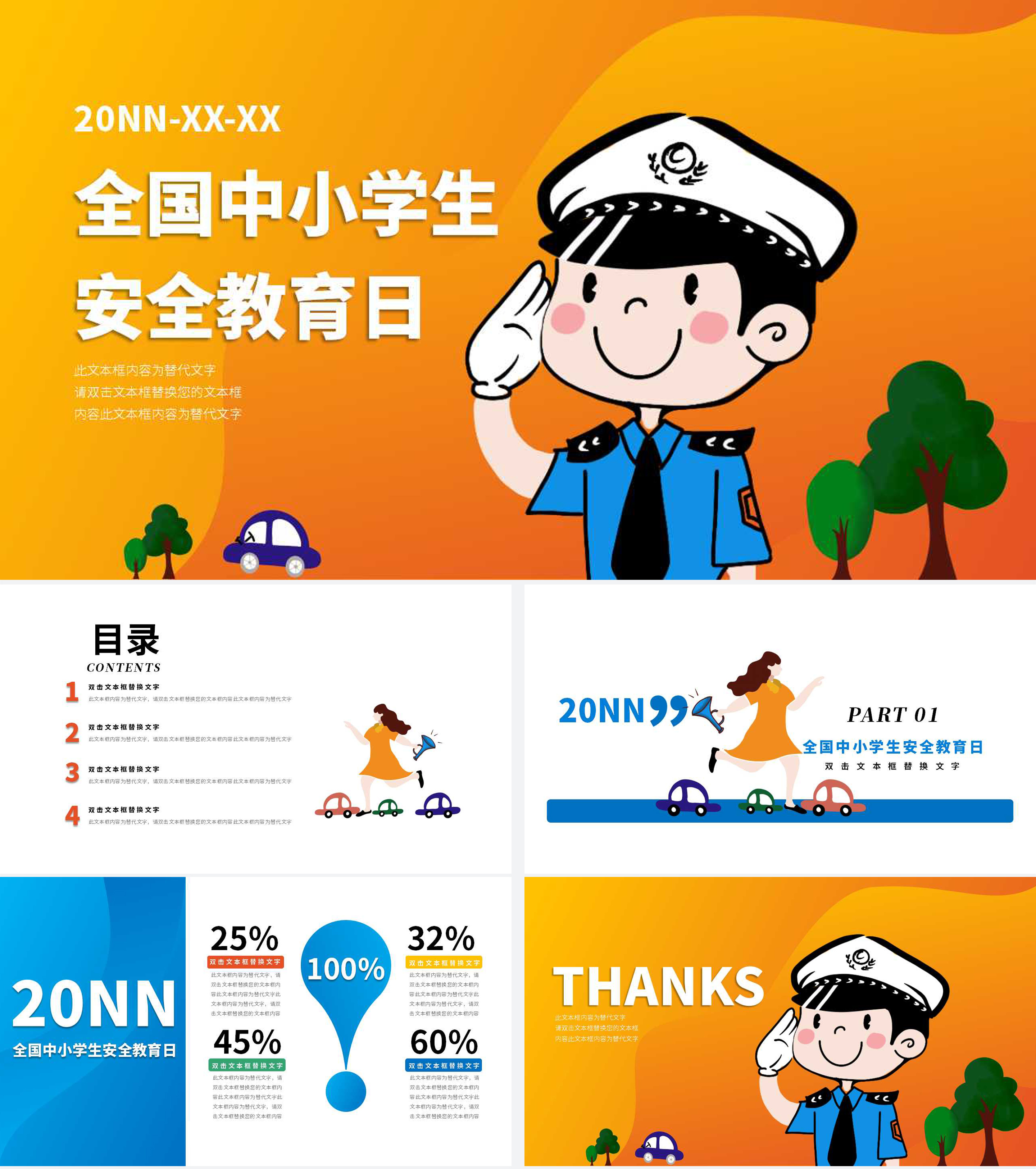 黄色插画风全国中小学生安全教育日警察PPT模板