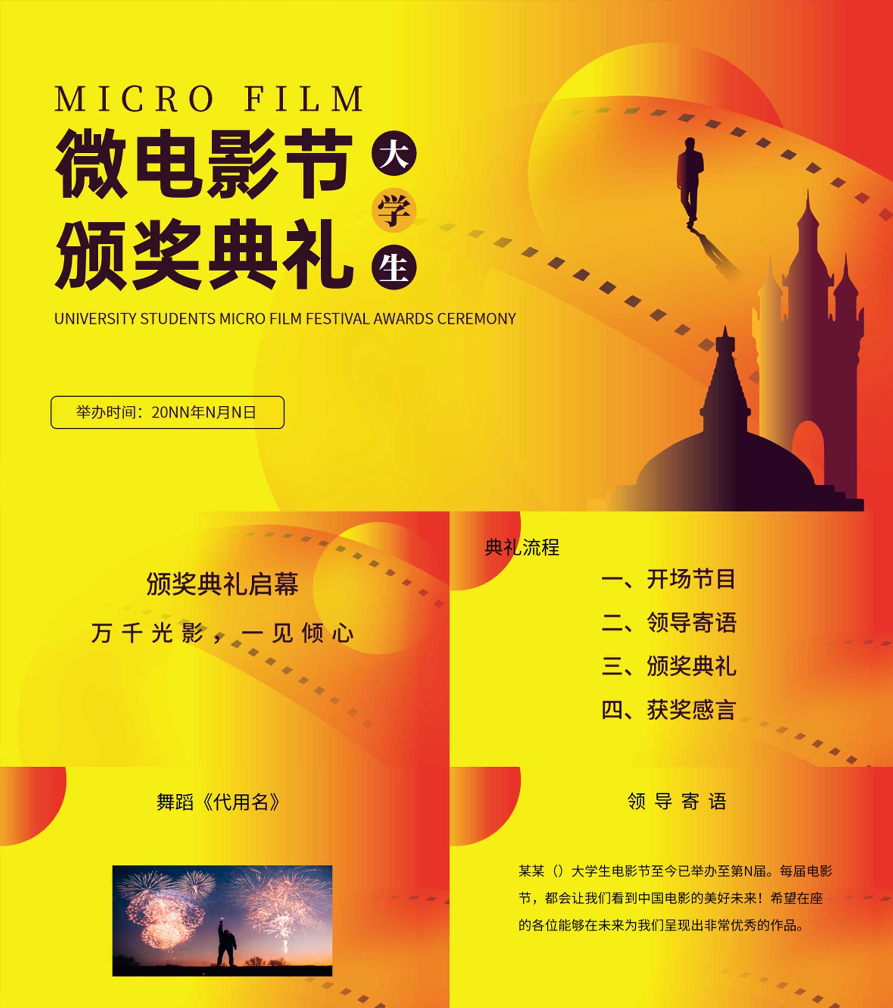 黄色简约风大学生电影节颁奖典礼主持PPT模板
