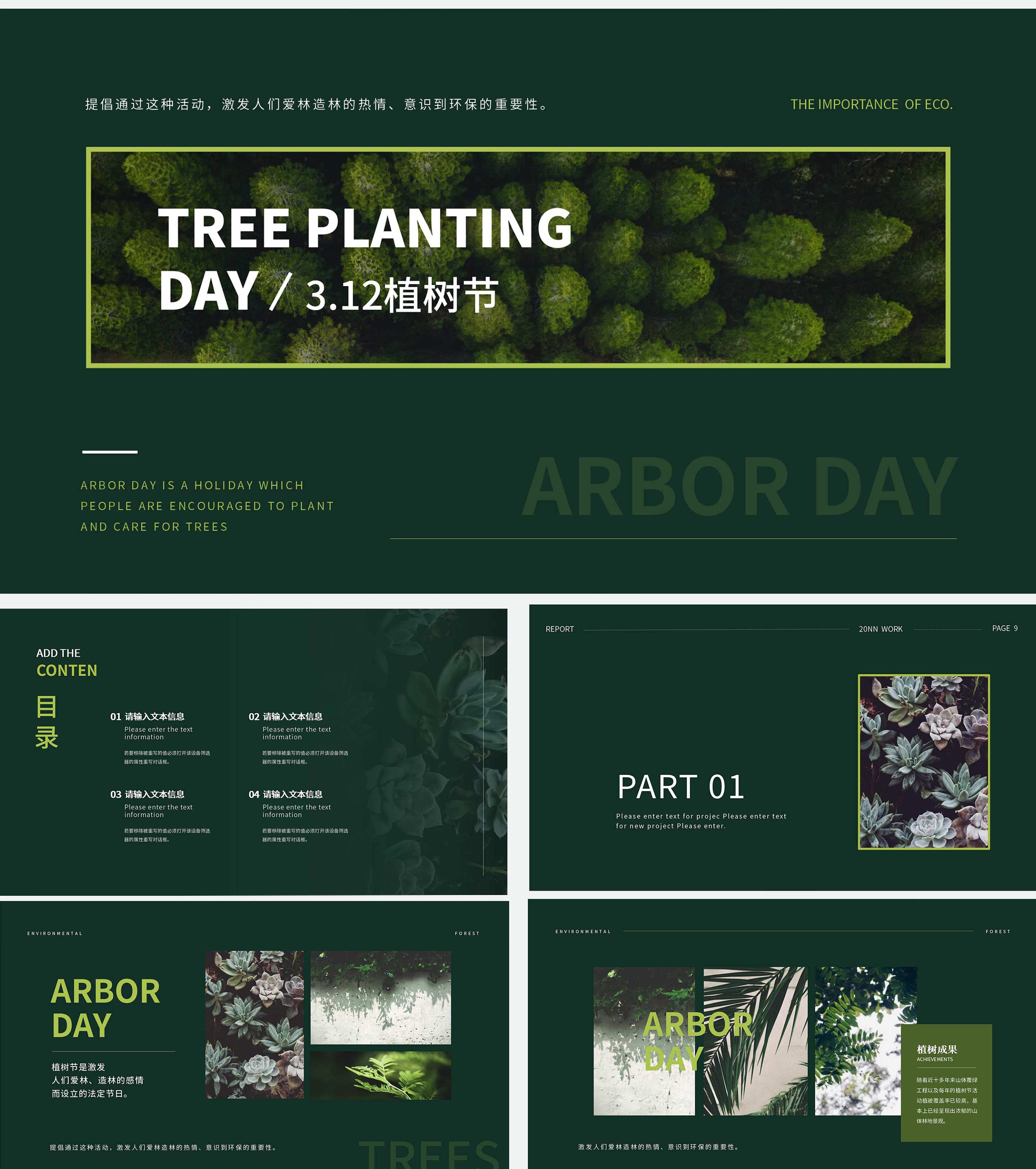 绿色简约时尚植树节主题PPT模板