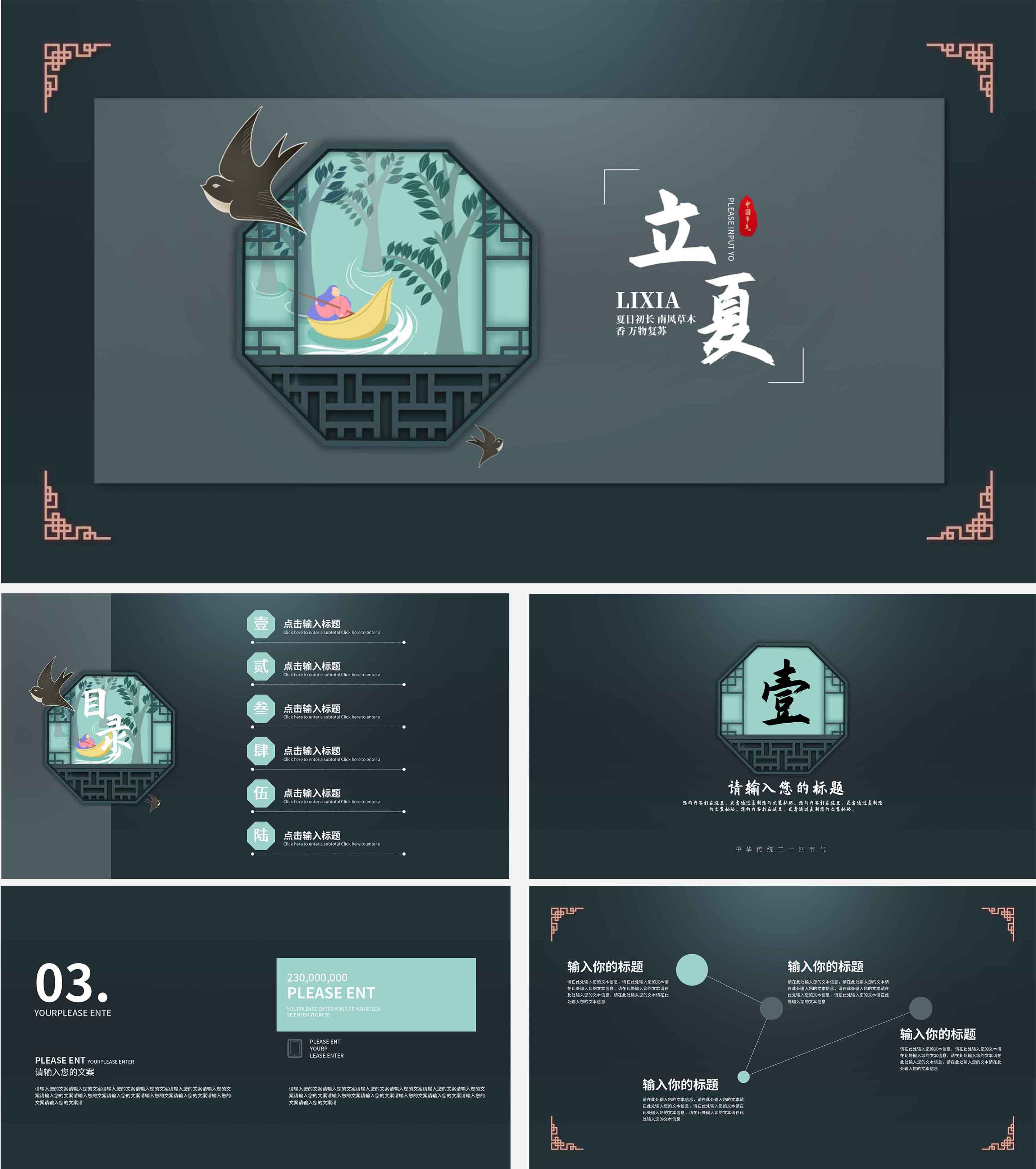 黑色中国风立夏节气PPT模板