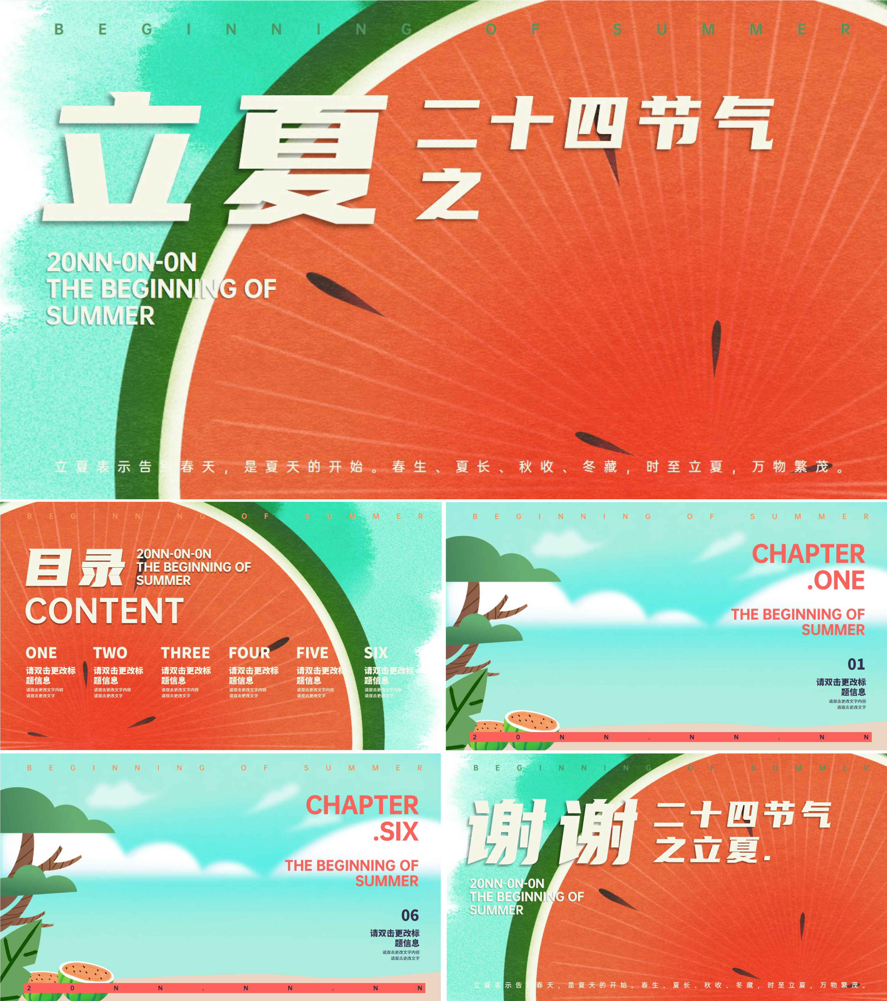 绿色小清新立夏主题PPT模板