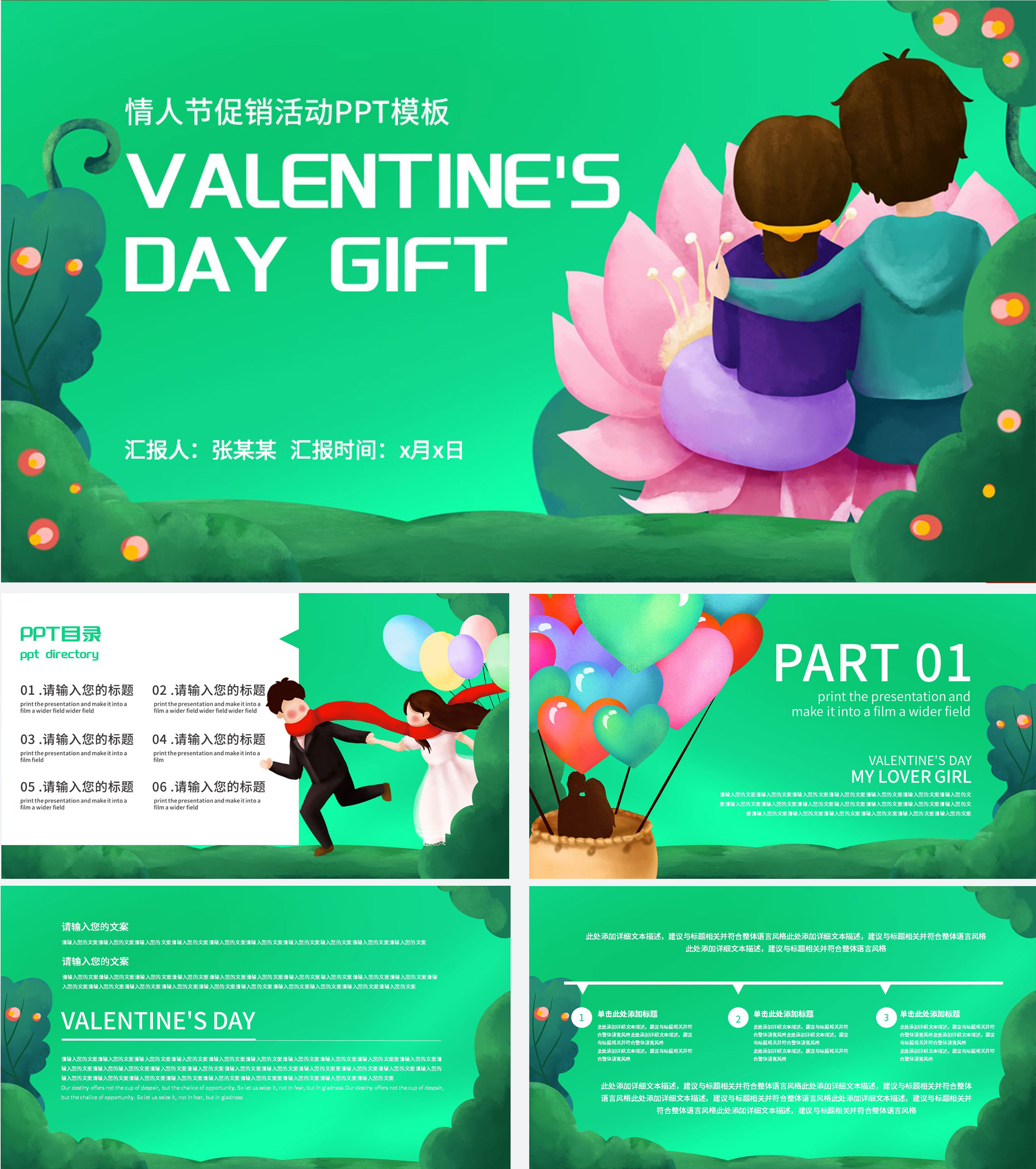 绿色浪漫情人节节日PPT模板