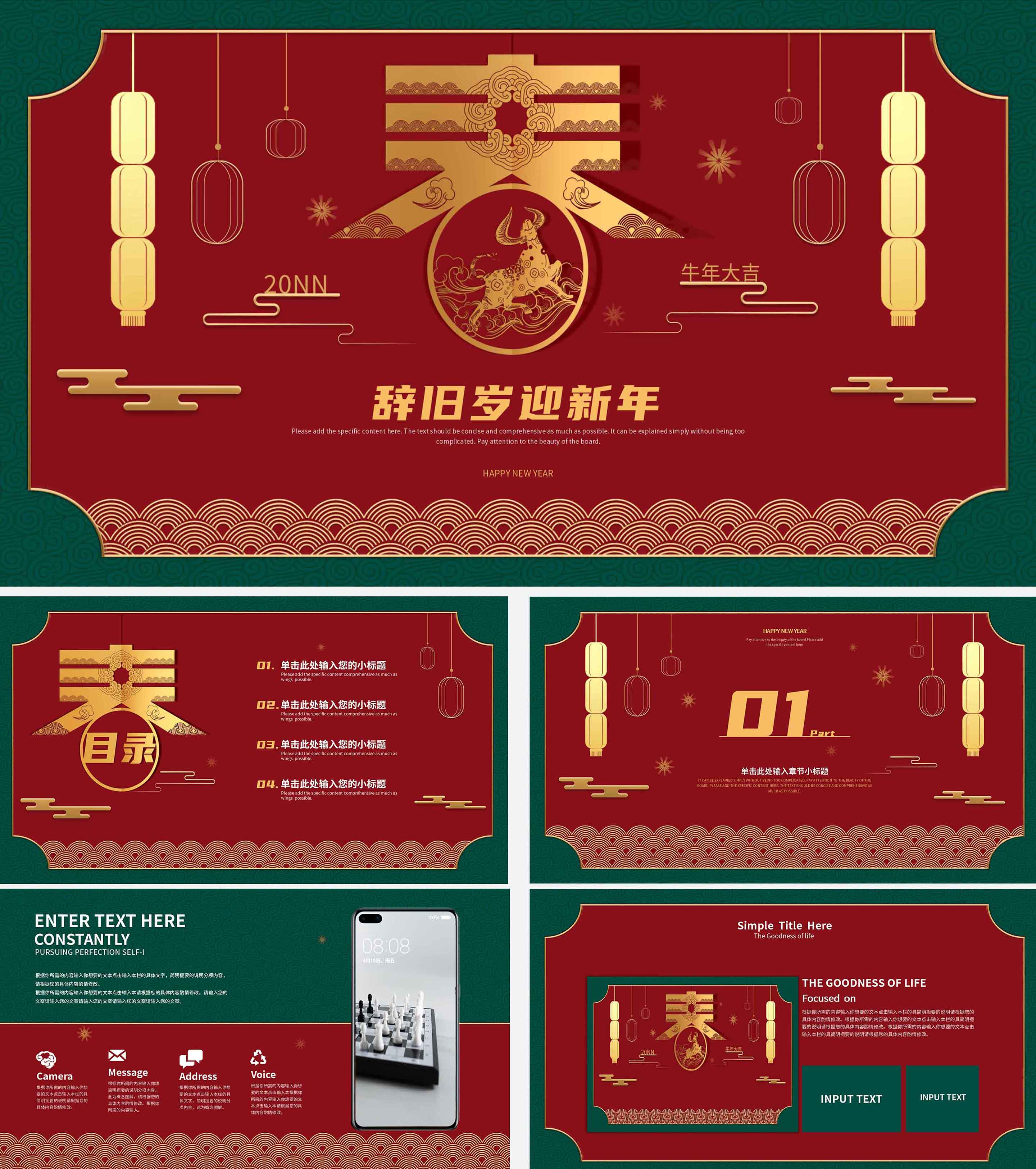 中式牛年春节PPT模板