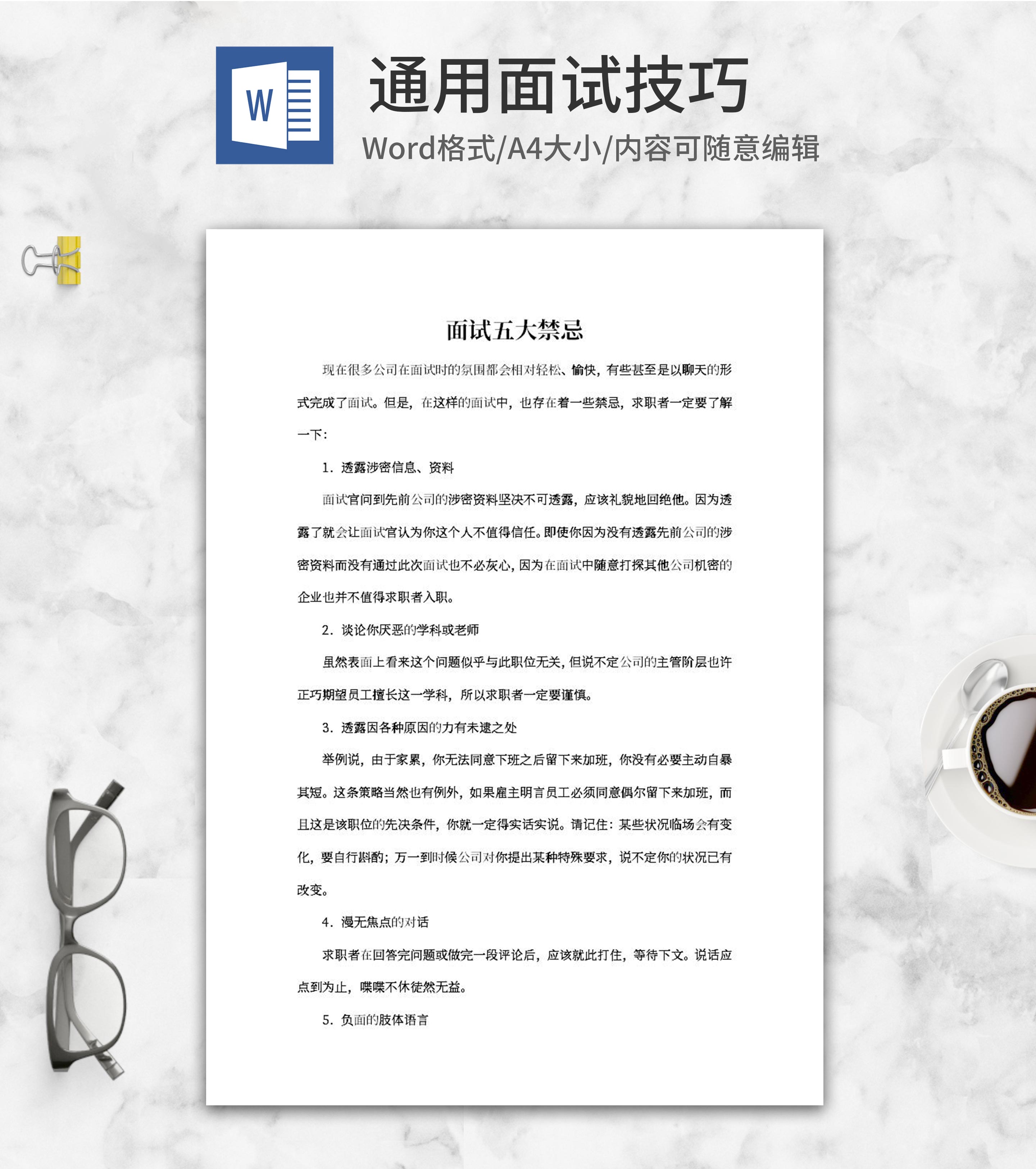 面试五大禁忌word模板