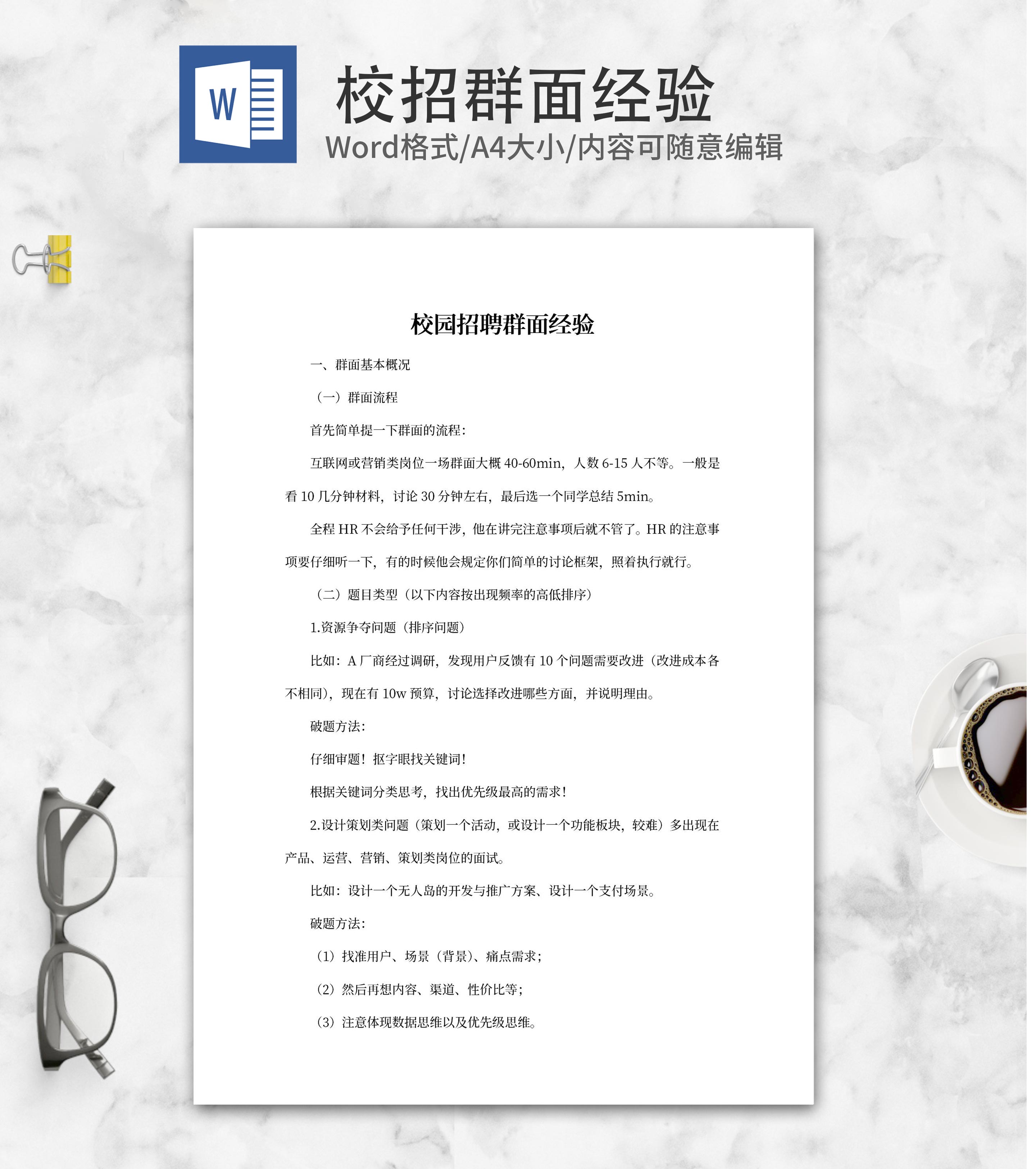 校园招聘群面经验参考word模板