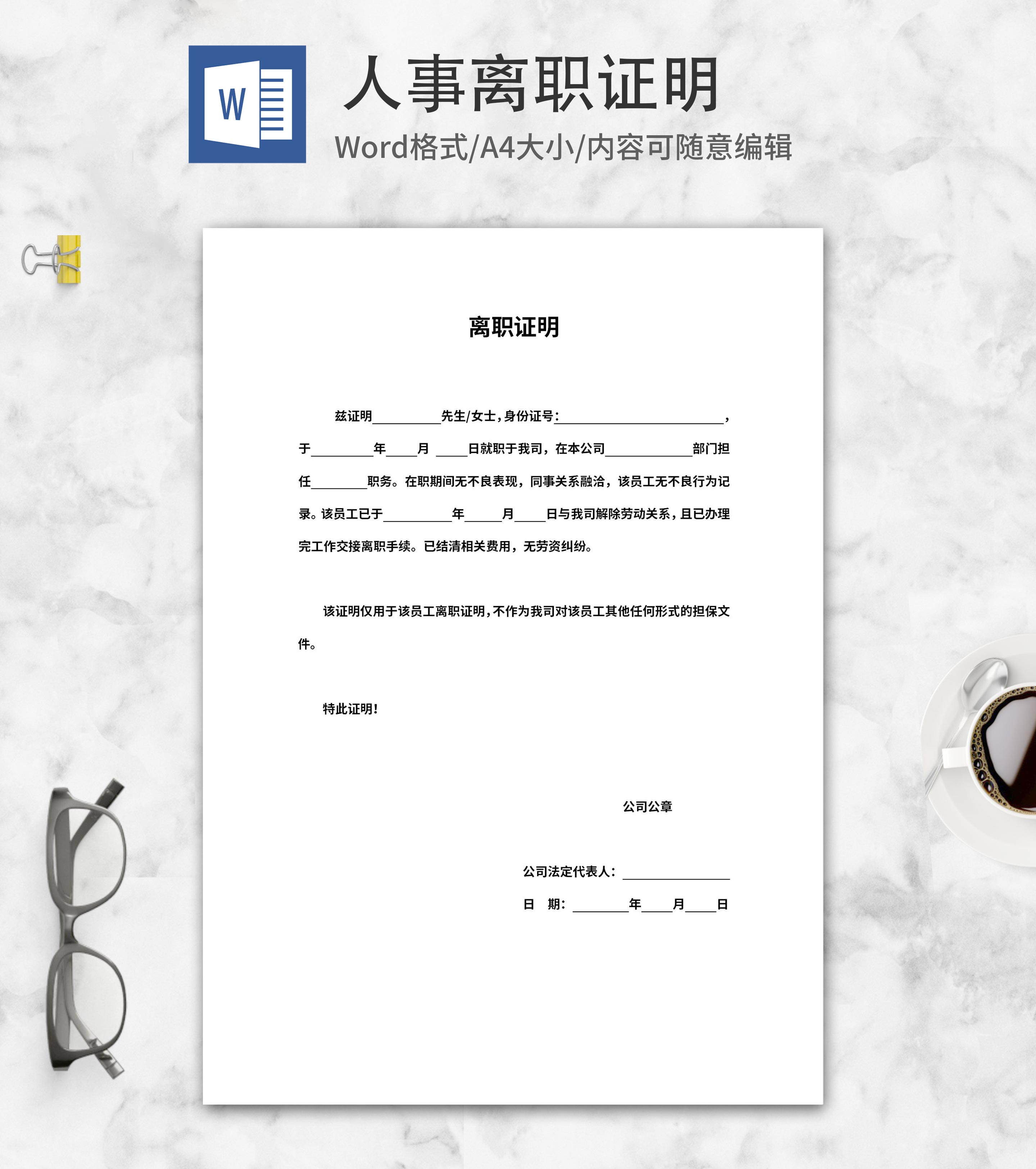 人事员工离职公司证明word模板