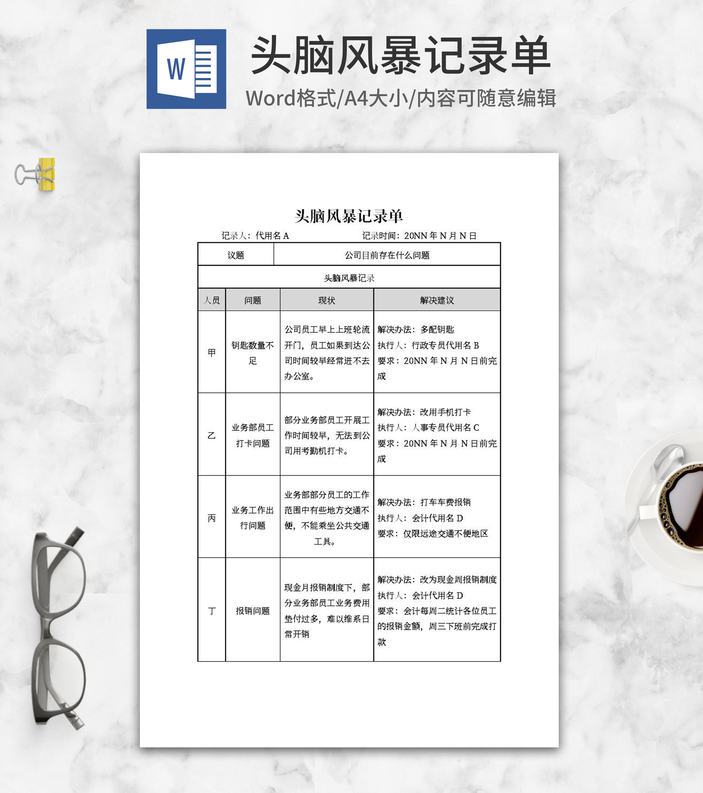 公司会议头脑风暴记录单word模板