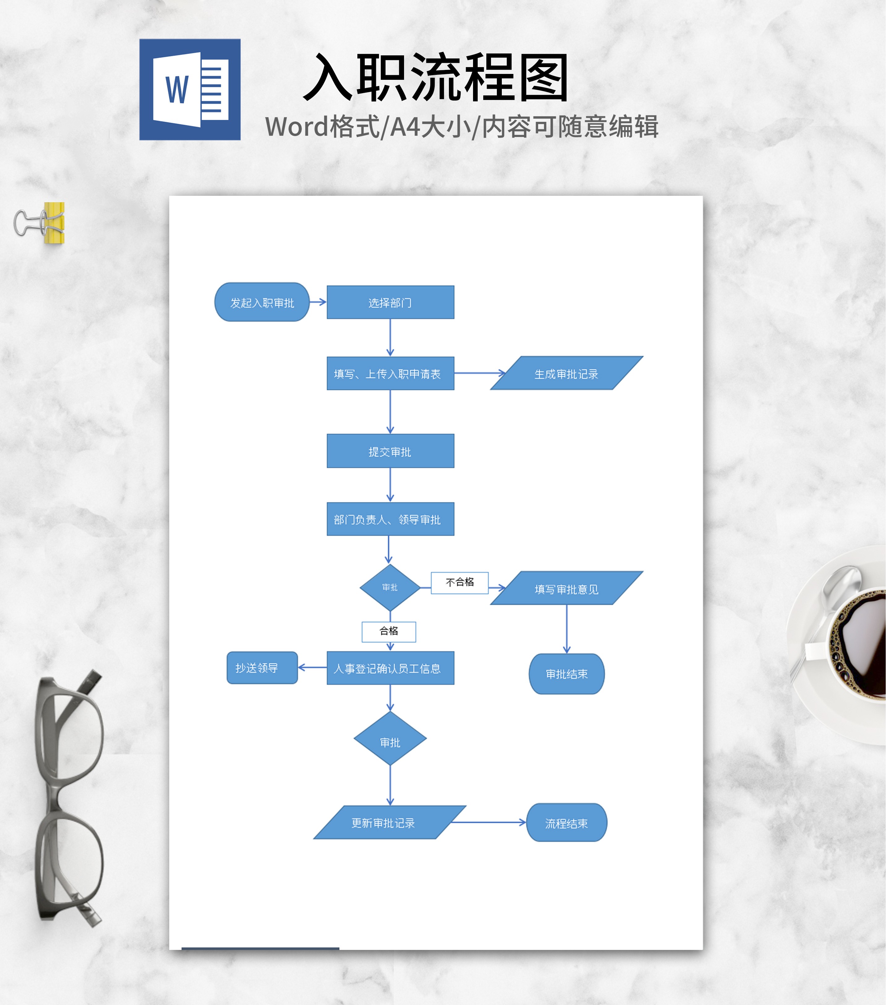 简约蓝色入职流程图word模板