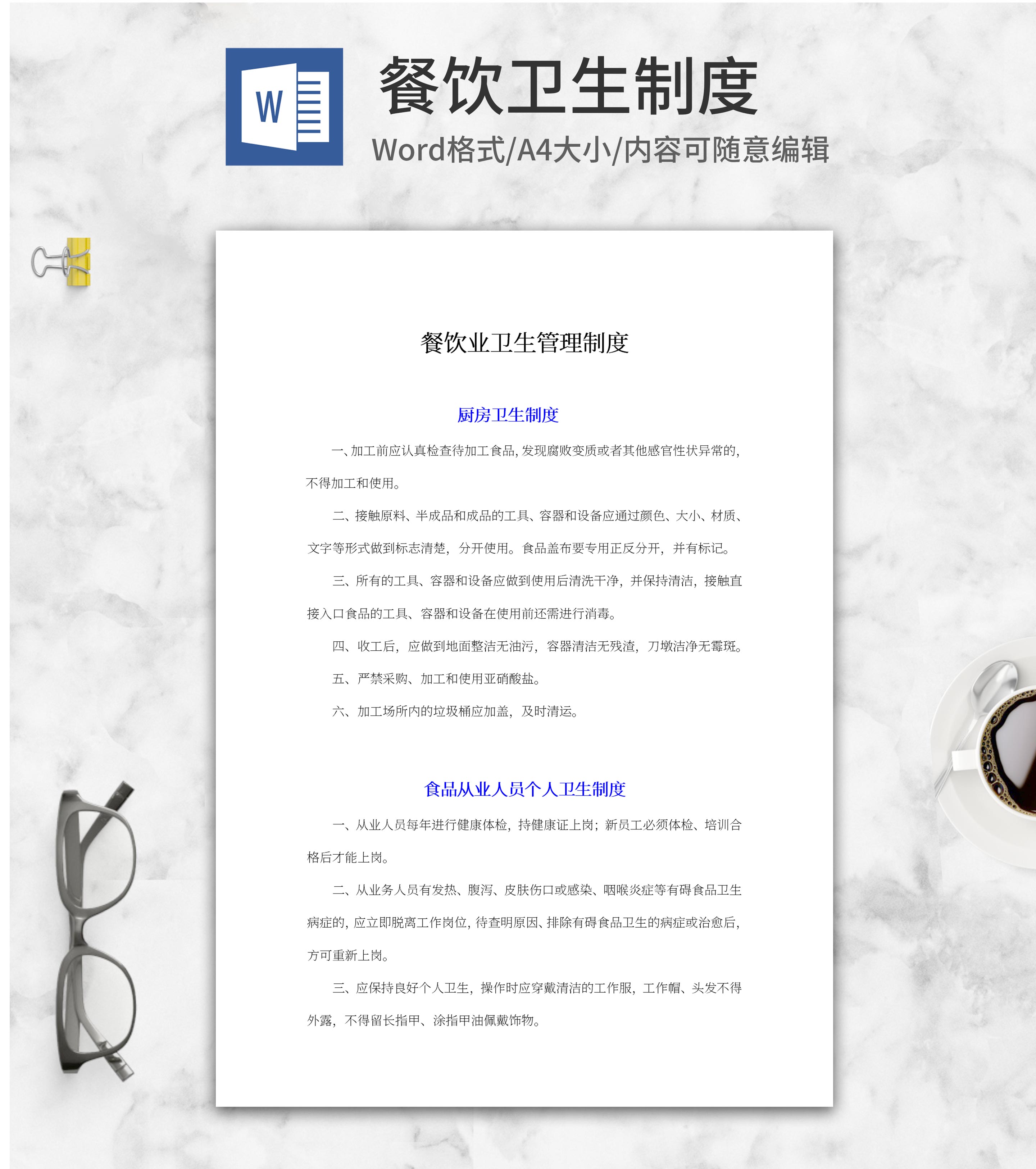 餐饮业卫生管理制度word模板