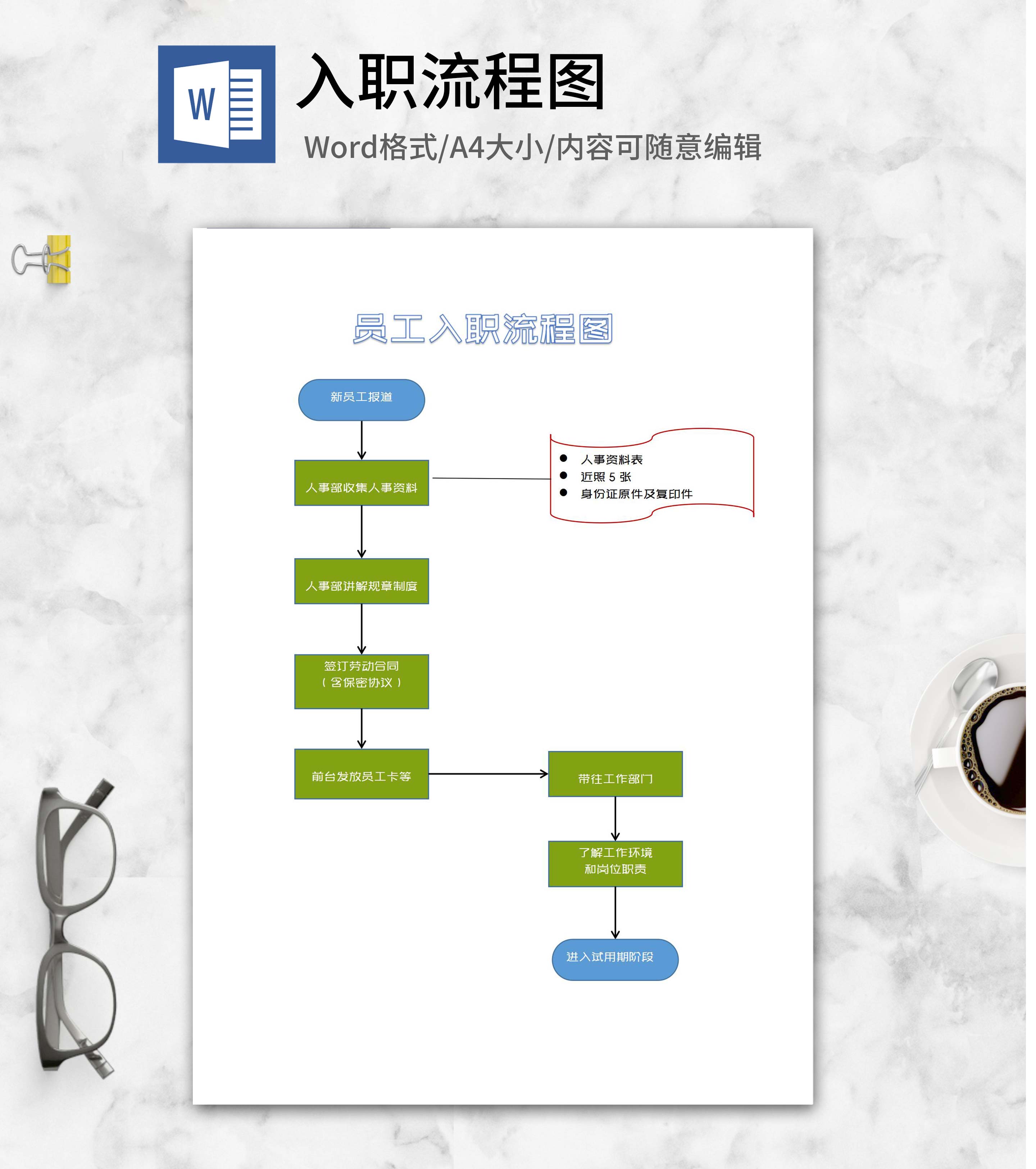 单位新员工入职流程图word模板