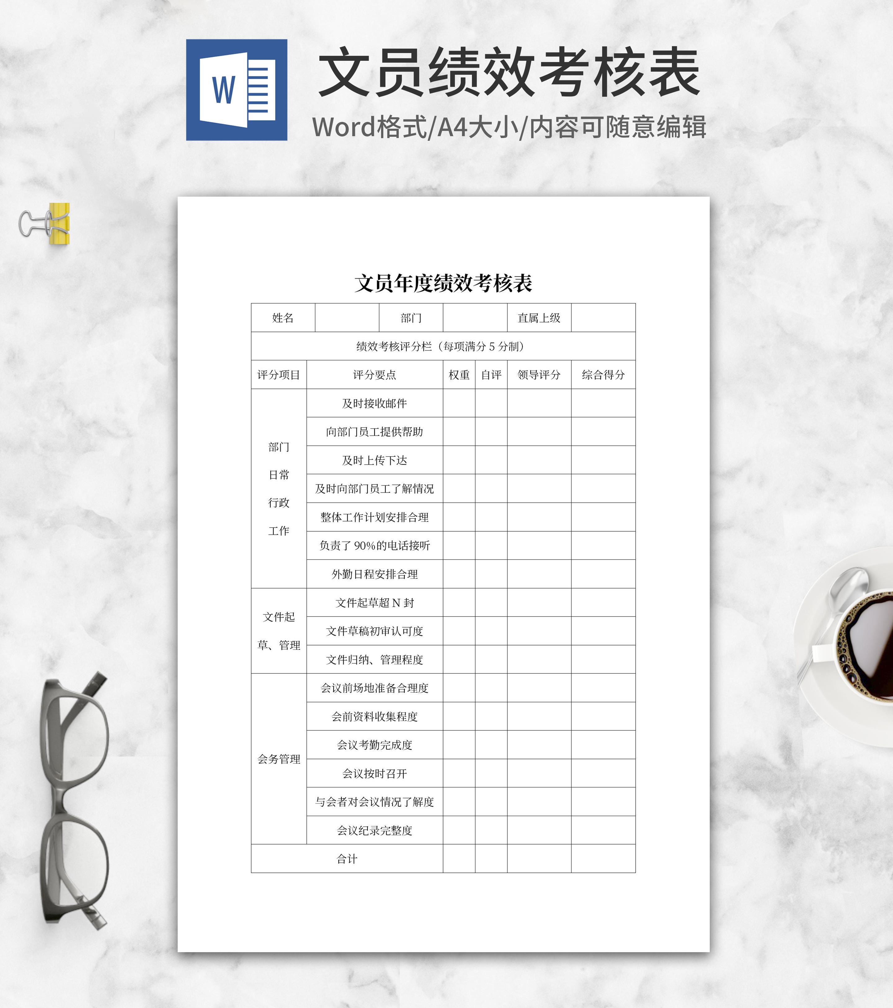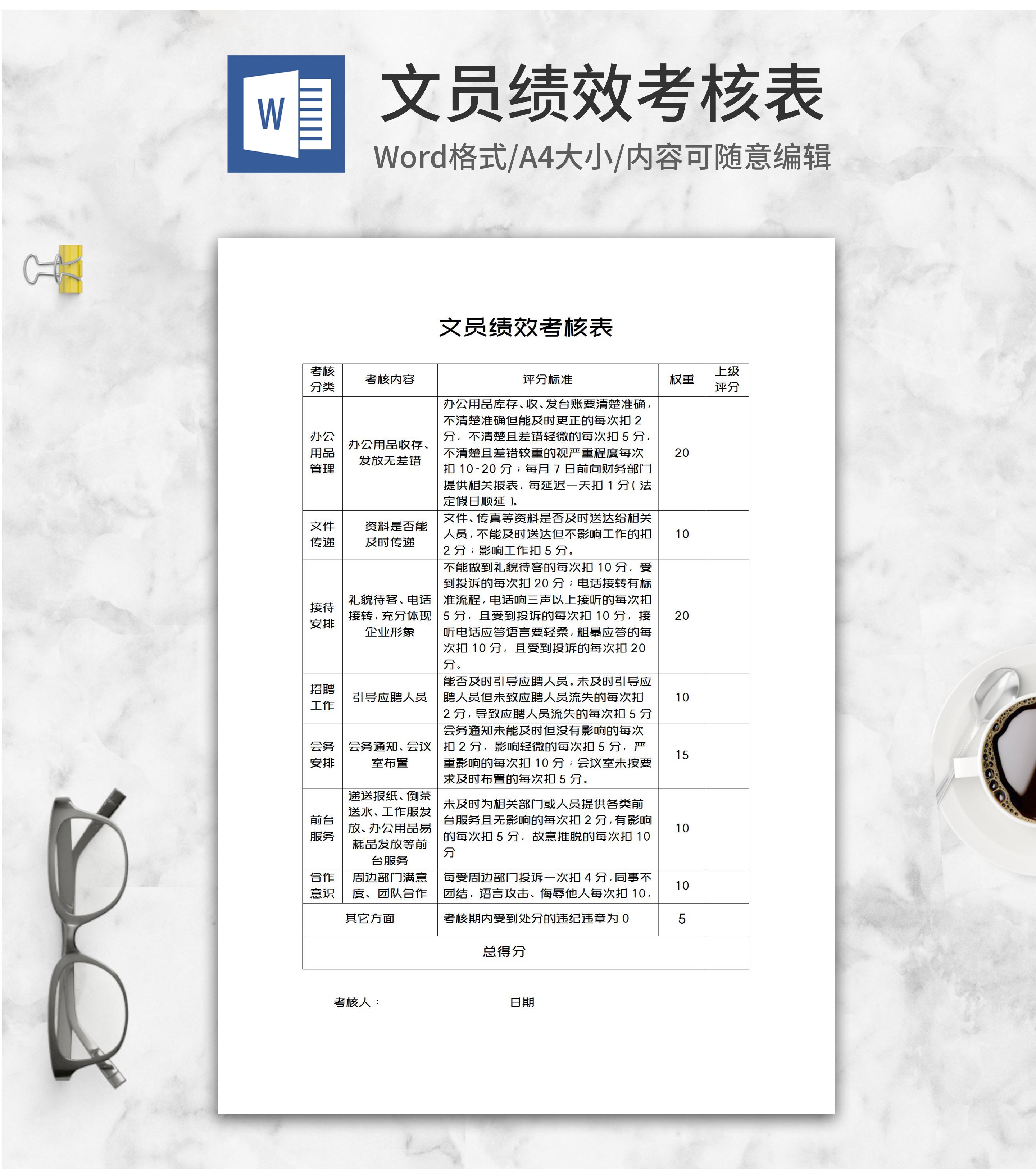 文员绩效考核表word模板